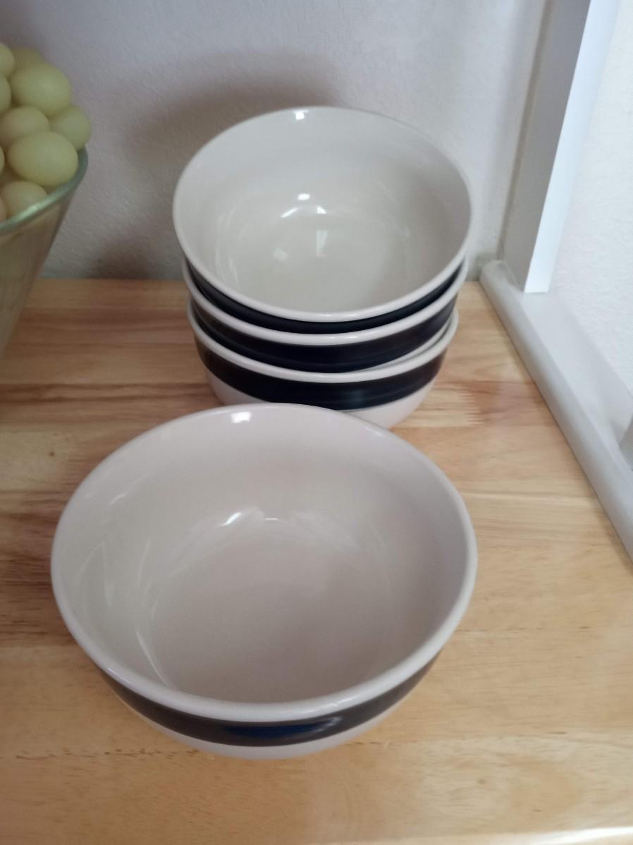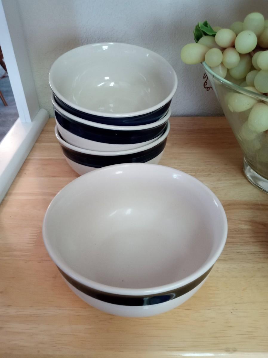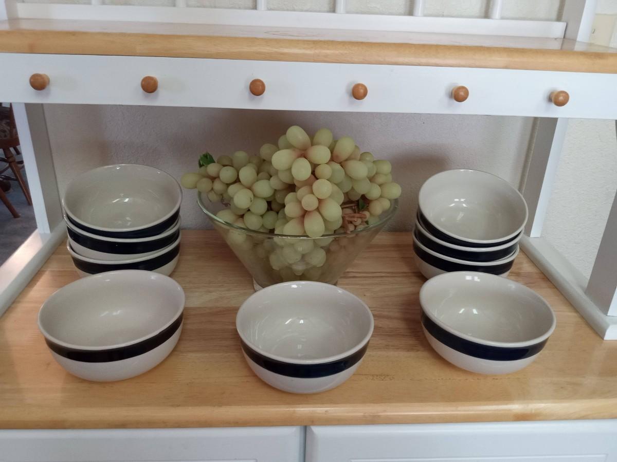 GLASS BOWL WITH RUBBER GRAPES AND PERFECT SIZE CEREAL BOWLS