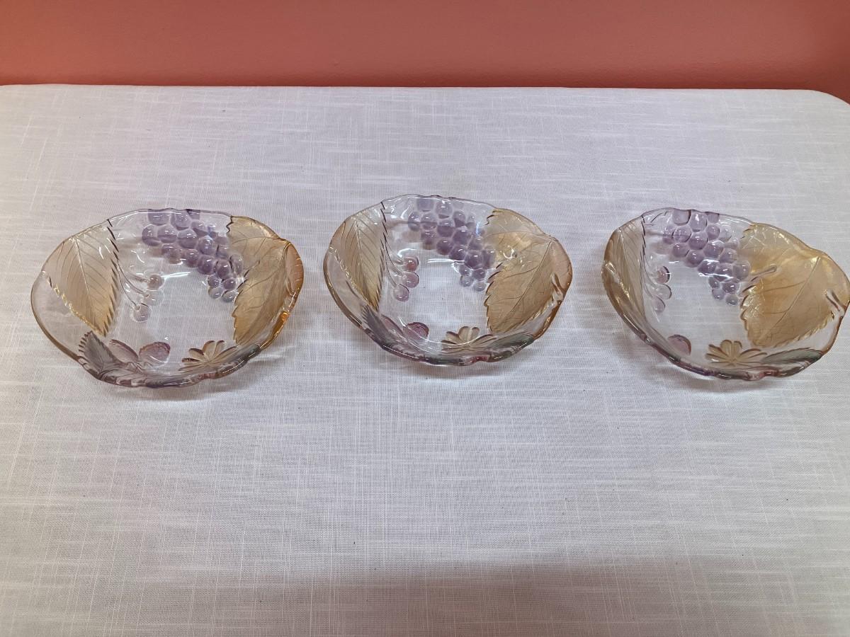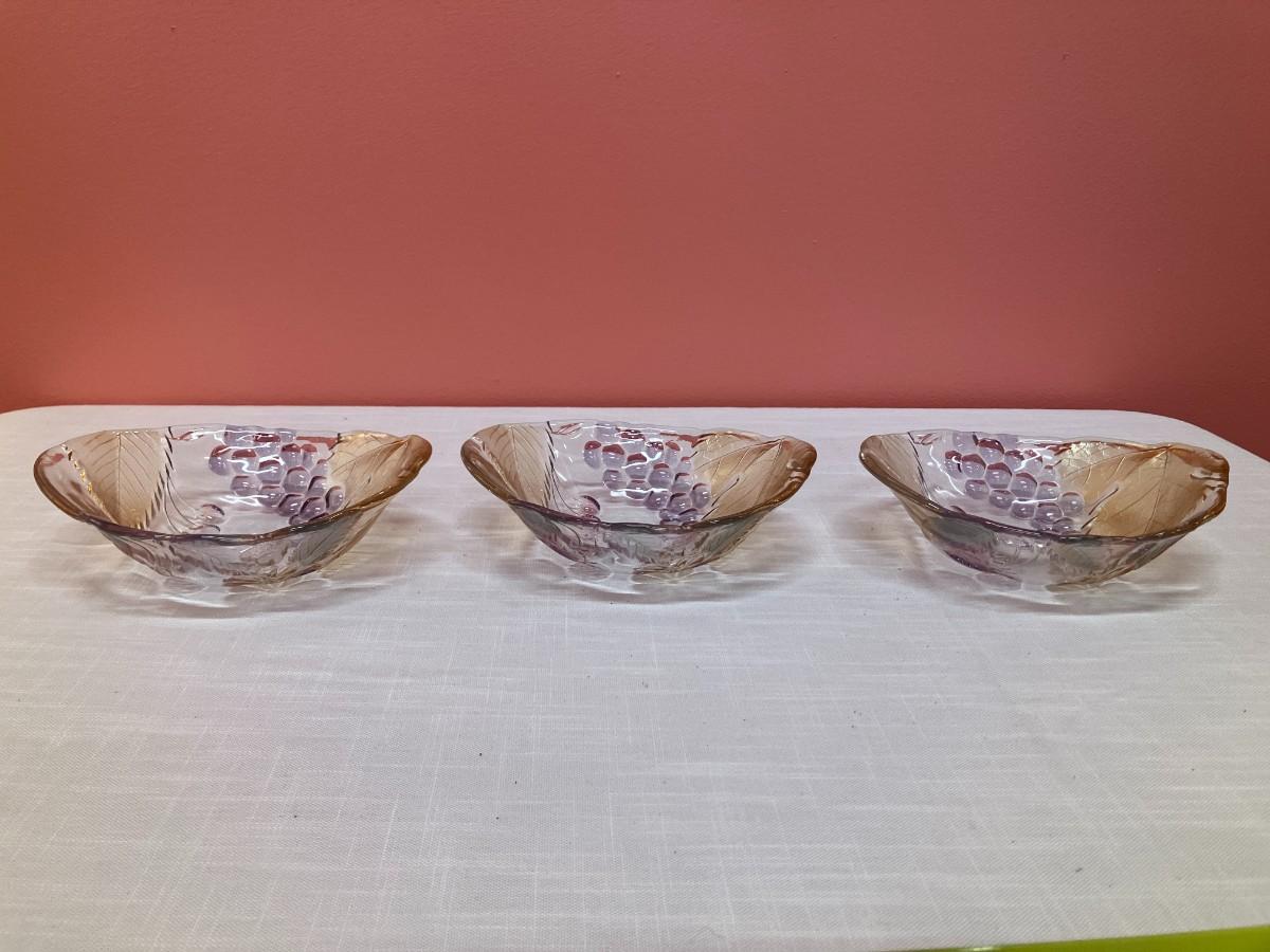 Set of 3 small glass bowls with fruit design
