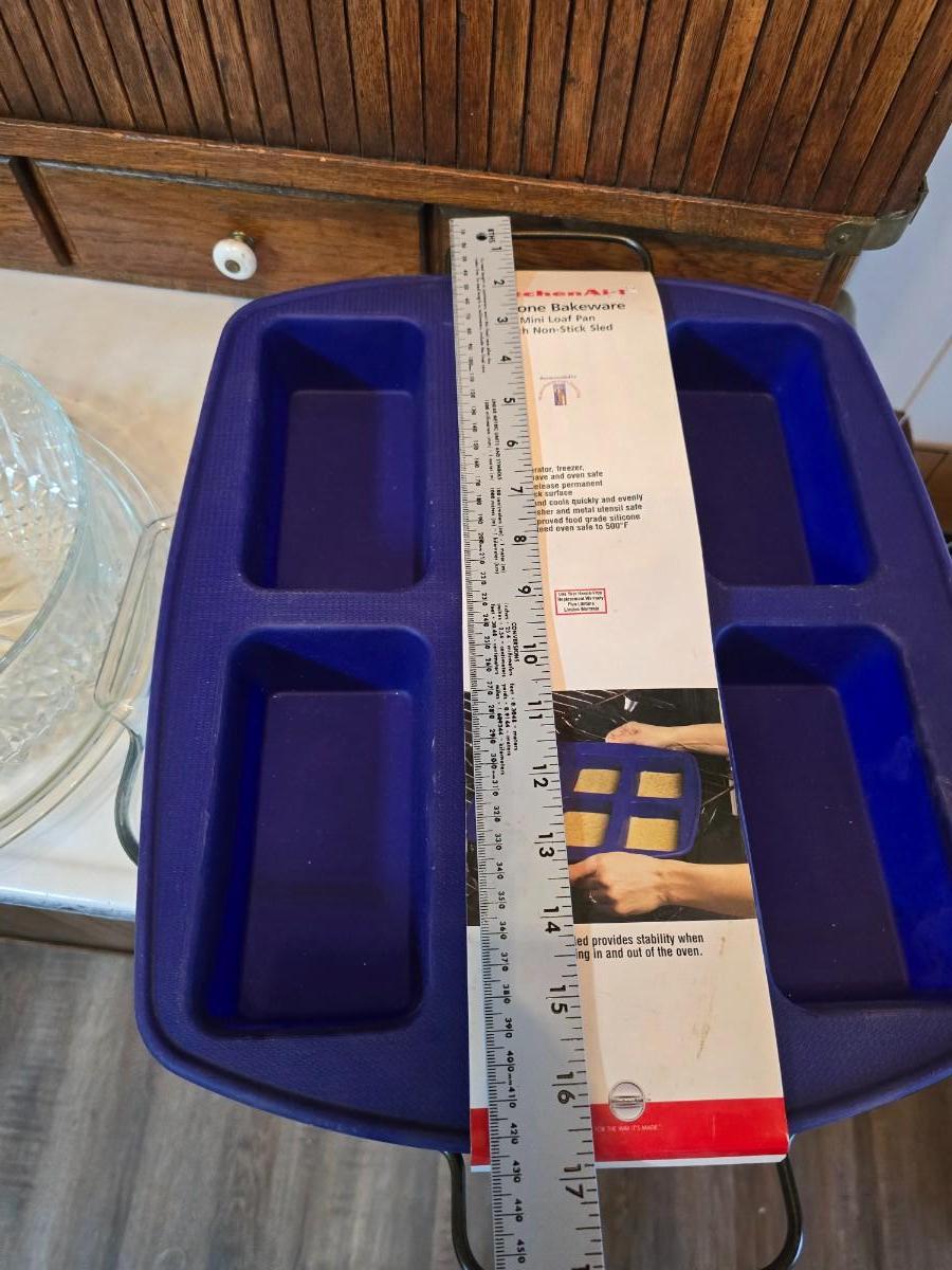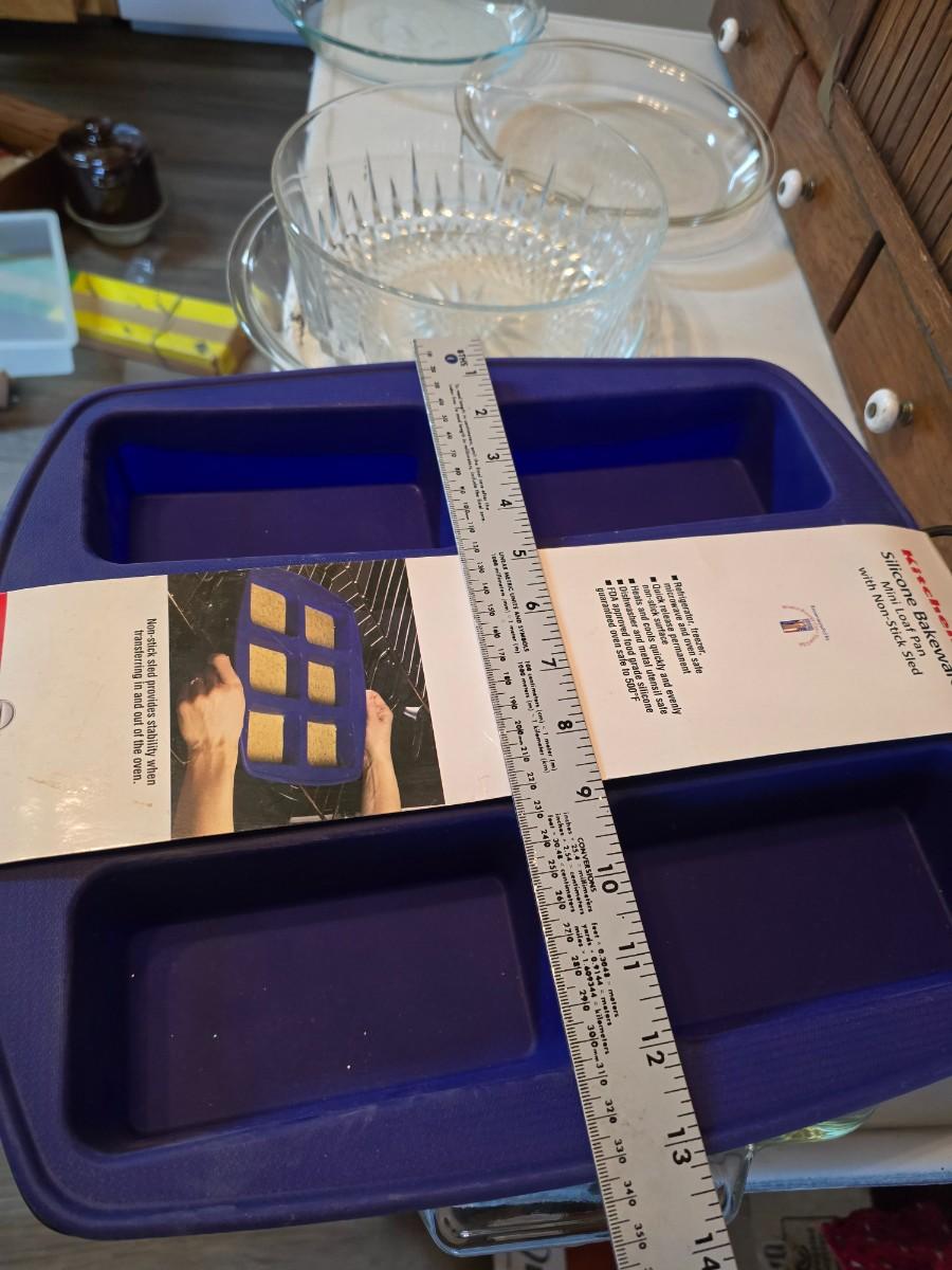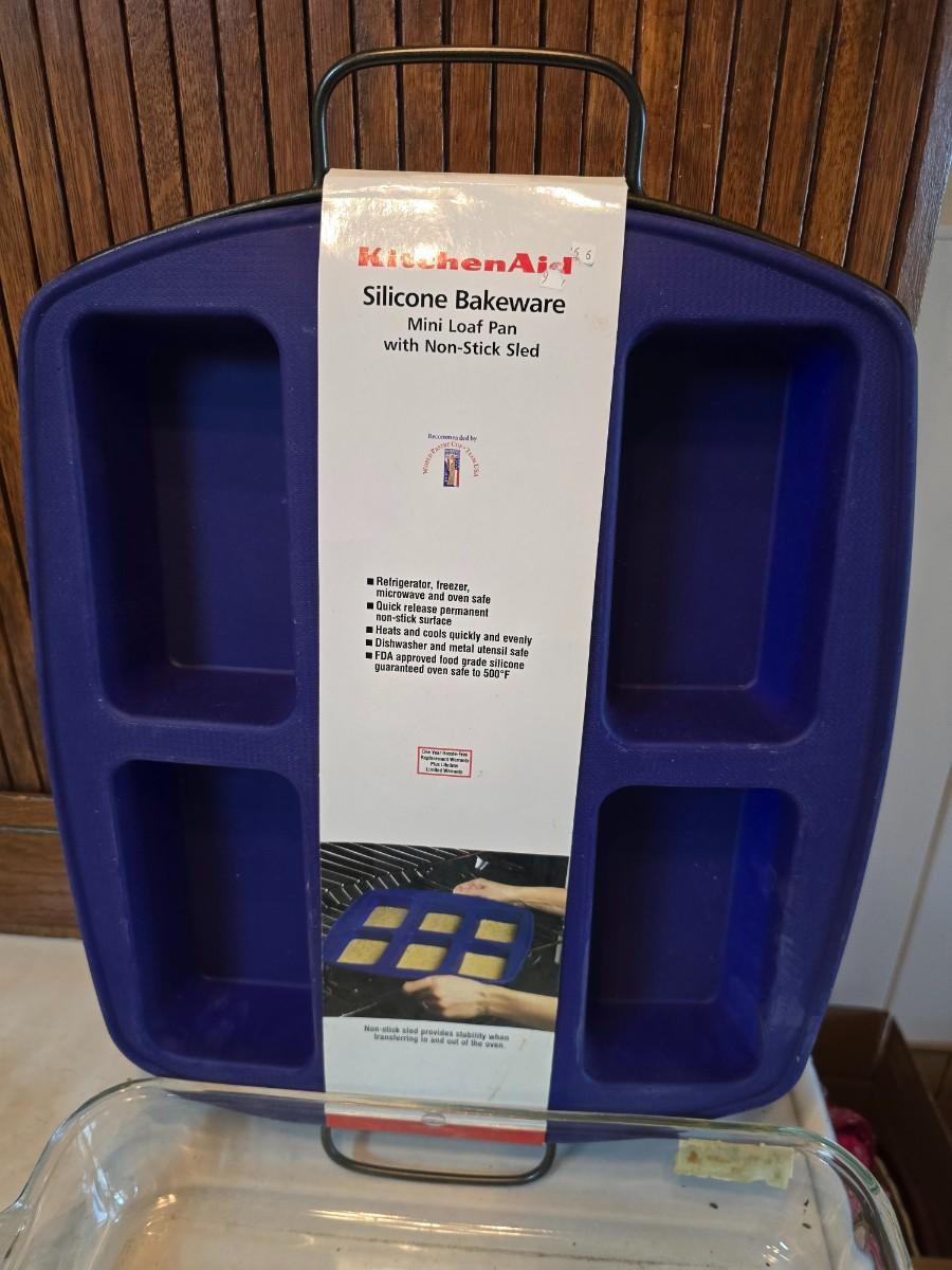Glass bowls - New Kitchaid Silicone bakeware mini loaf pan - glass pie dishes and a glass cake pan
