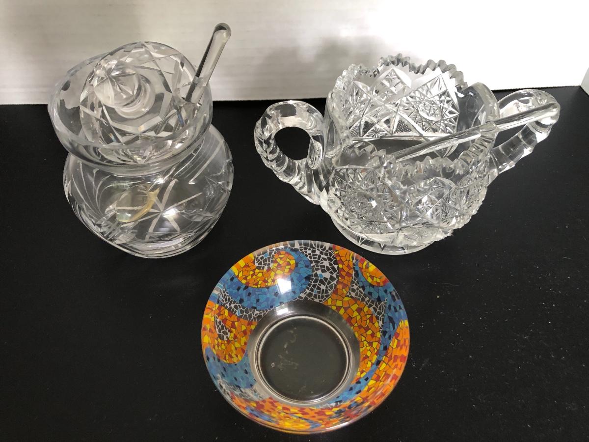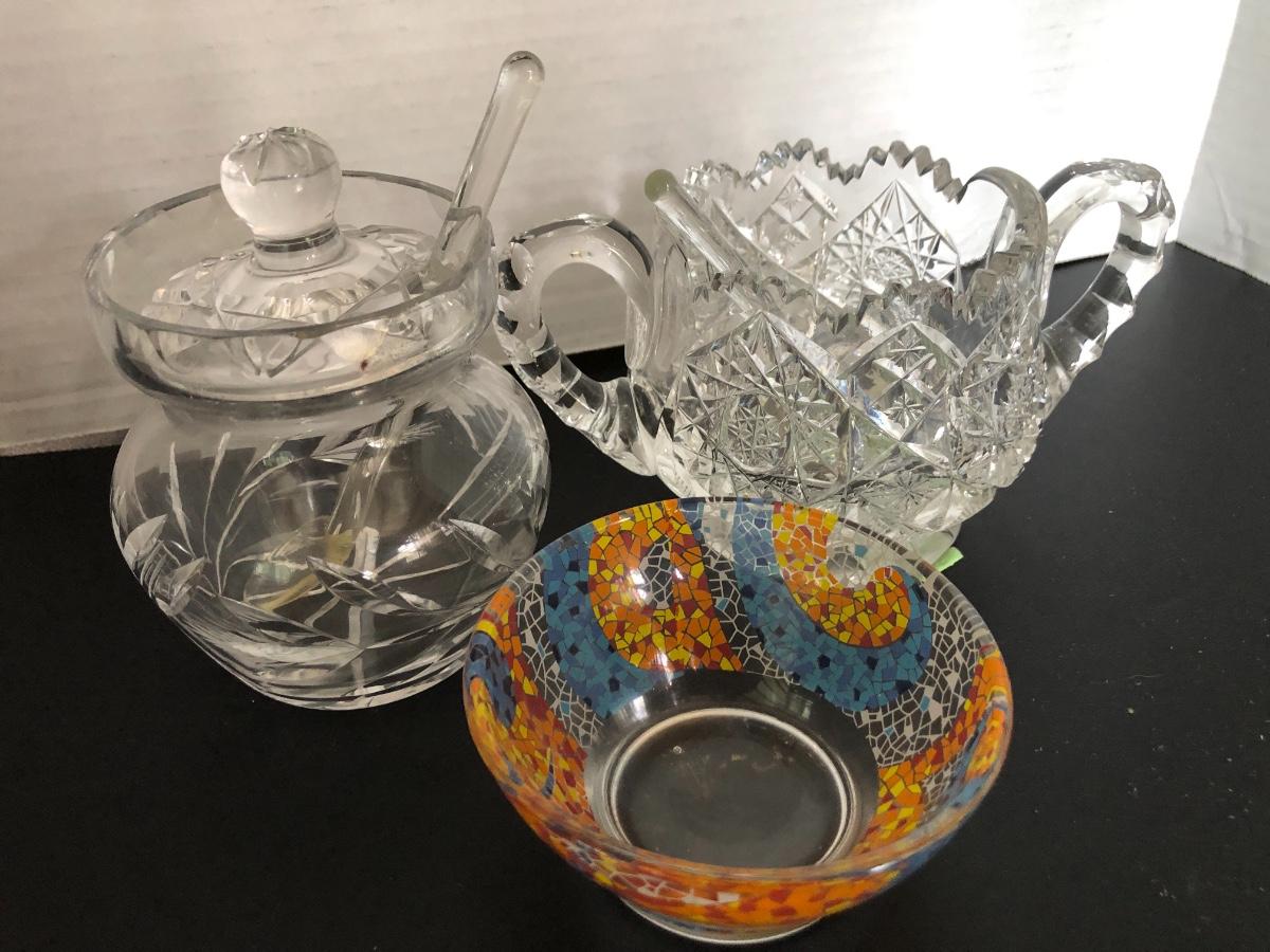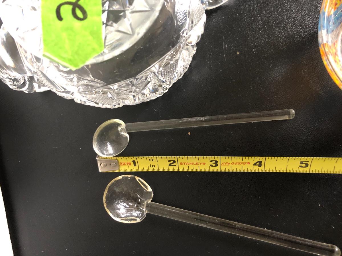 Mosaic Glass Bowl/Sugar Bowls/Spoons -Lot 217