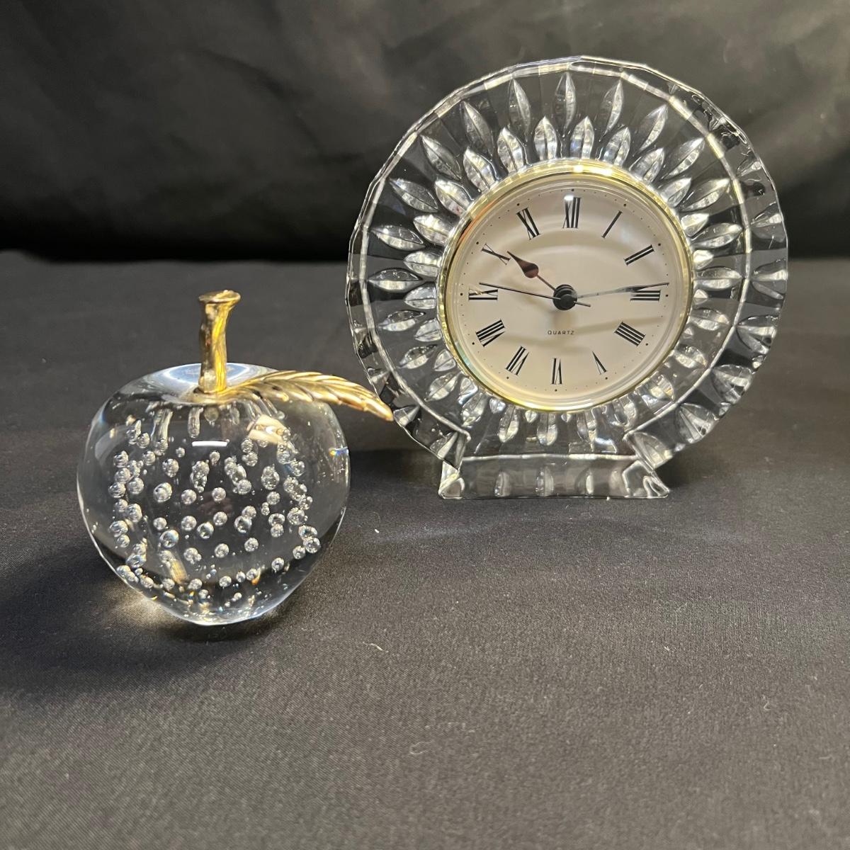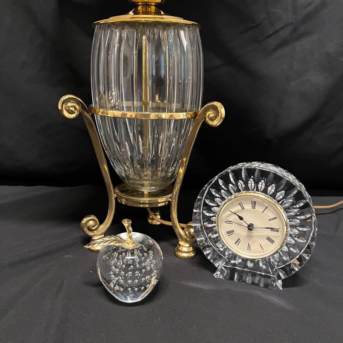 Glass & Brass Lamp Plus Glass Clock and a Paperweight (B2-RG)