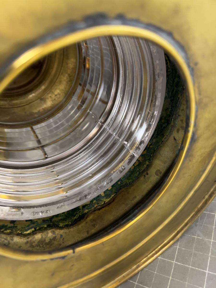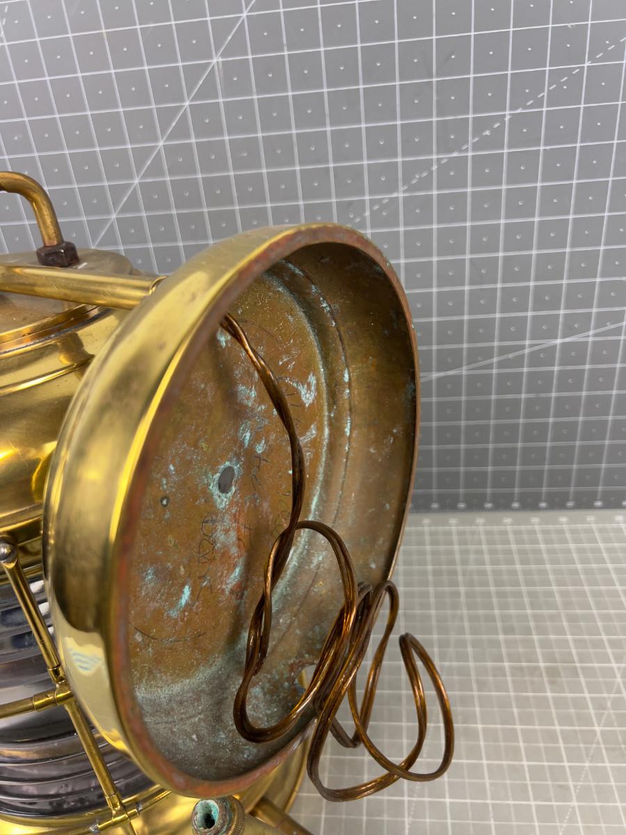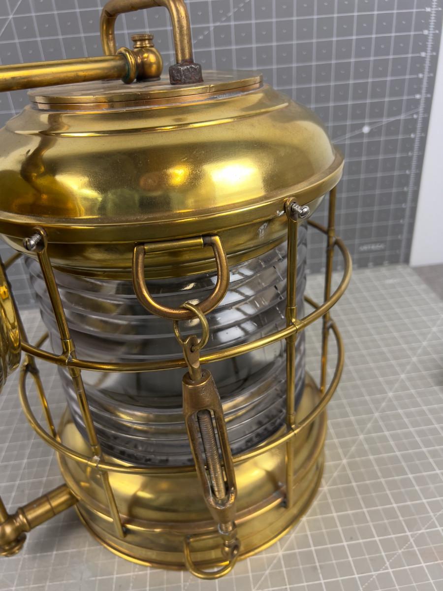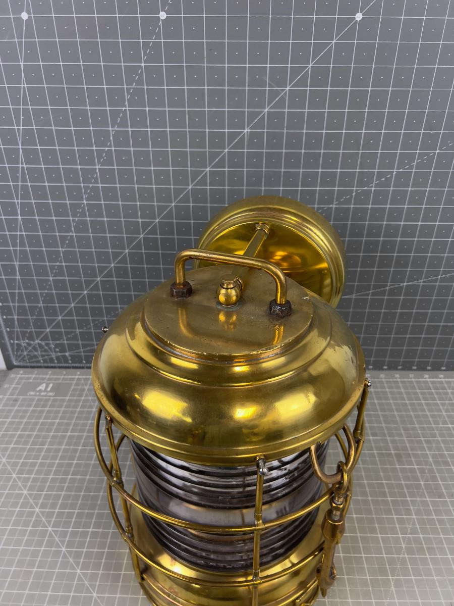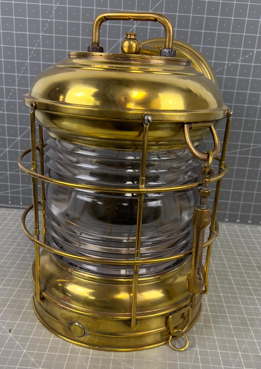 Glass & Brass Ships Light FRESNO Lense, Electrified, Manufactured By PERKO