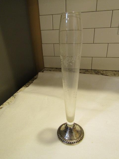 Glass Bud Vase with Weighted Sterling Bottom- 9 3/4" Tall