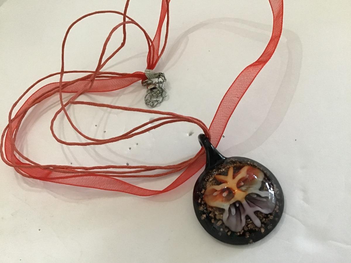 Glass Butterfly Pendant on Cord Ribbon Necklace