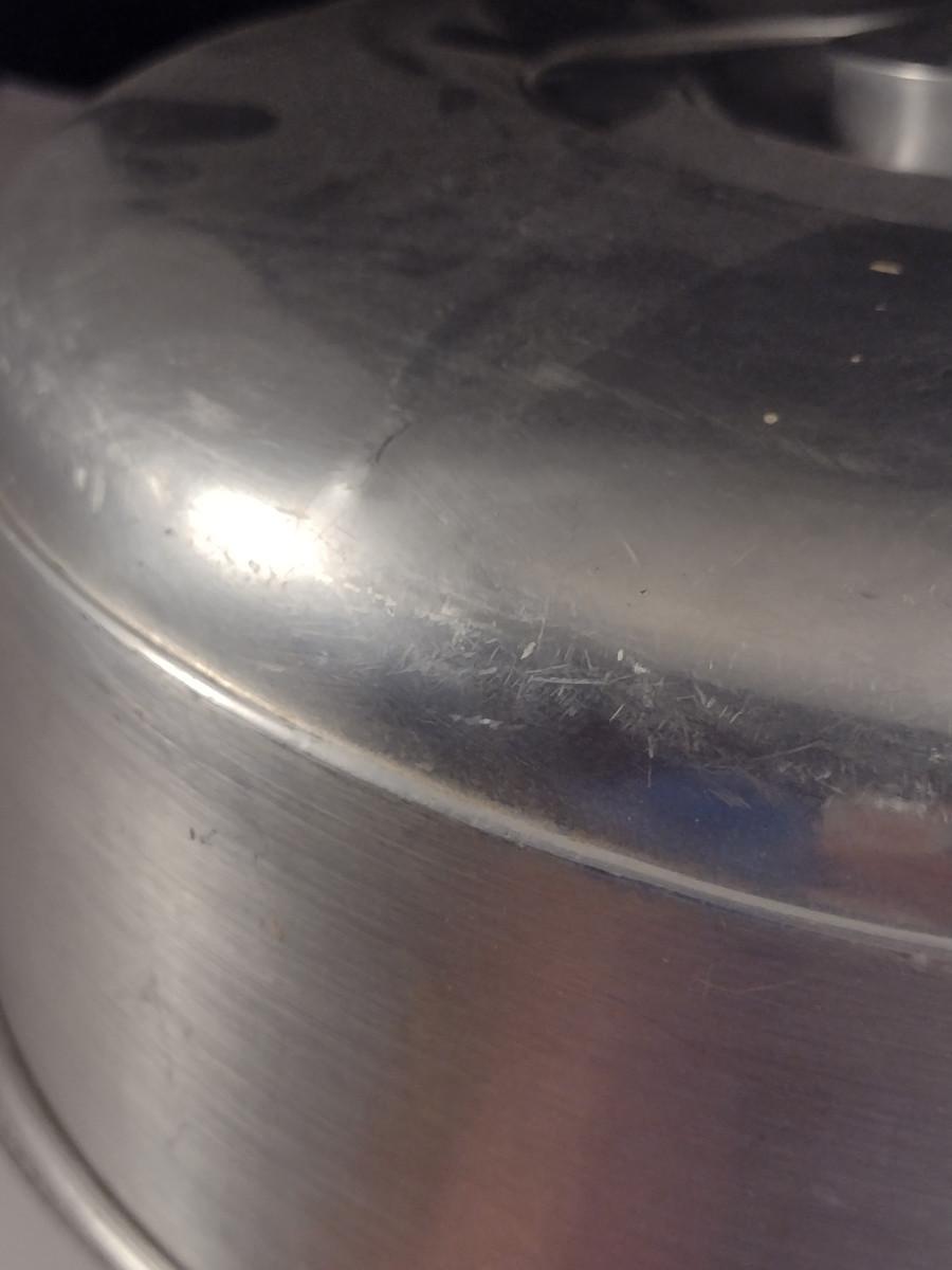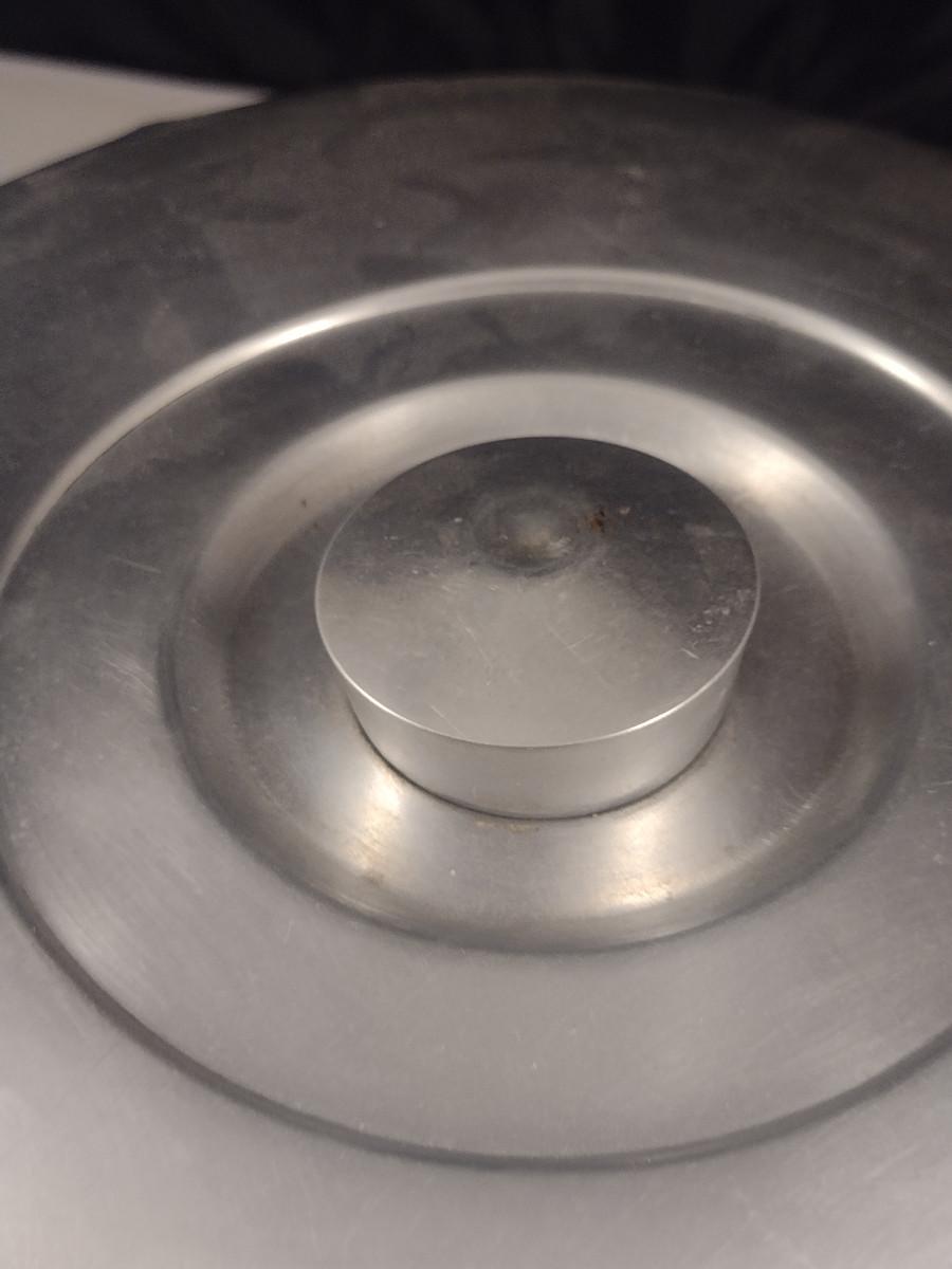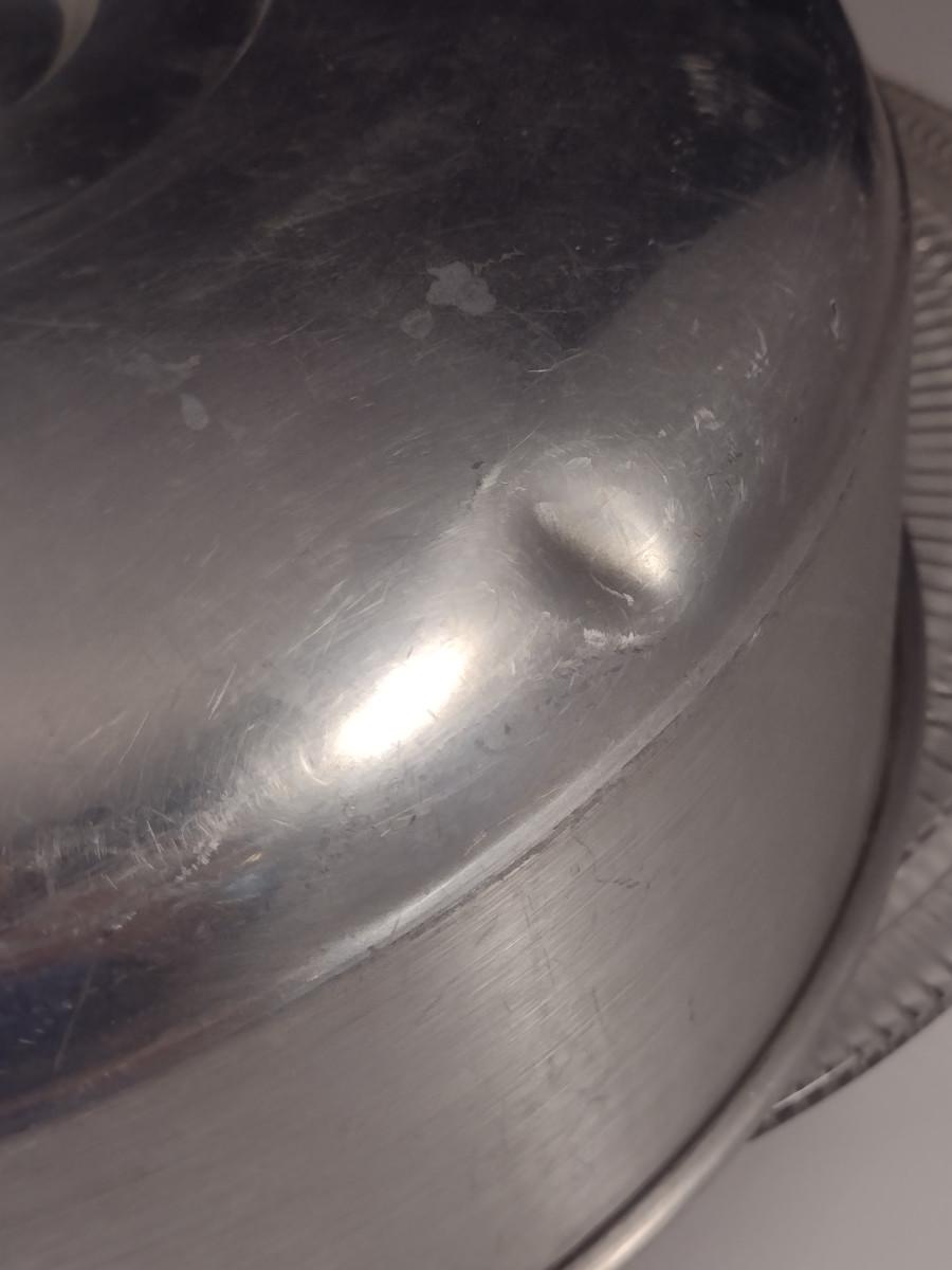 Glass Cake Plate with Aluminum Dome Cover. Cover has some light denting- please see all pictures.