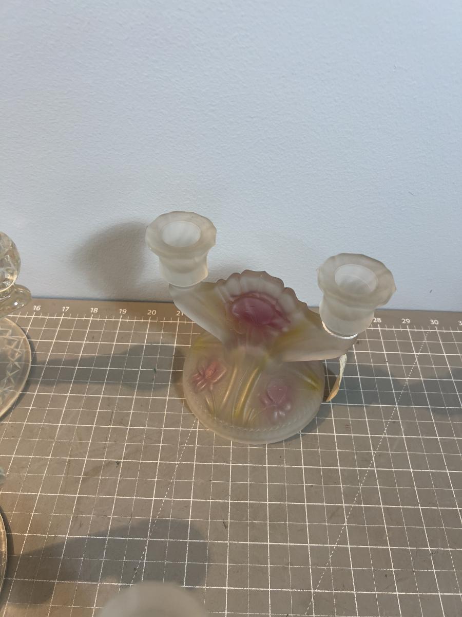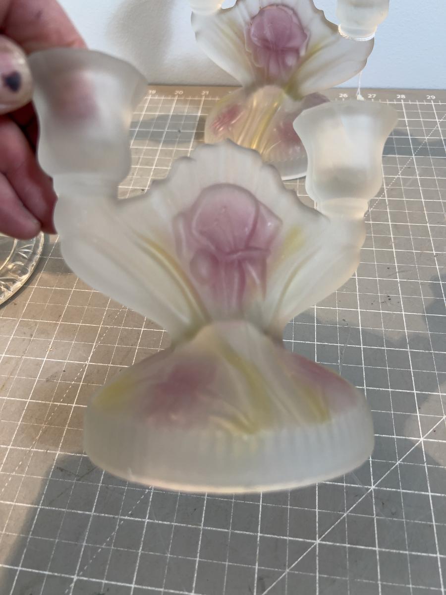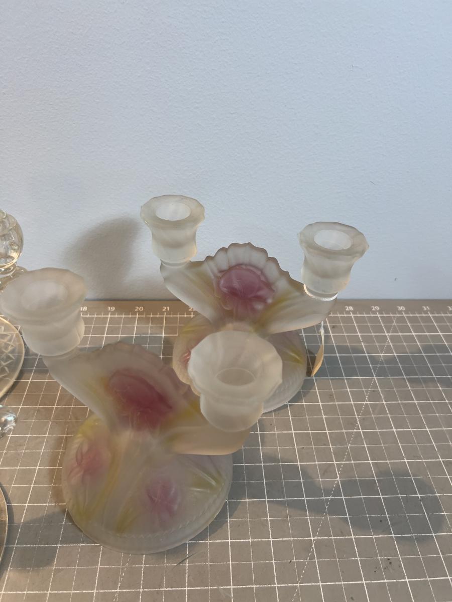 Glass Candelabras (6 ) 1 set is fronted Iris and Herringbone