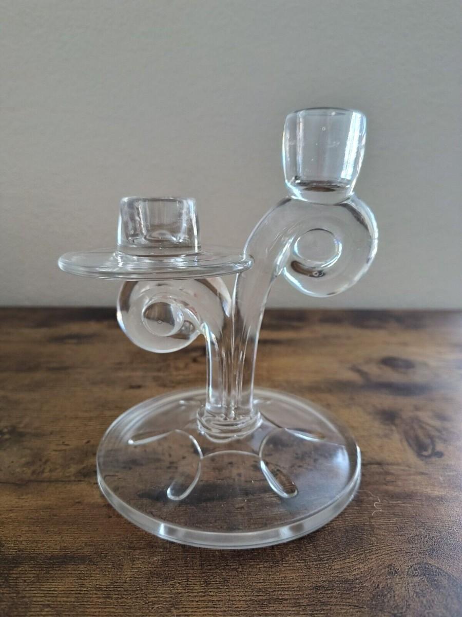 Homco Home interior clear glass candle stick holder 6.5"