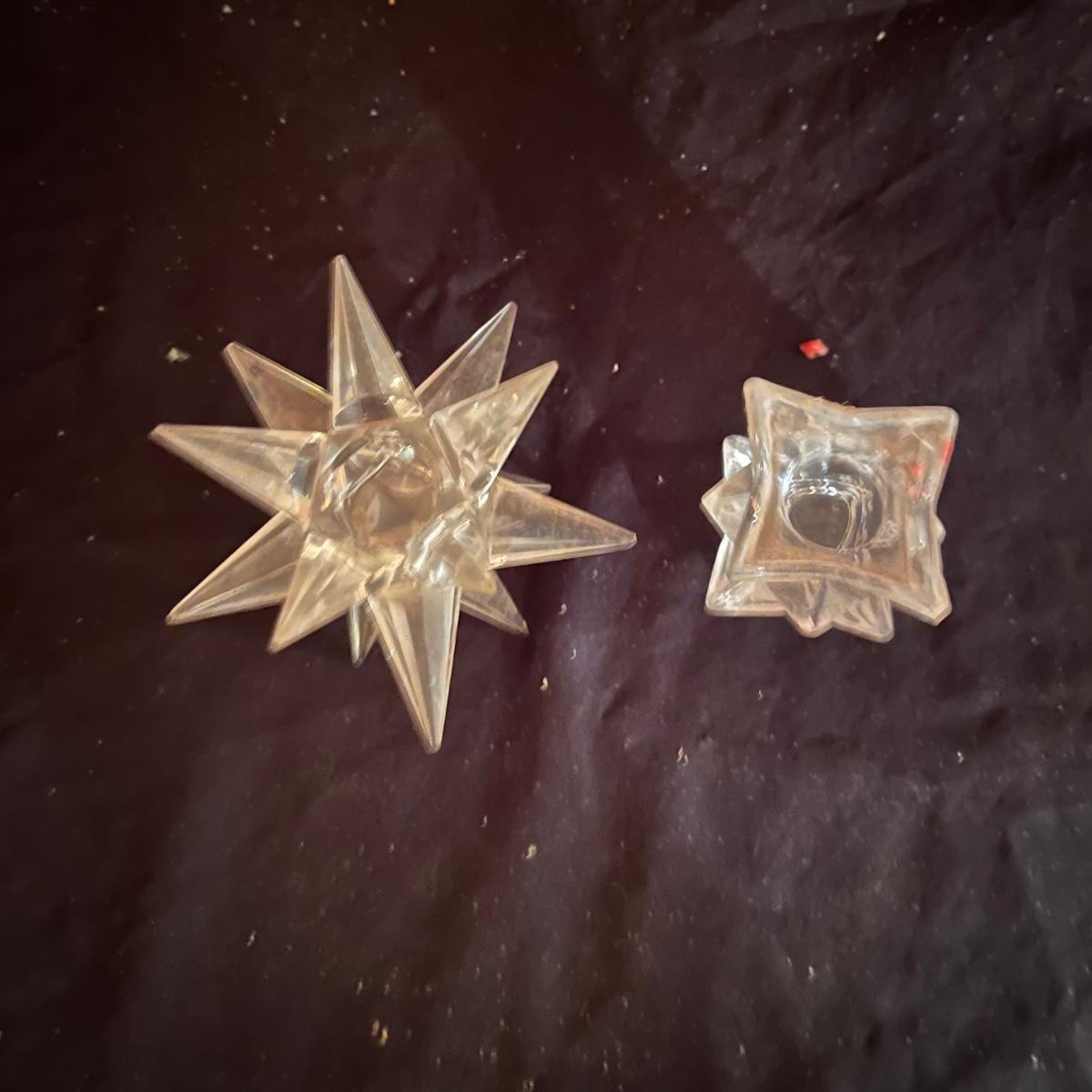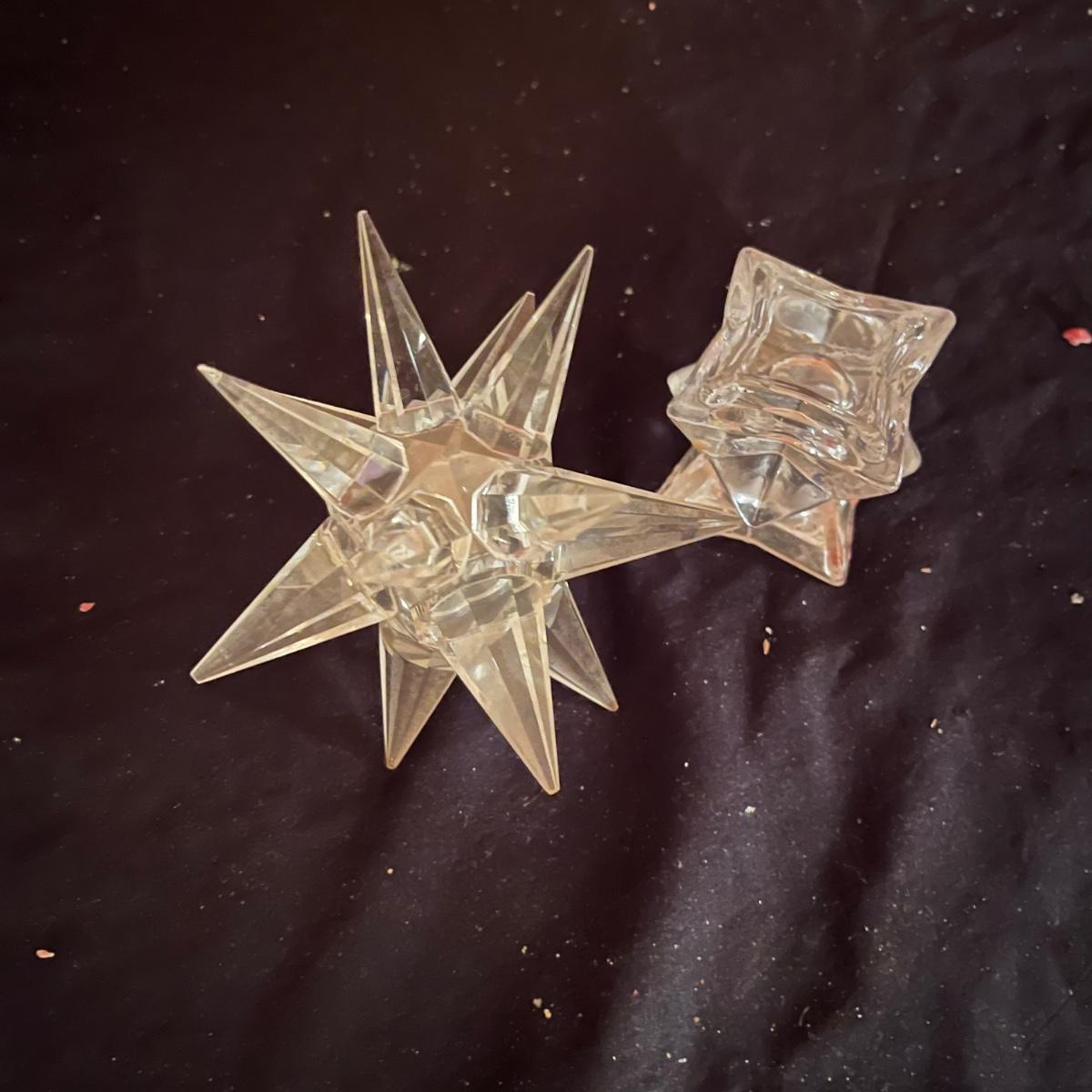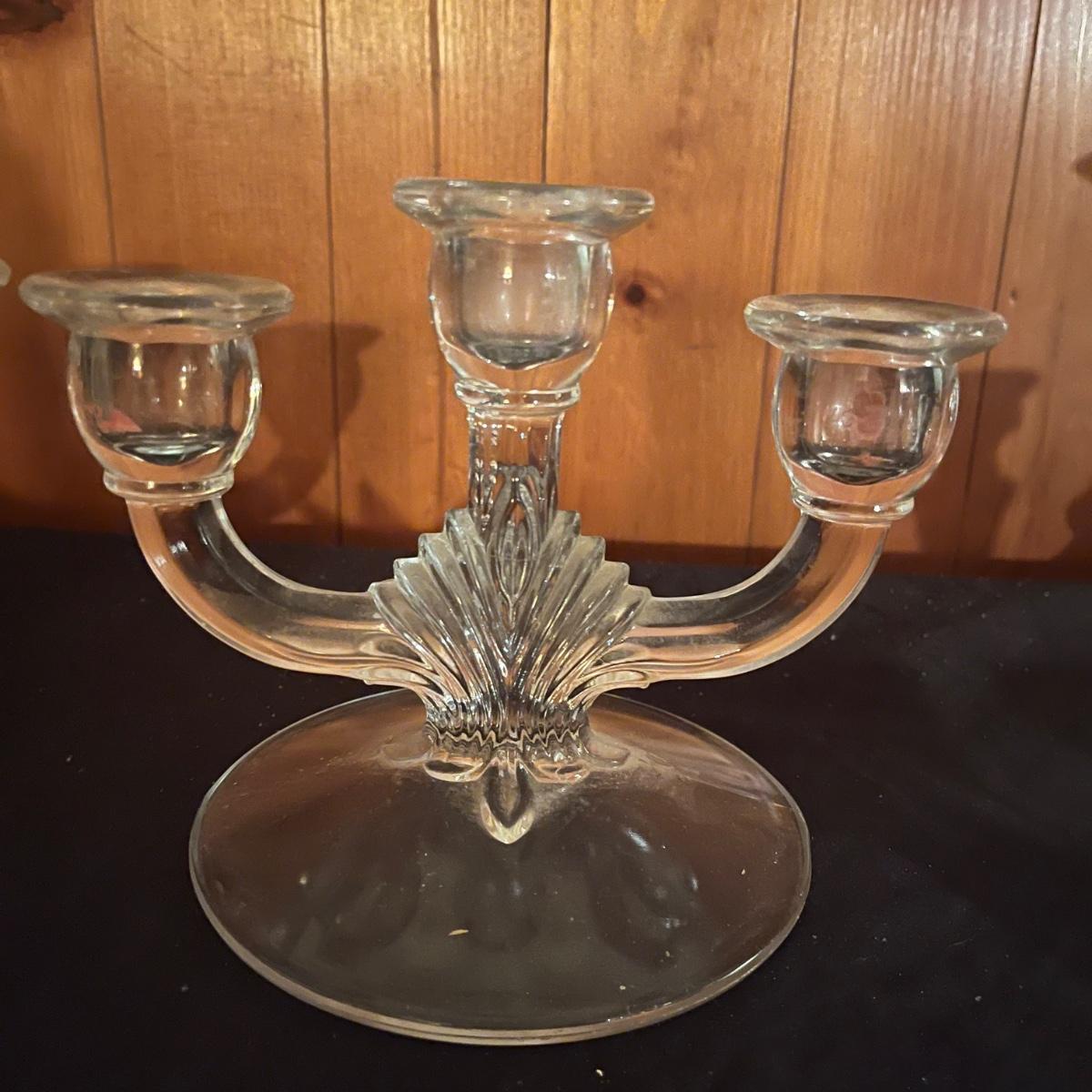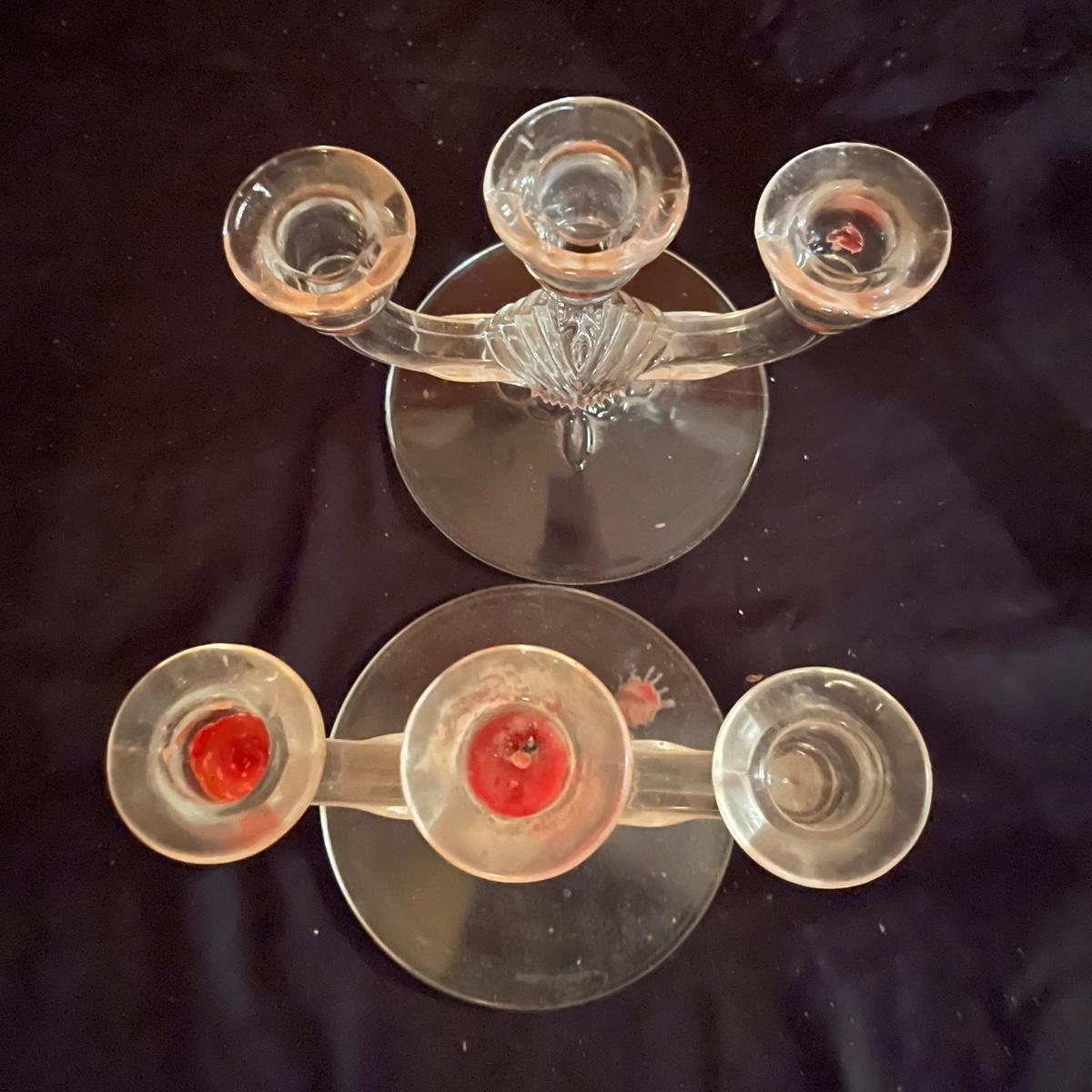 Lot includes a pair of triple candelabras, a star candle holder and four taper candle holders in a variety of sizes.