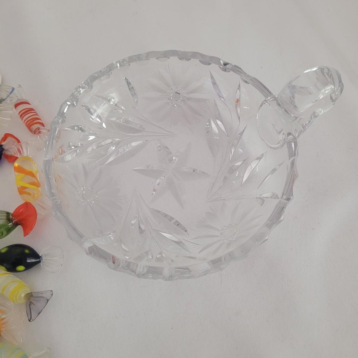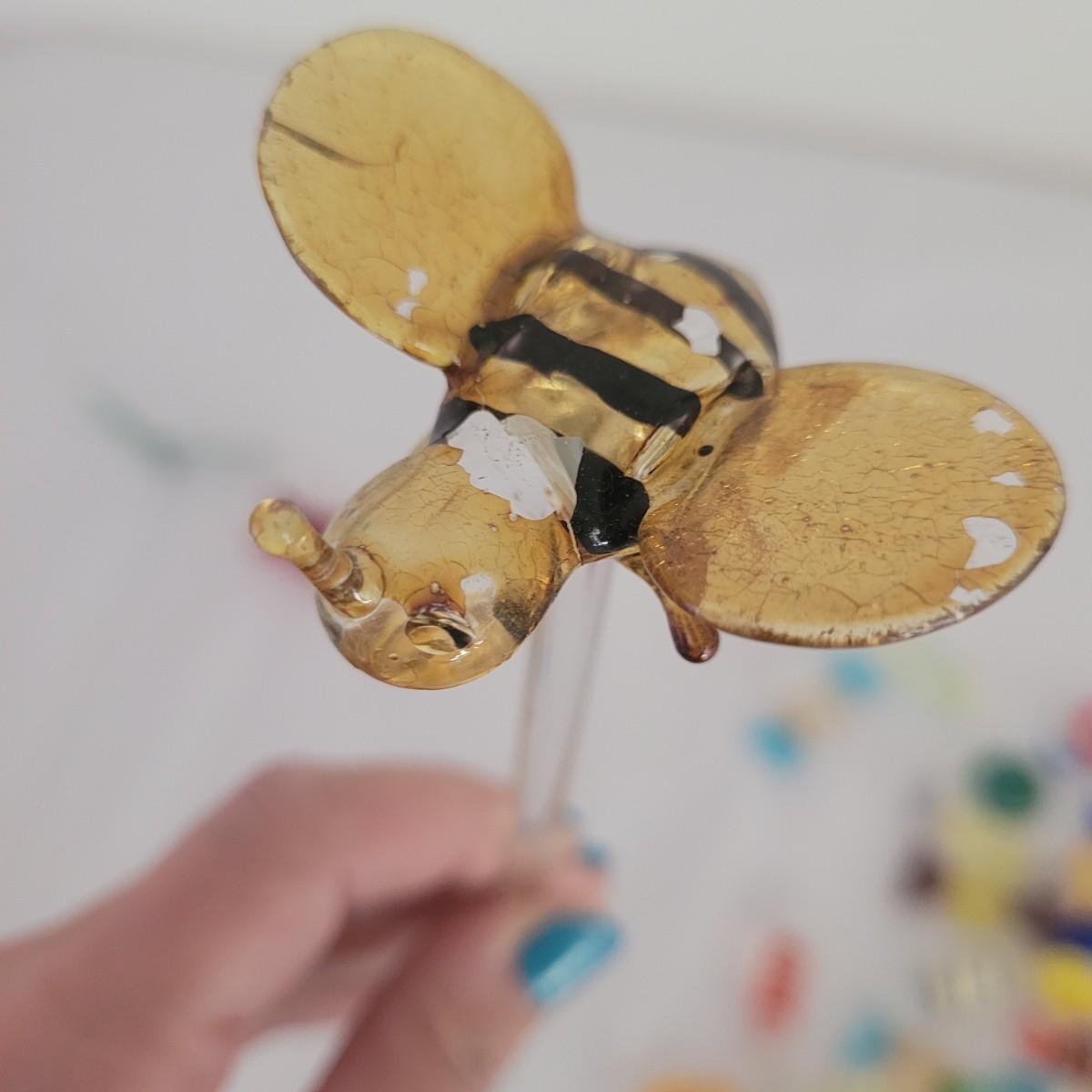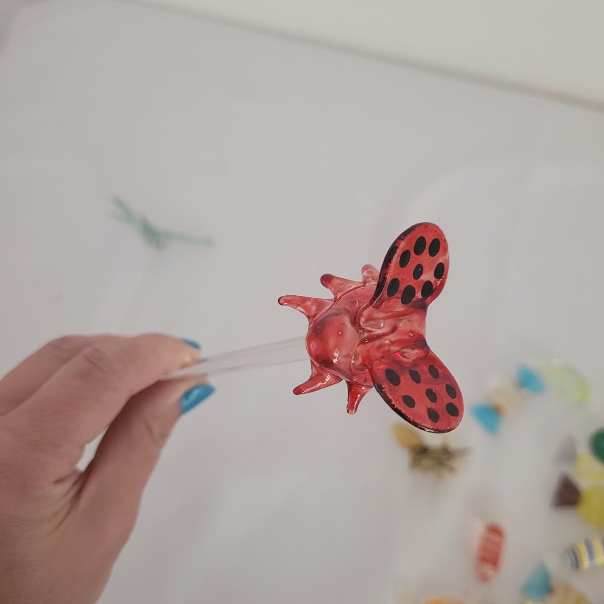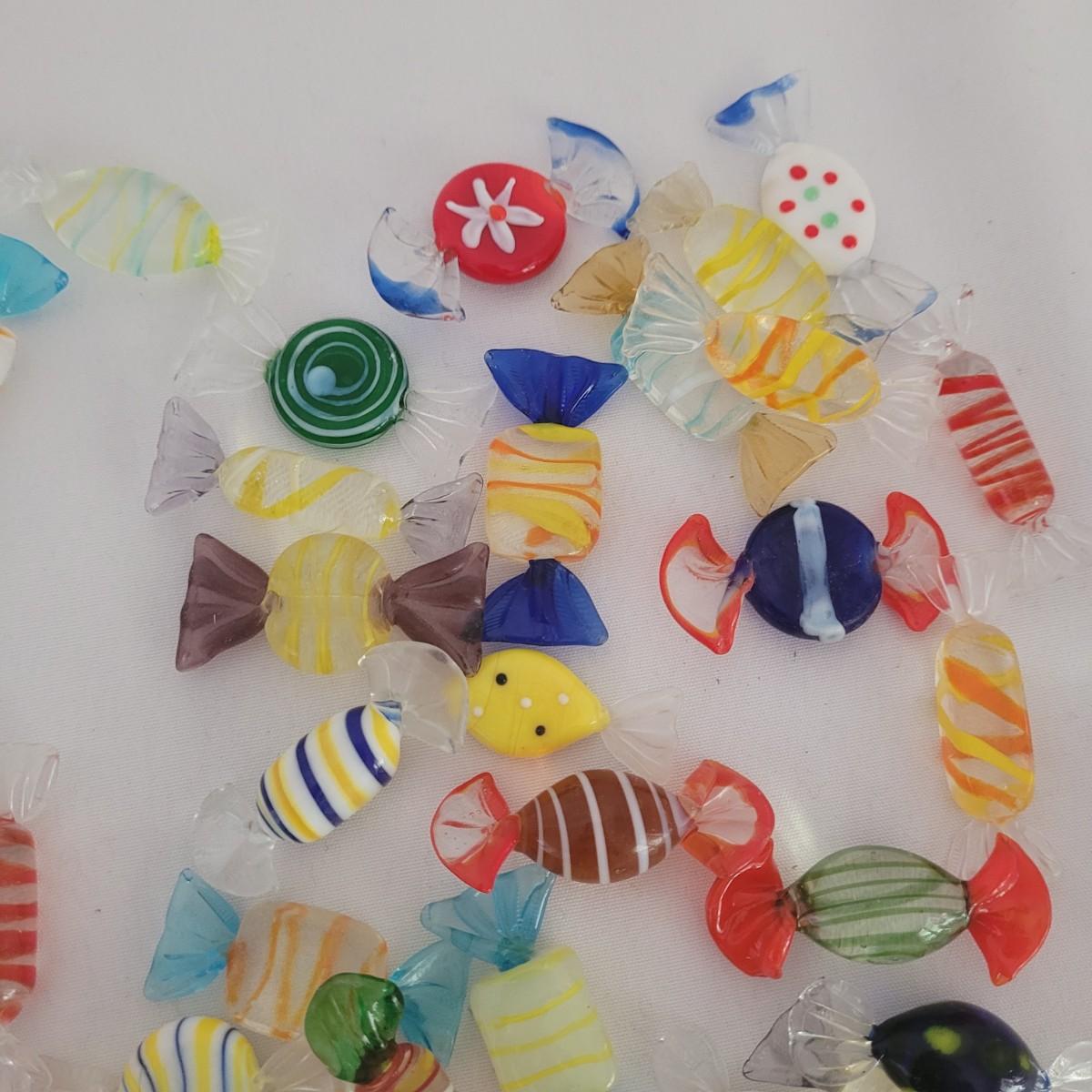 A cute assortment of glass candies with a dish, in addition to three decorative planter pieces in the styles of a dragonfly, ladybug and bumblebee. The average piece is approximately 2"L. Some chipping (see photos). Shipping available.