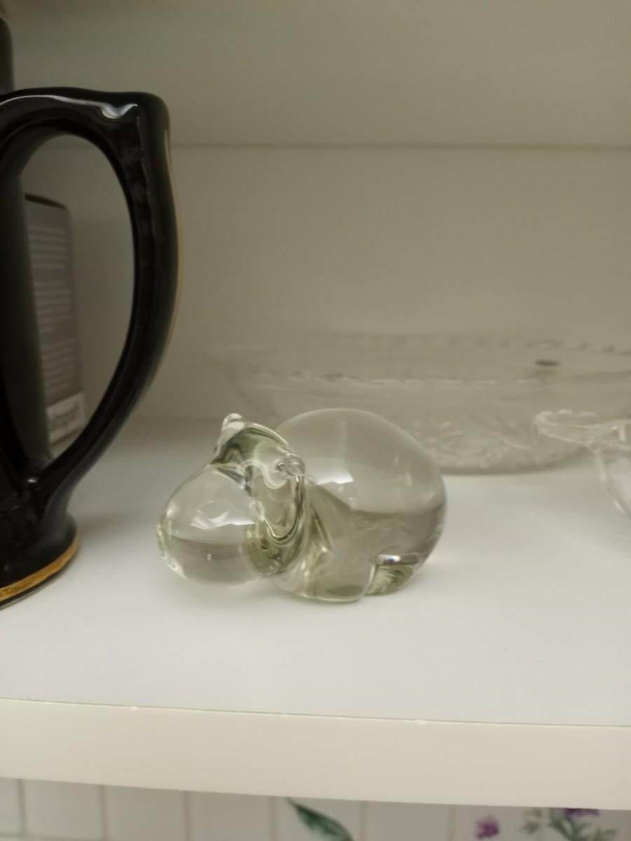 9 WIDE GLASS CANDY DISHES-GLASS HIPPO-(NIB) COFFEE CUPD -STEIN