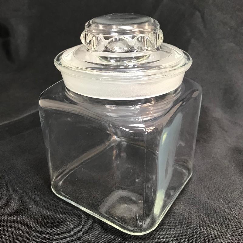 Body of the jar measures 4 5/8“ and stands 6.5” tall including the lid.