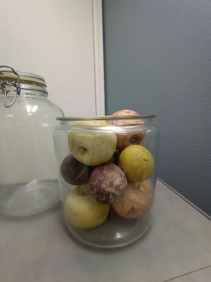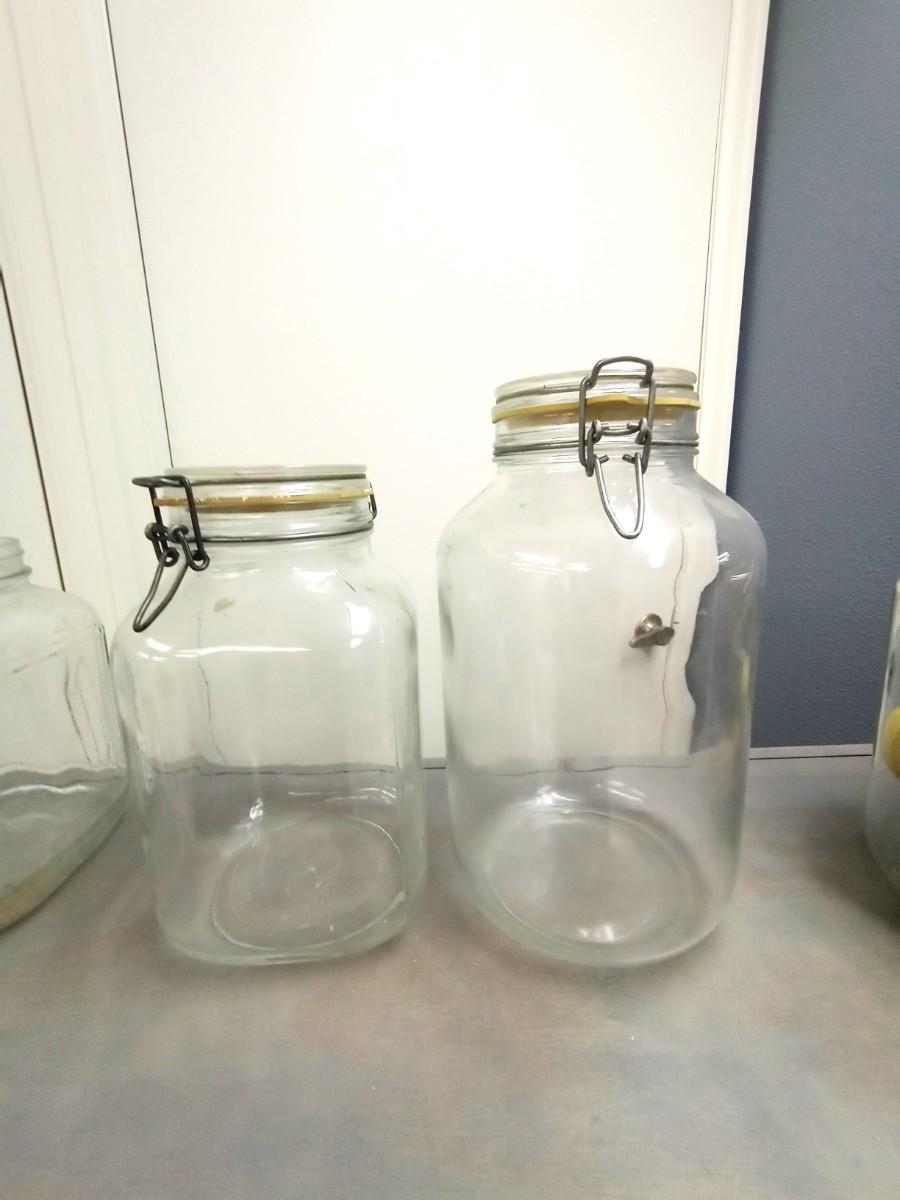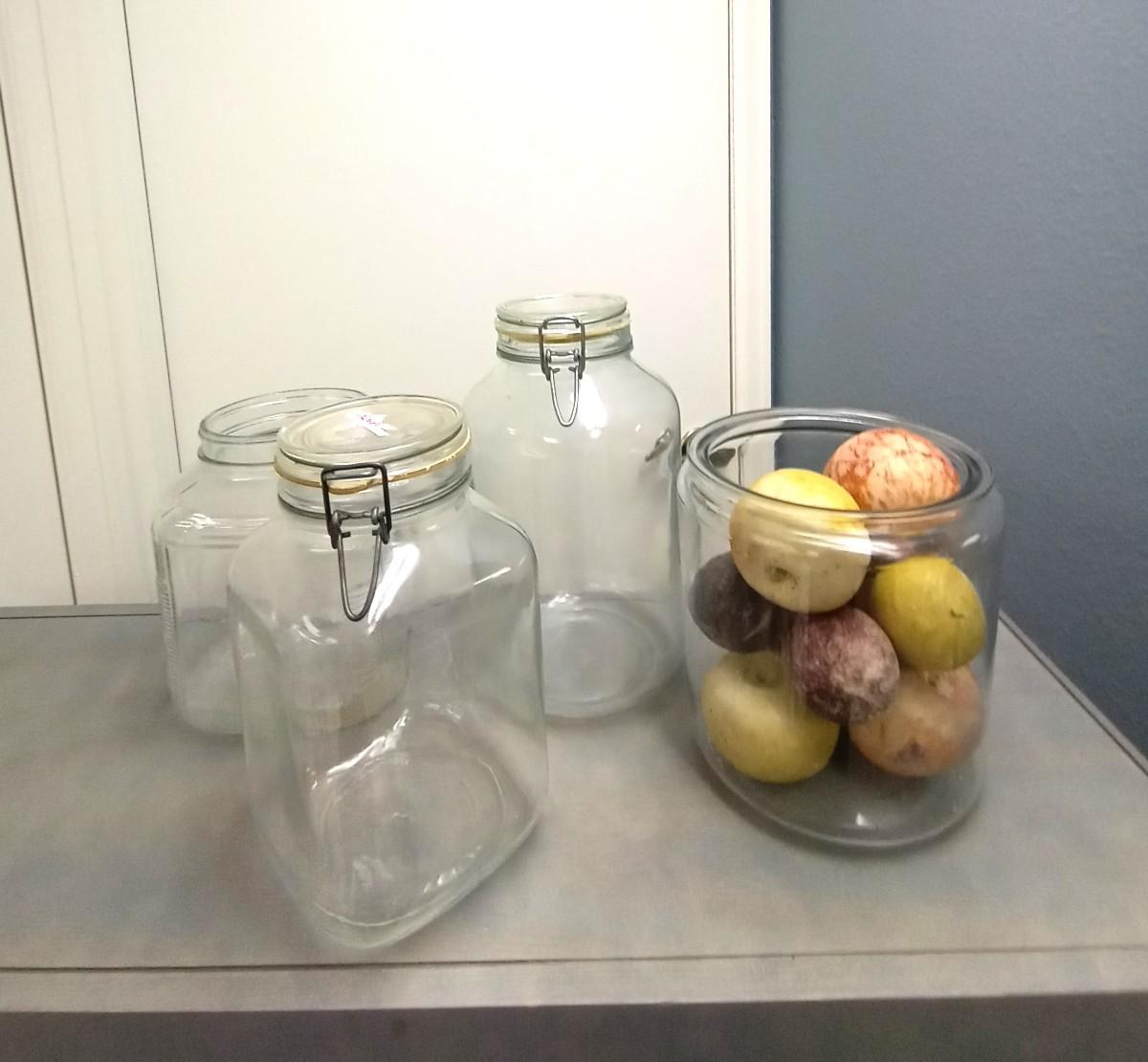 GLASS CANISTERS TALLEST MEASURES AT 11" AND HEAVY FRUIT PIECES
