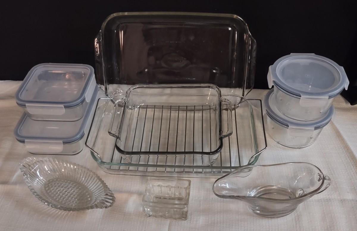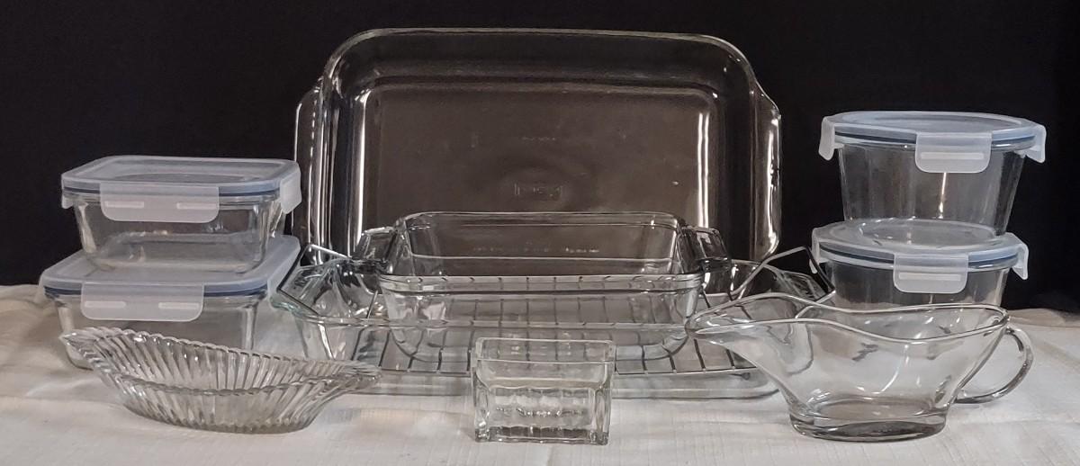Glass Casserole Ovenware. Made by Pyrex, Anchor Hocking, Ikea, and Made In U.S.A. Gravyboat Please see all pictures as they are the best representation of the items. The pictures show condition, measurements if taken, and what is included in the lot. Due to the large amount that we photograph and the time frame, we are not always able to take measurements. All items unless noted, are pre-owned and have been used. If you purchased furniture, you must bring help. We do not allow one person to carry large furniture out on their own. Bring help, tools and a truck for the safety of our client’s homes, and your personal safety. Company policy. Thank you.