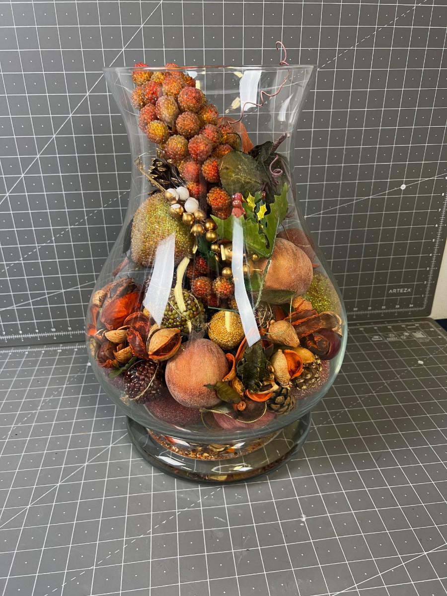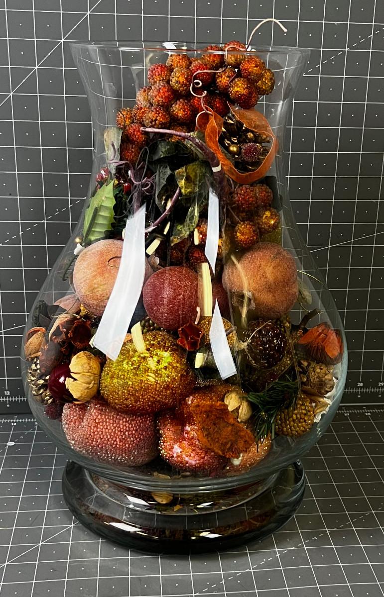full of Autumn Colored Décor. 16" Tall Large and heavy, no shipping