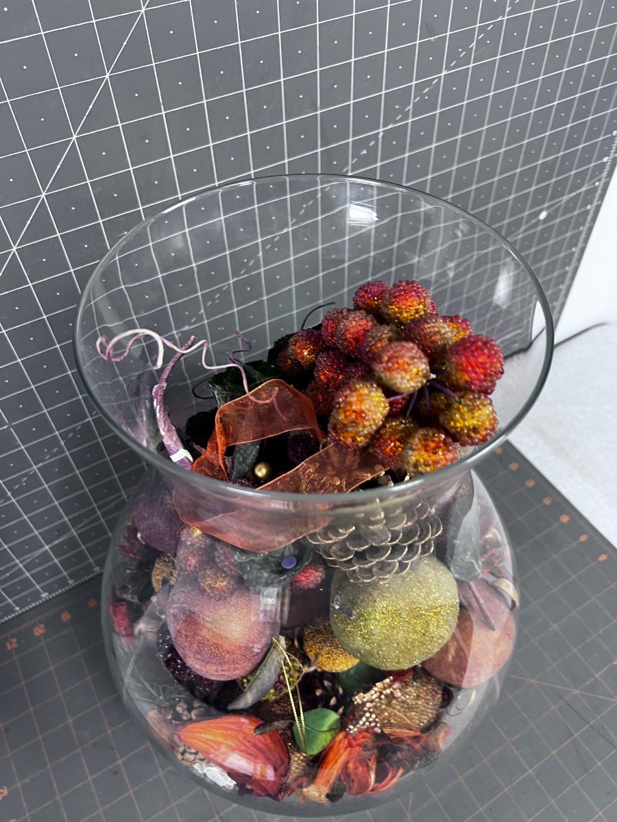 Glass Centerpiece with Faux Fruit