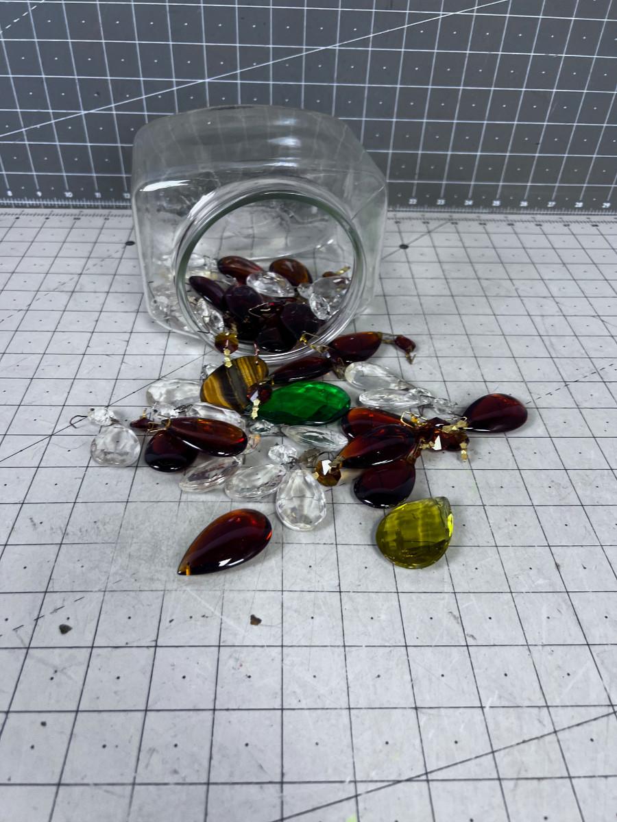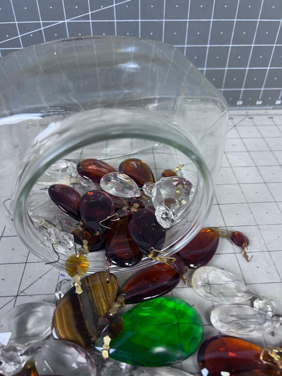 Glass Chandelier Dangles: Amber, Clear And Green