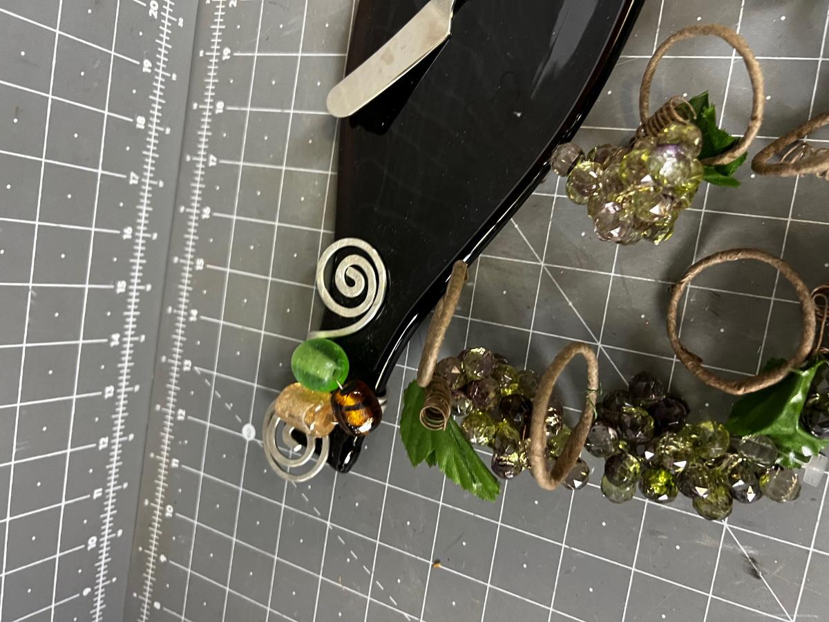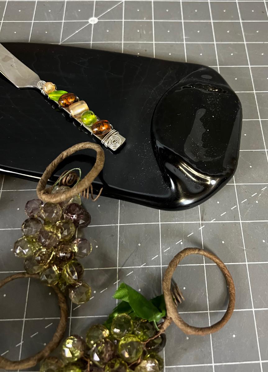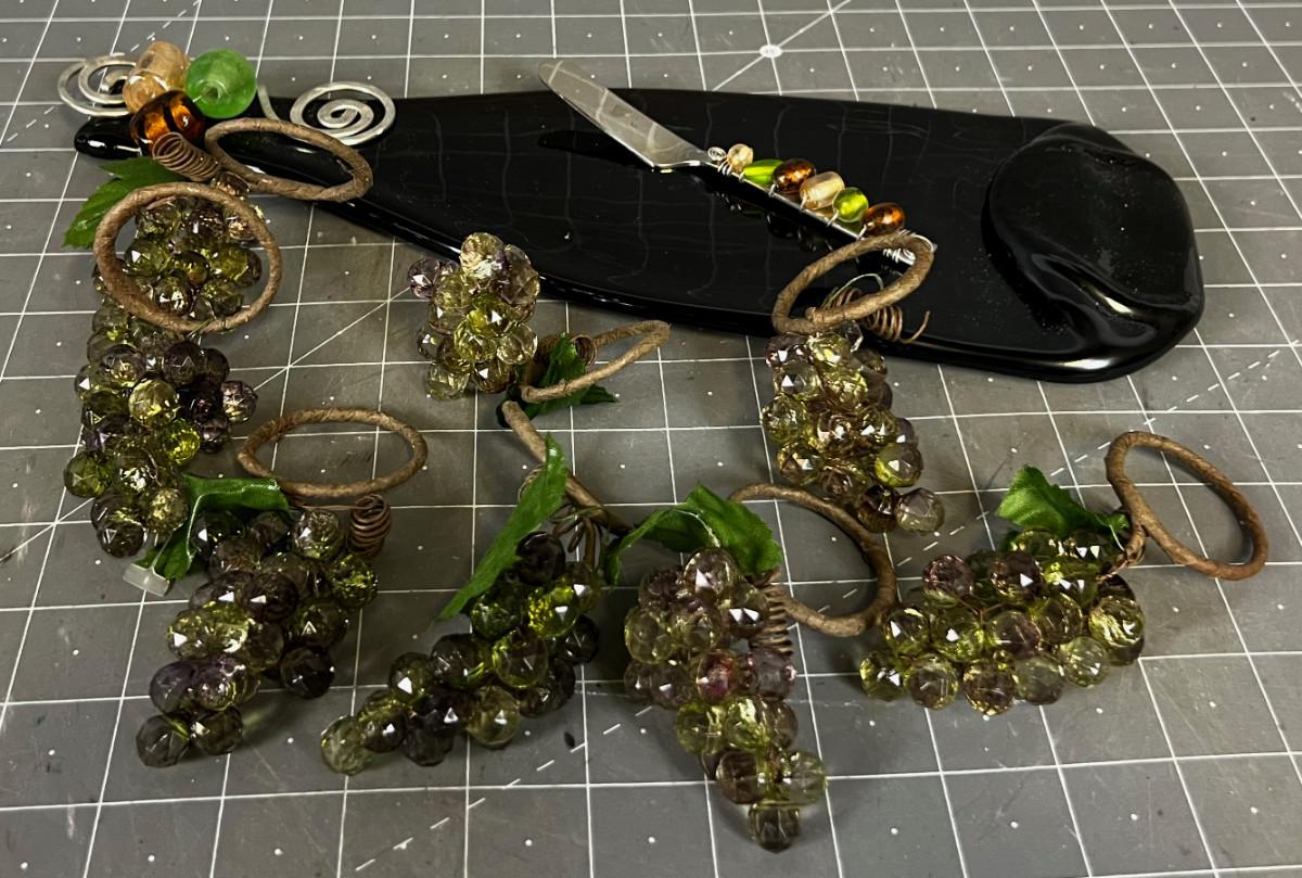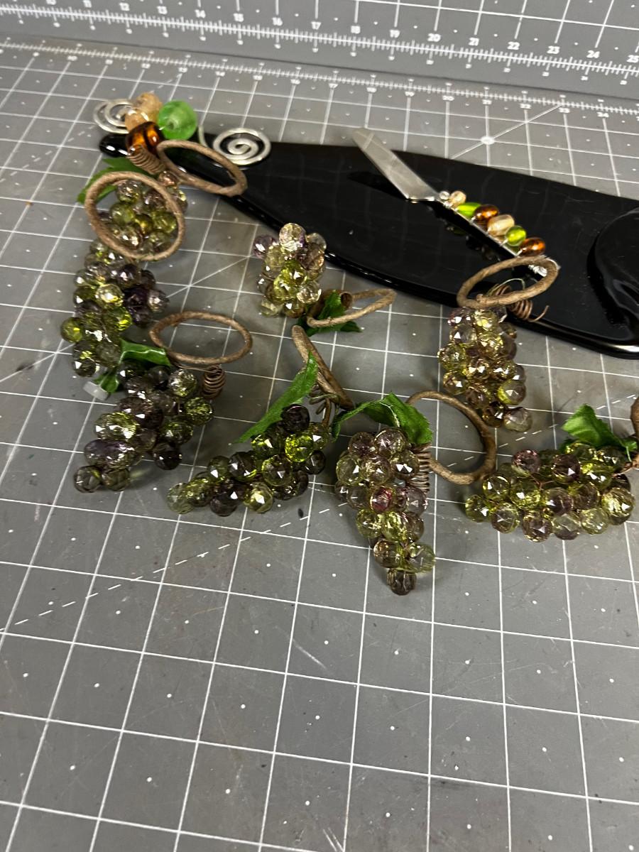 Glass Cheese Tray of Bottle of Wine + Napkin Ring Grapes