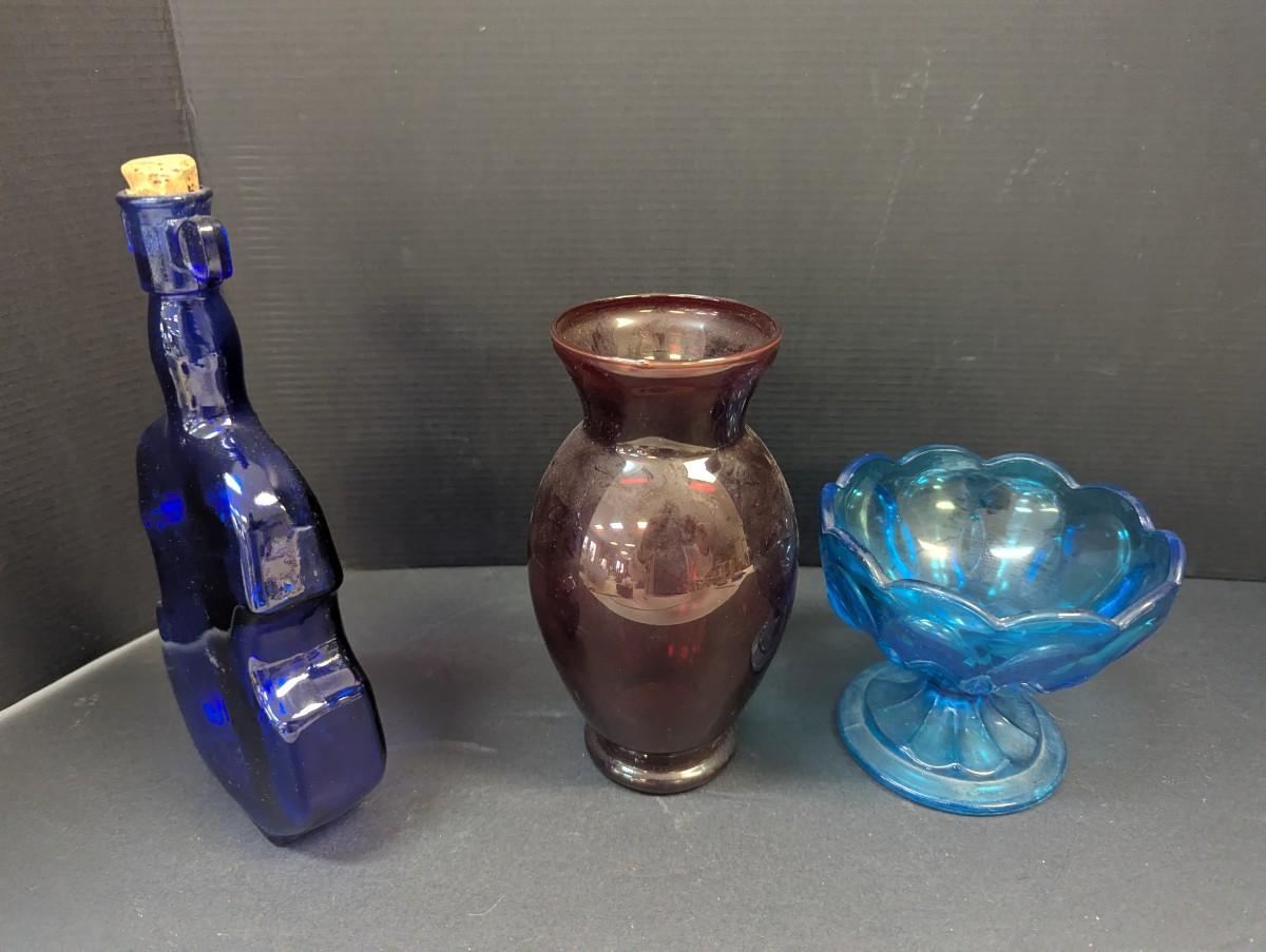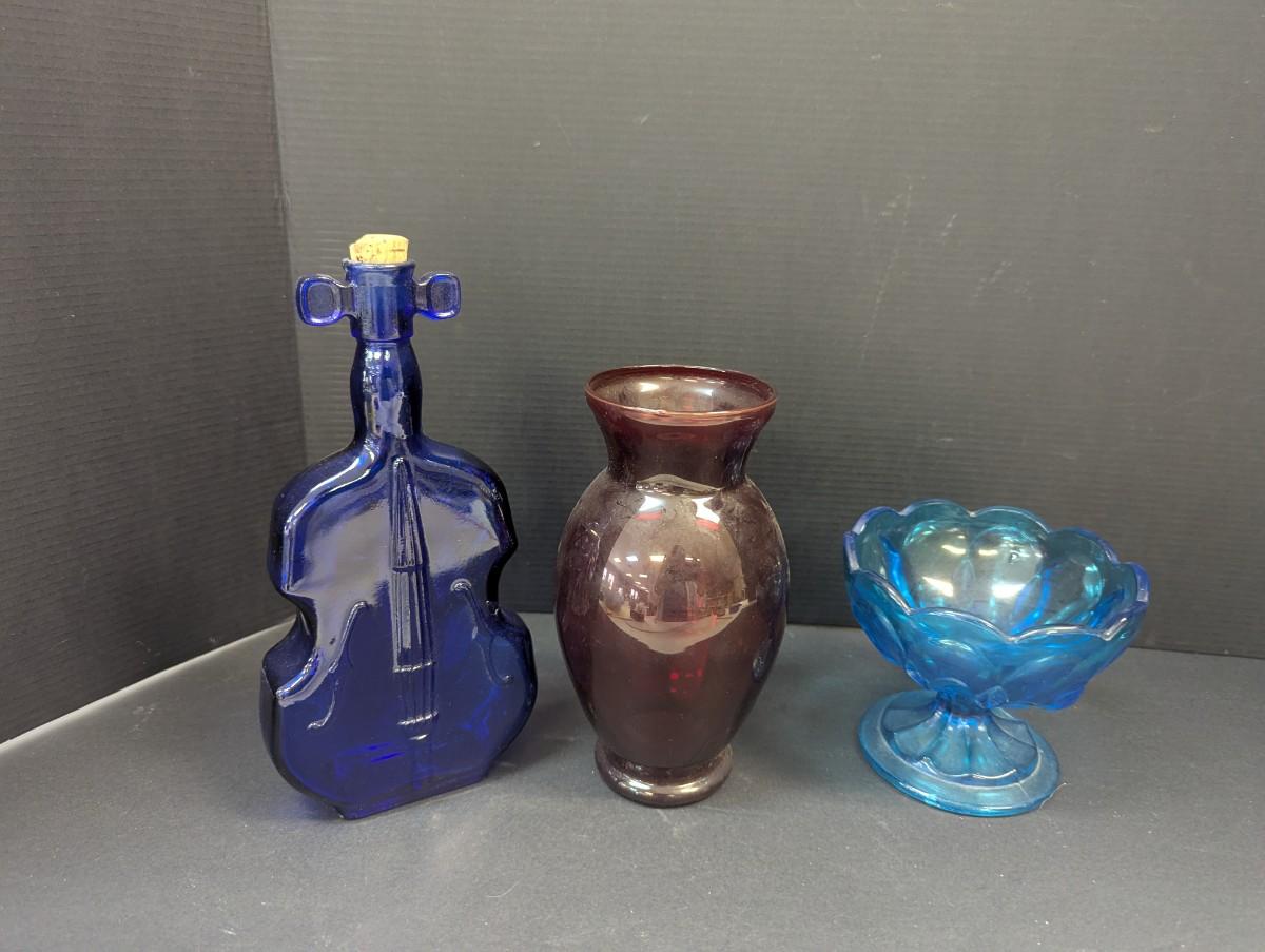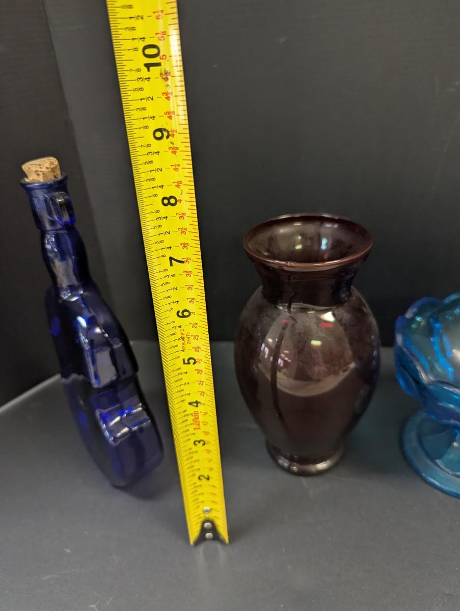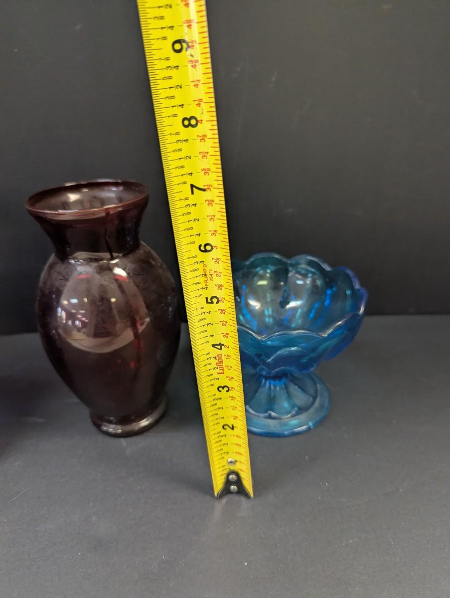 Glass Cobalt Violin Container - Red Vase - Anchor Hocking Blue Compote Candy Dish