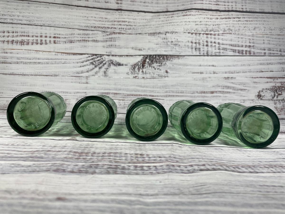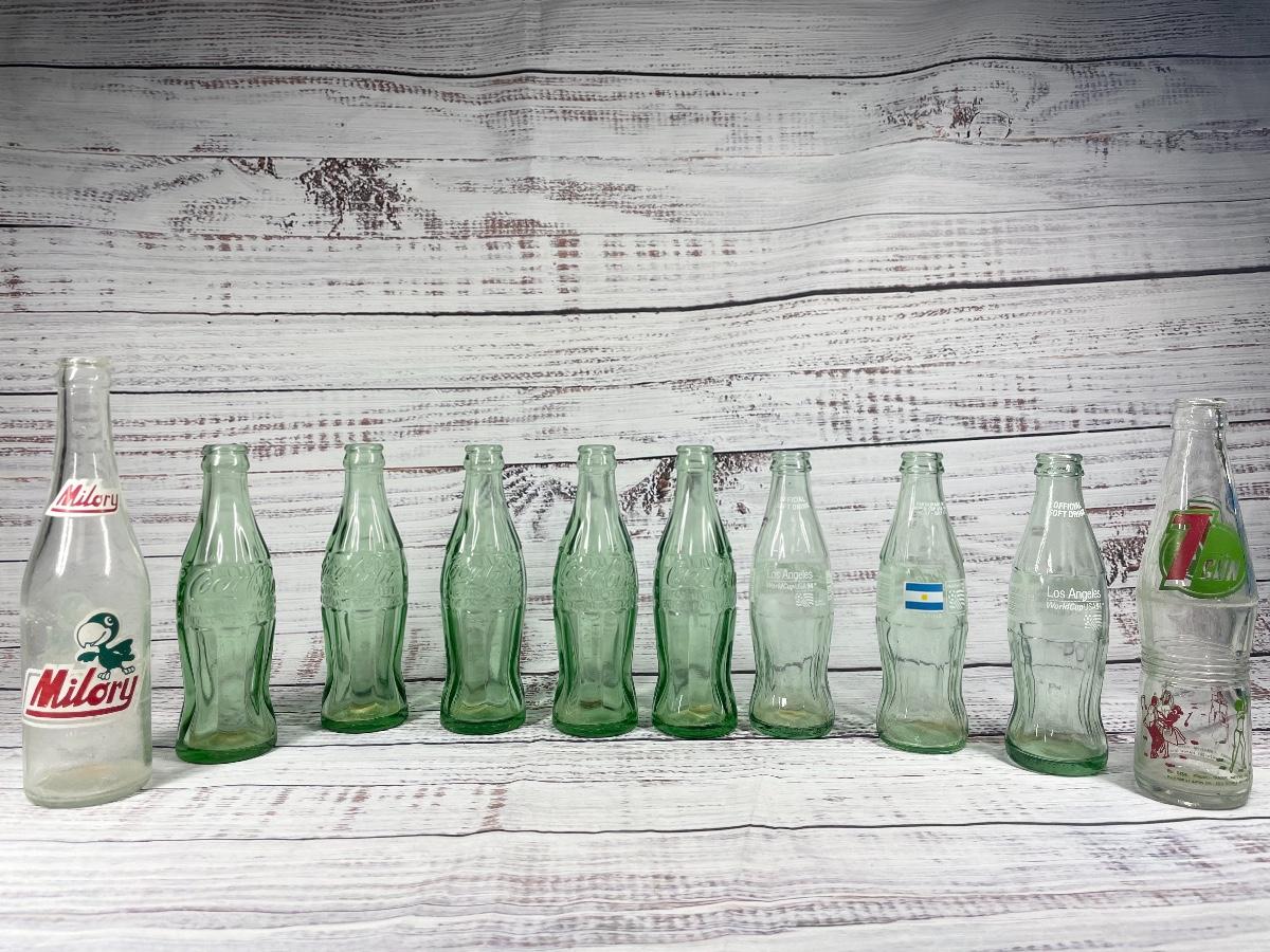 Green Glass Coca-Cola, 7 Gun, & Milory Bottles Collectibles