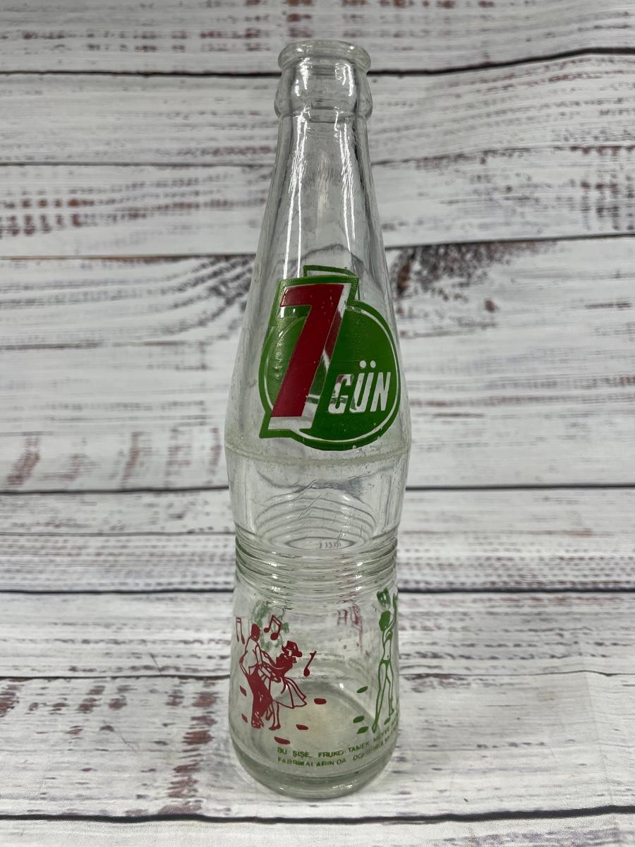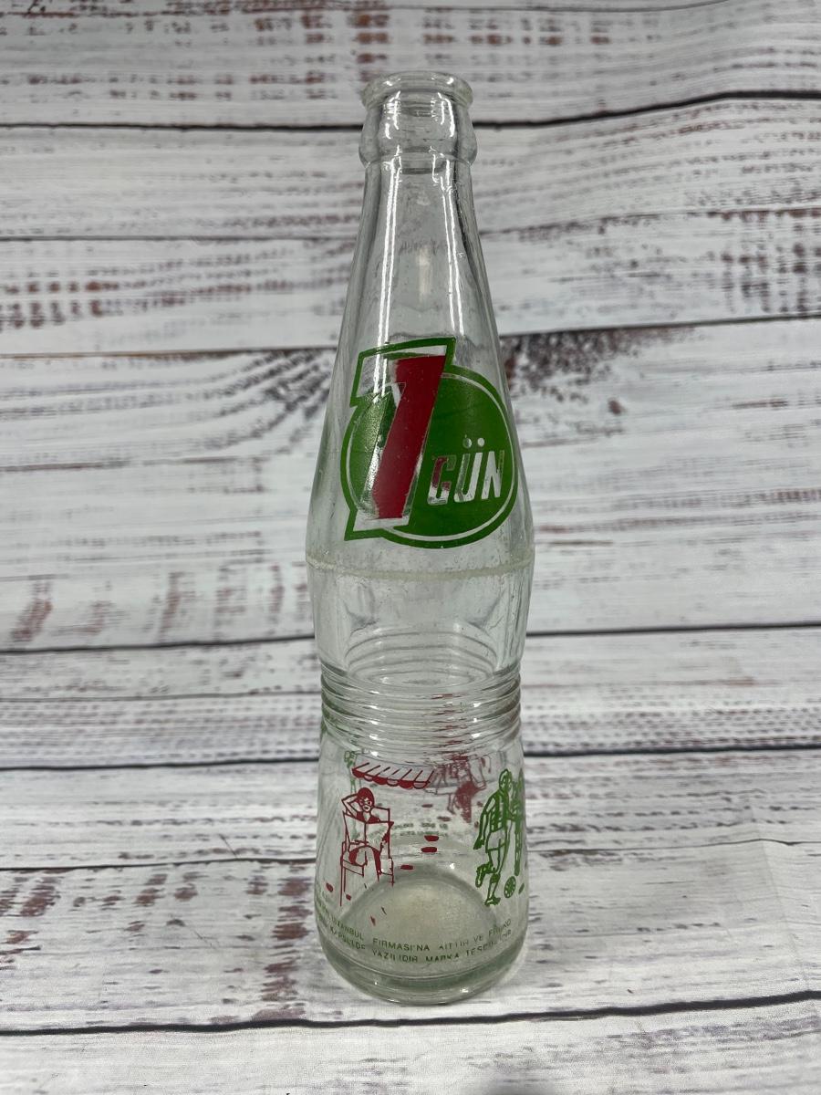 All cups are in a used condition. This set includes: coca-cola bottles, one 7 Gun bottle, and one Milory. All bottles are dusty due to years of collecting.