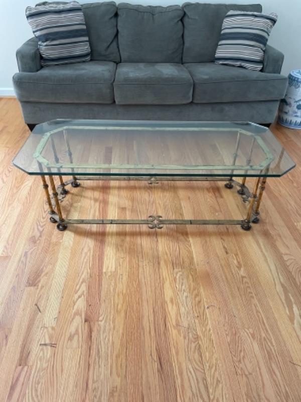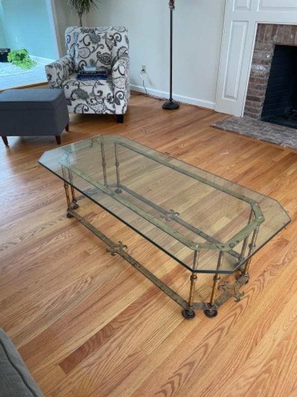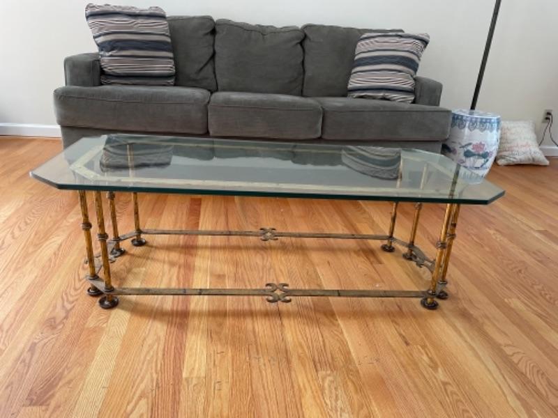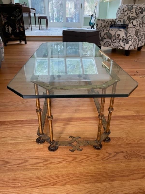 Glass coffee table on brass frame