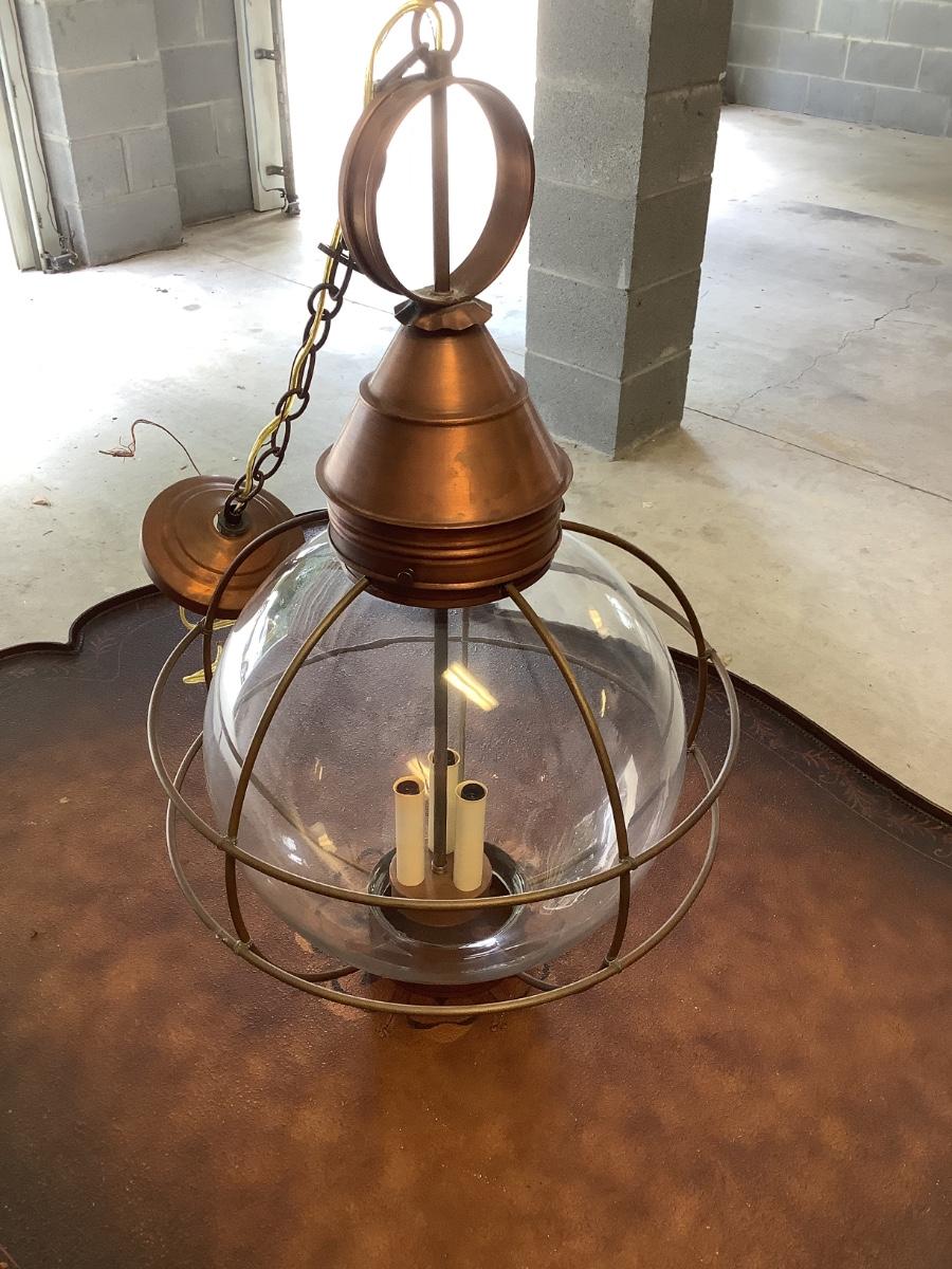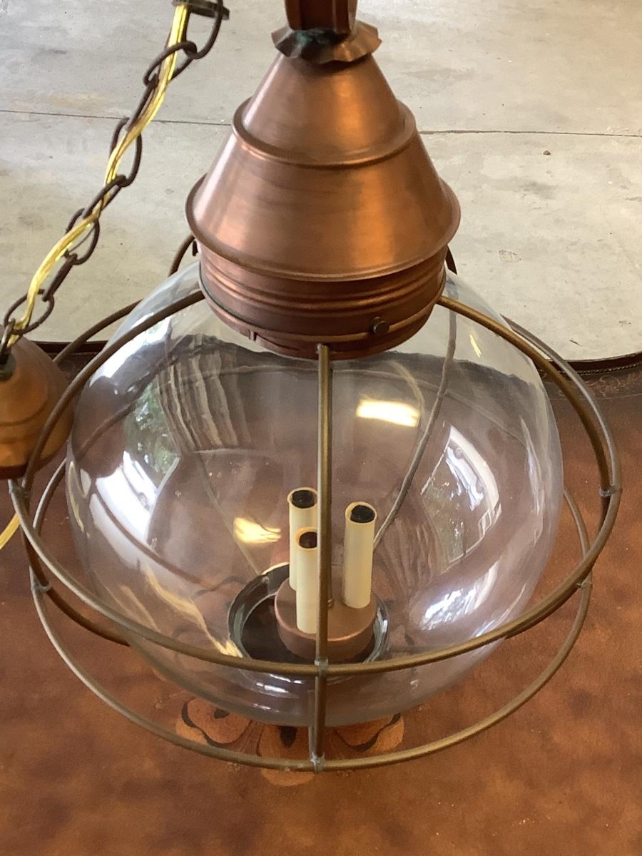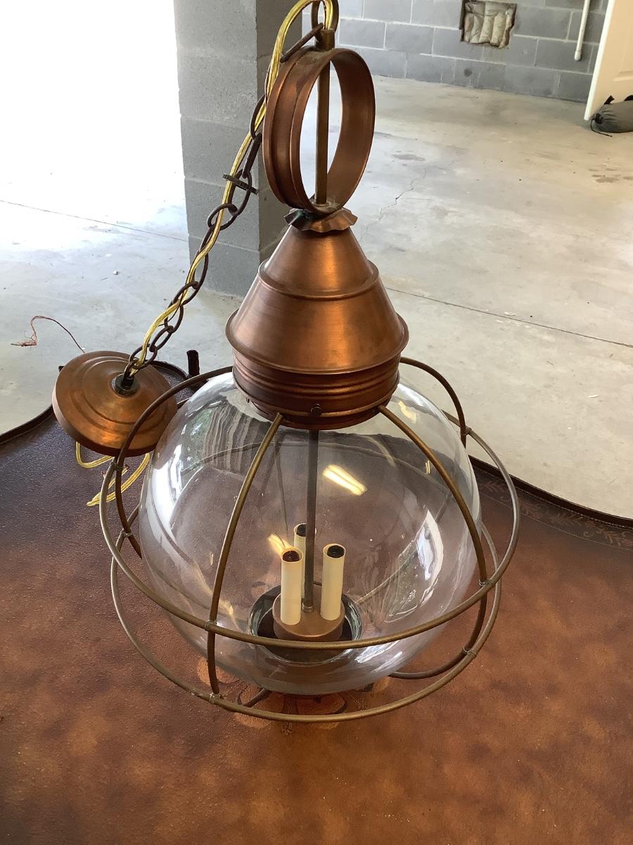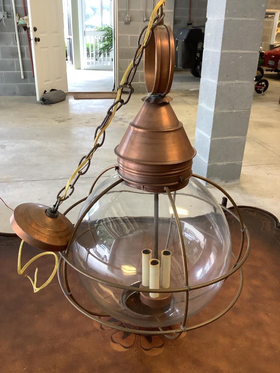 Glass & copper light fixture, round with nautical feel