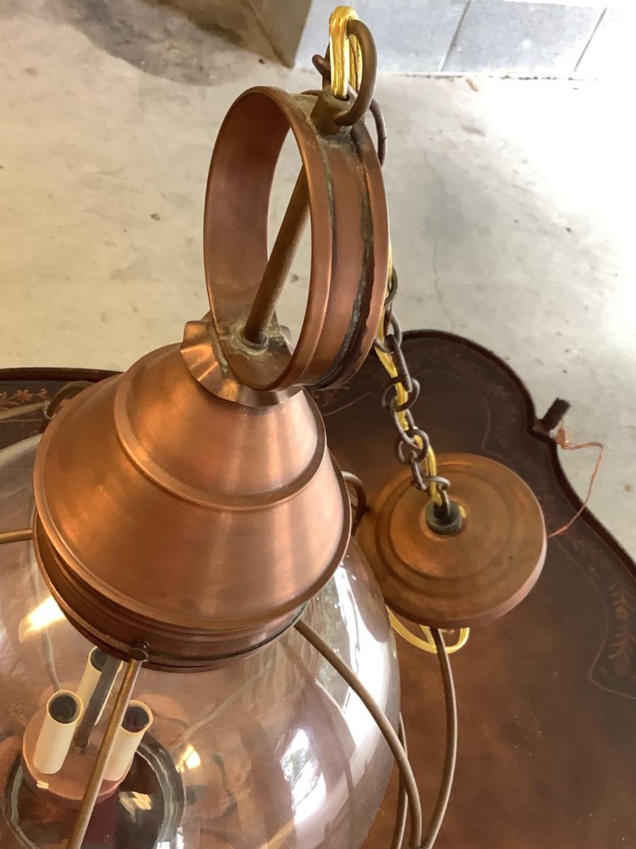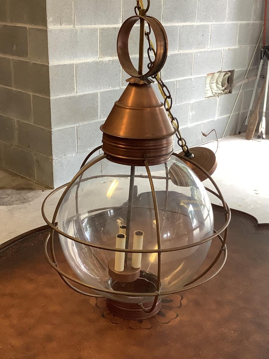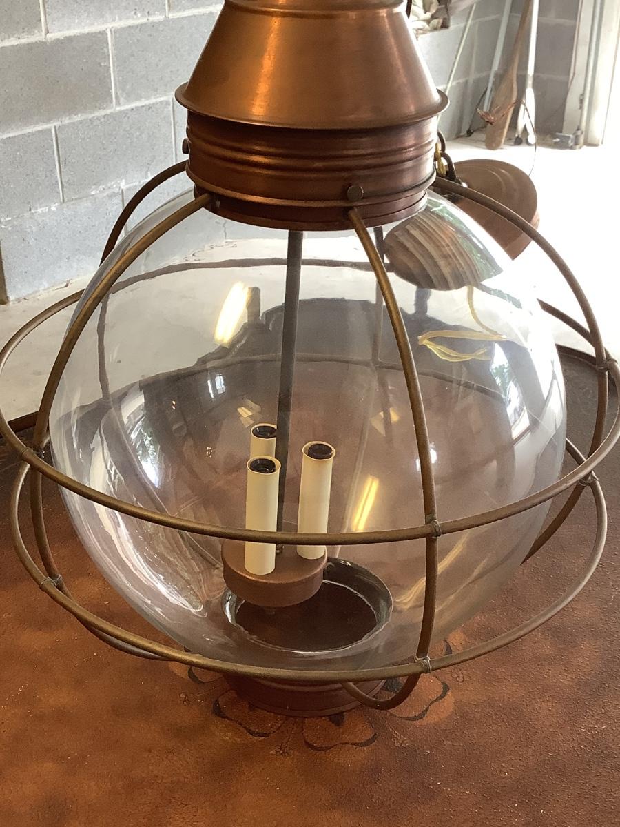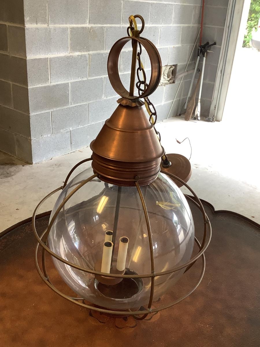 Glass & copper light fixture, round with nautical feel