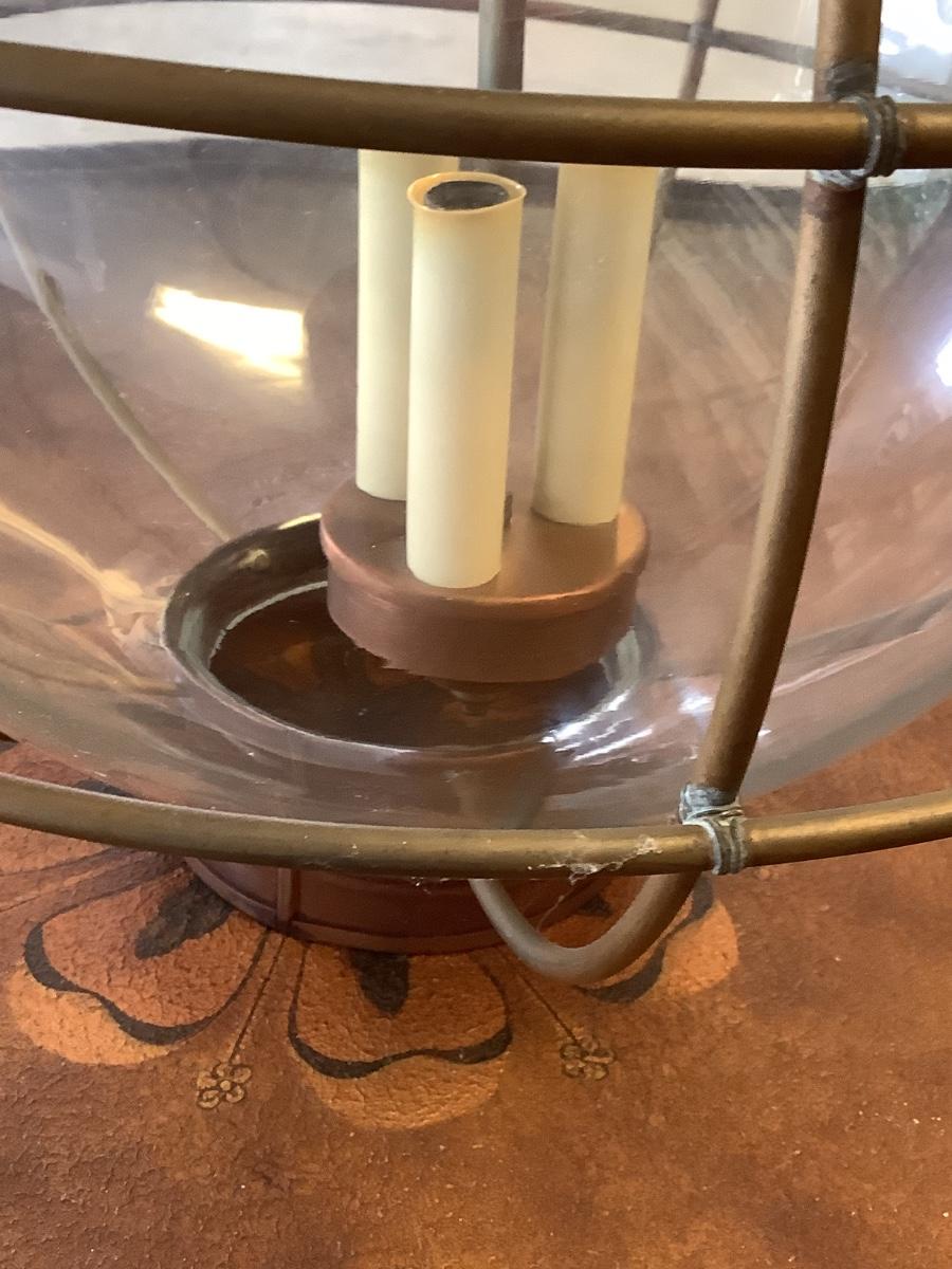 Glass & copper light fixture round with nautical feel