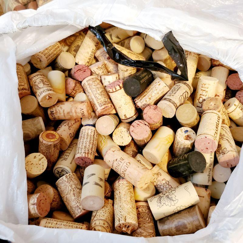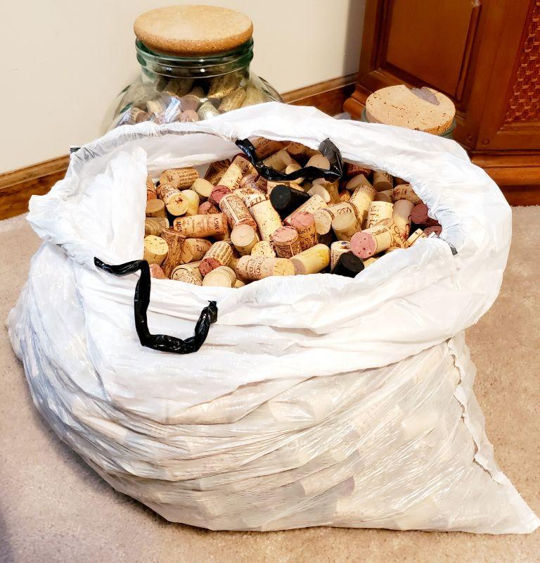 12 in tall & 8.5 in tall plus kitchen size trash bag full of wine corks