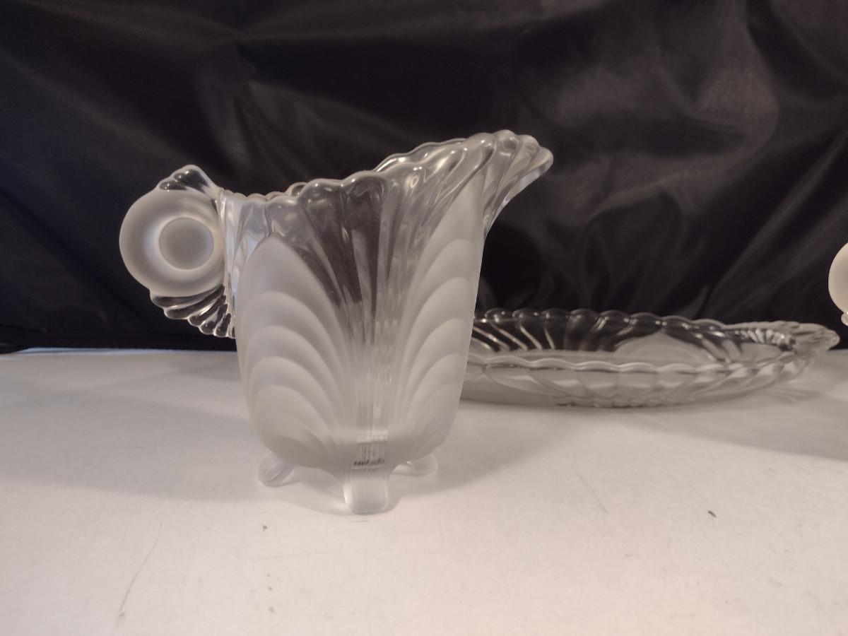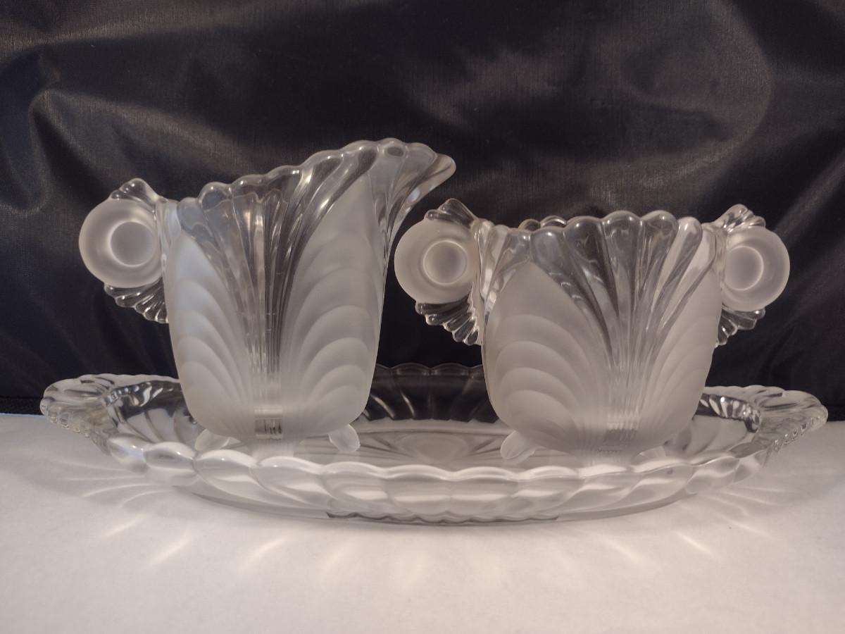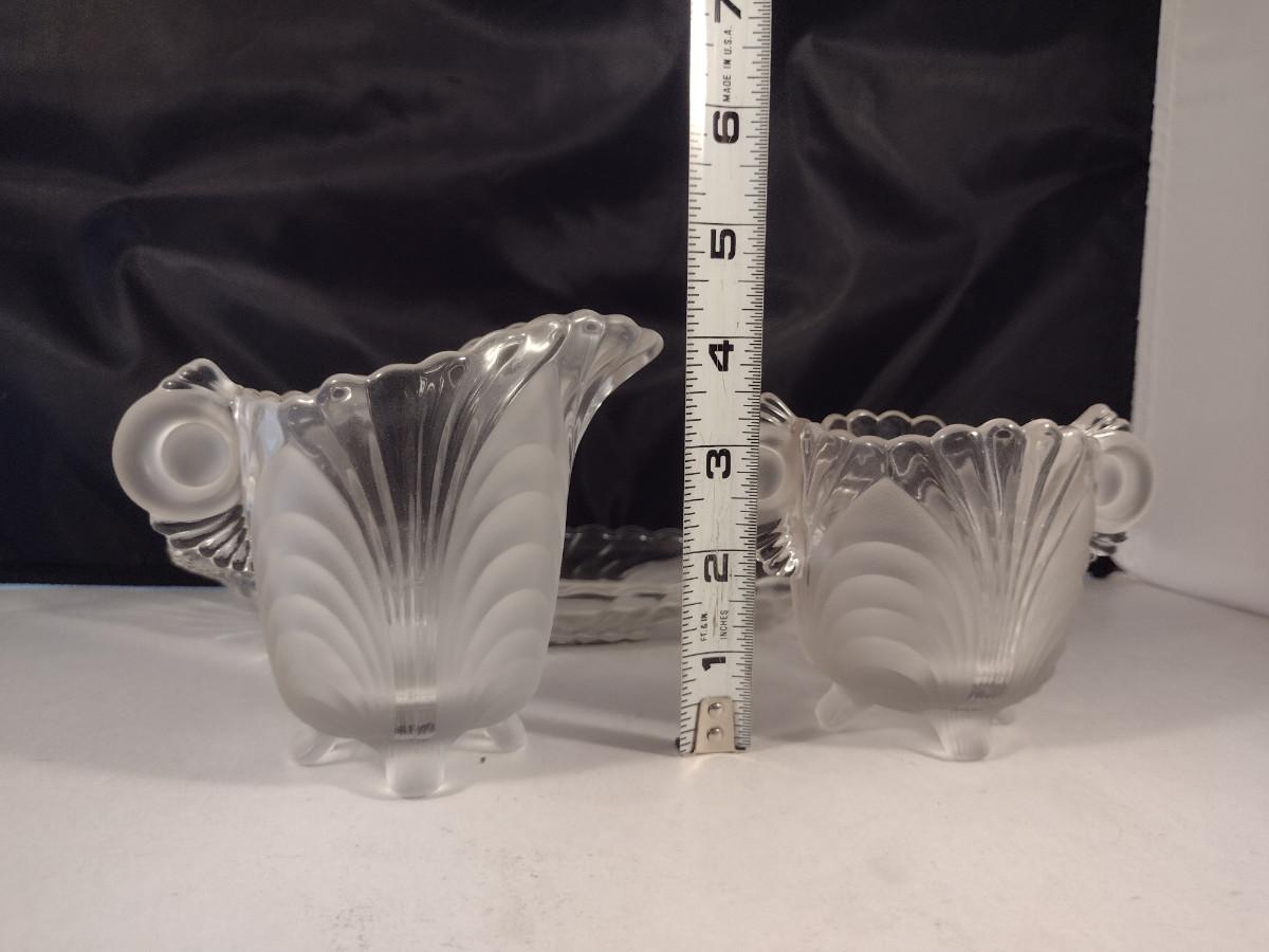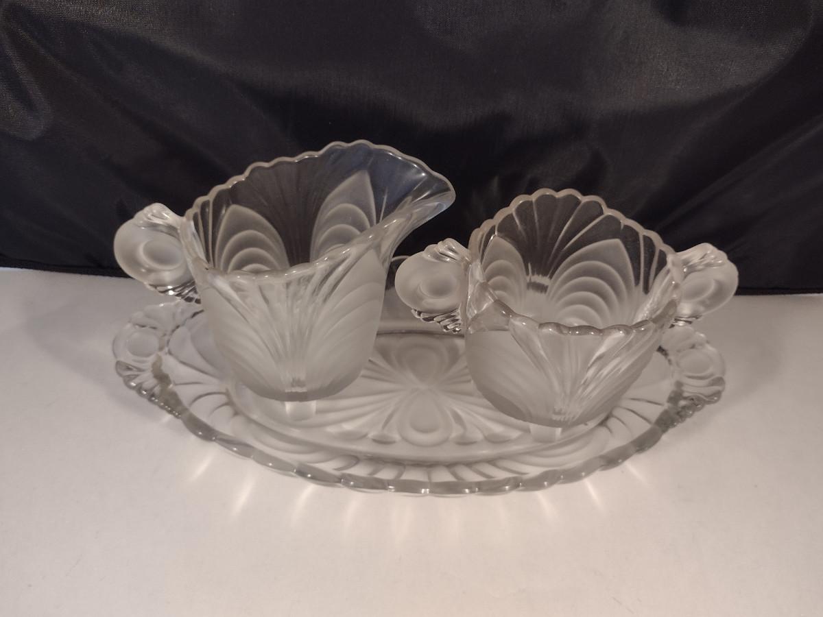 Glass Creamer and Sugar Bowl with Under Plate- Possibly Cambridge Glass