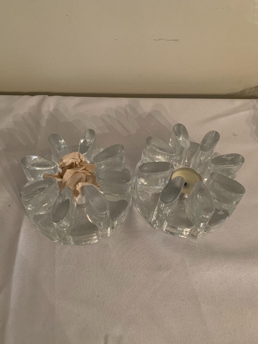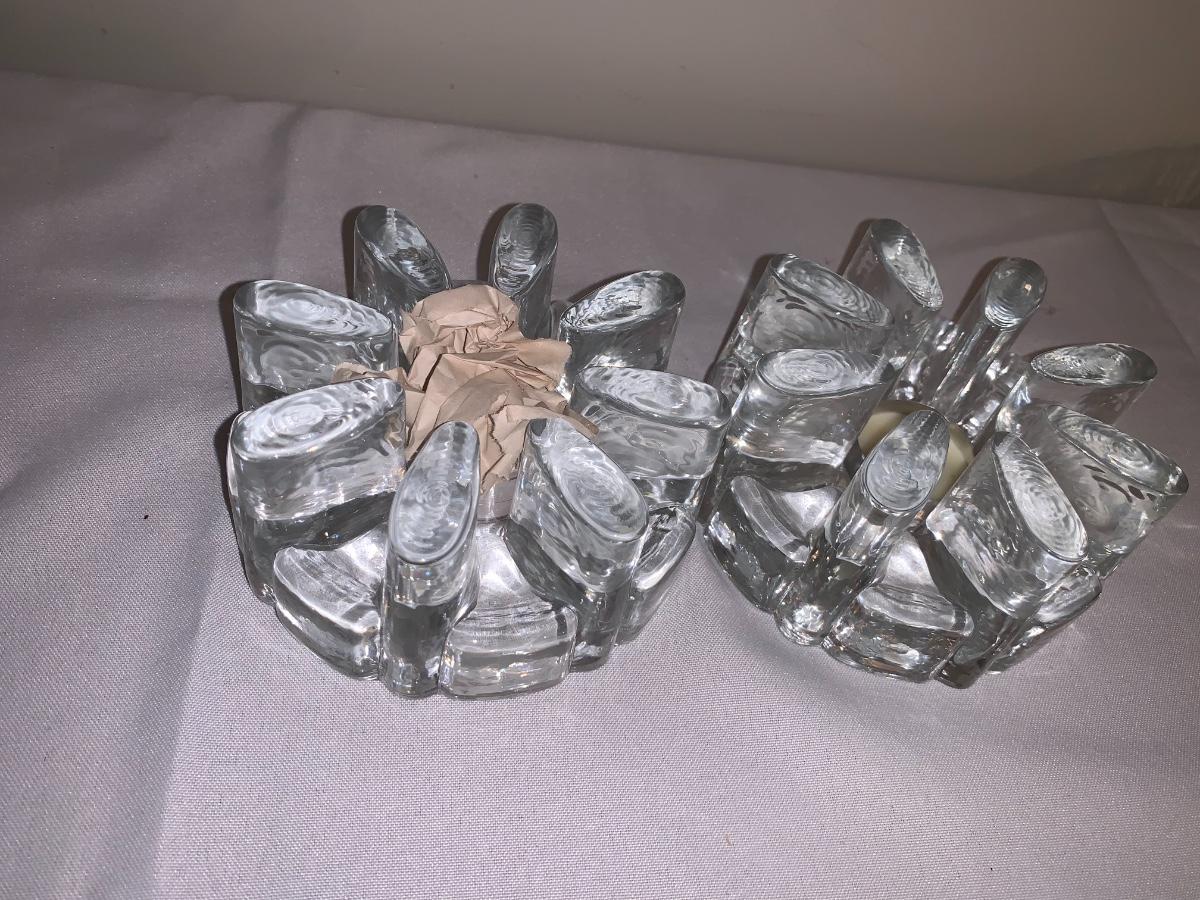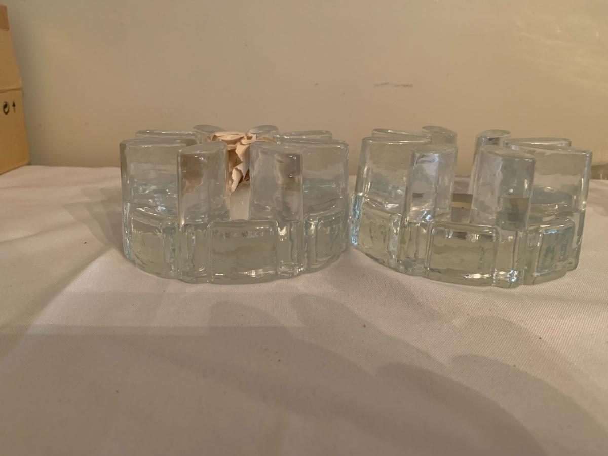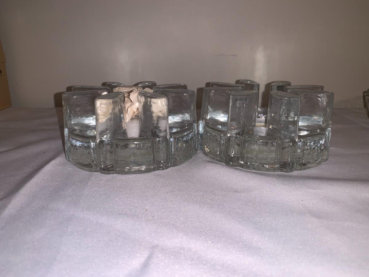 Pair of glass cut votive holders, made in portugal. One used one new.