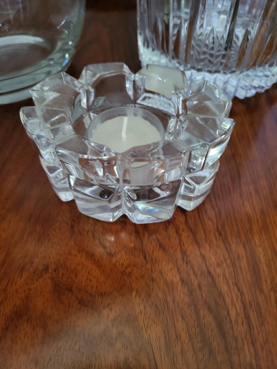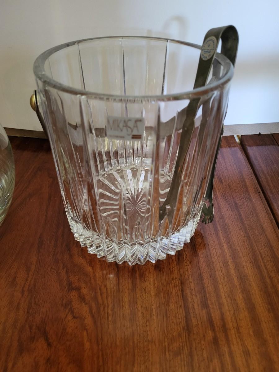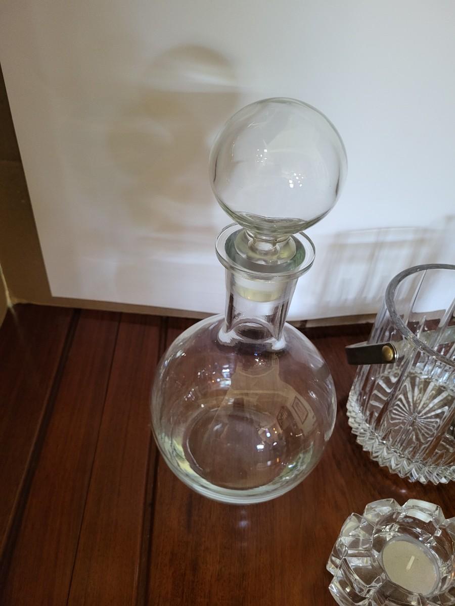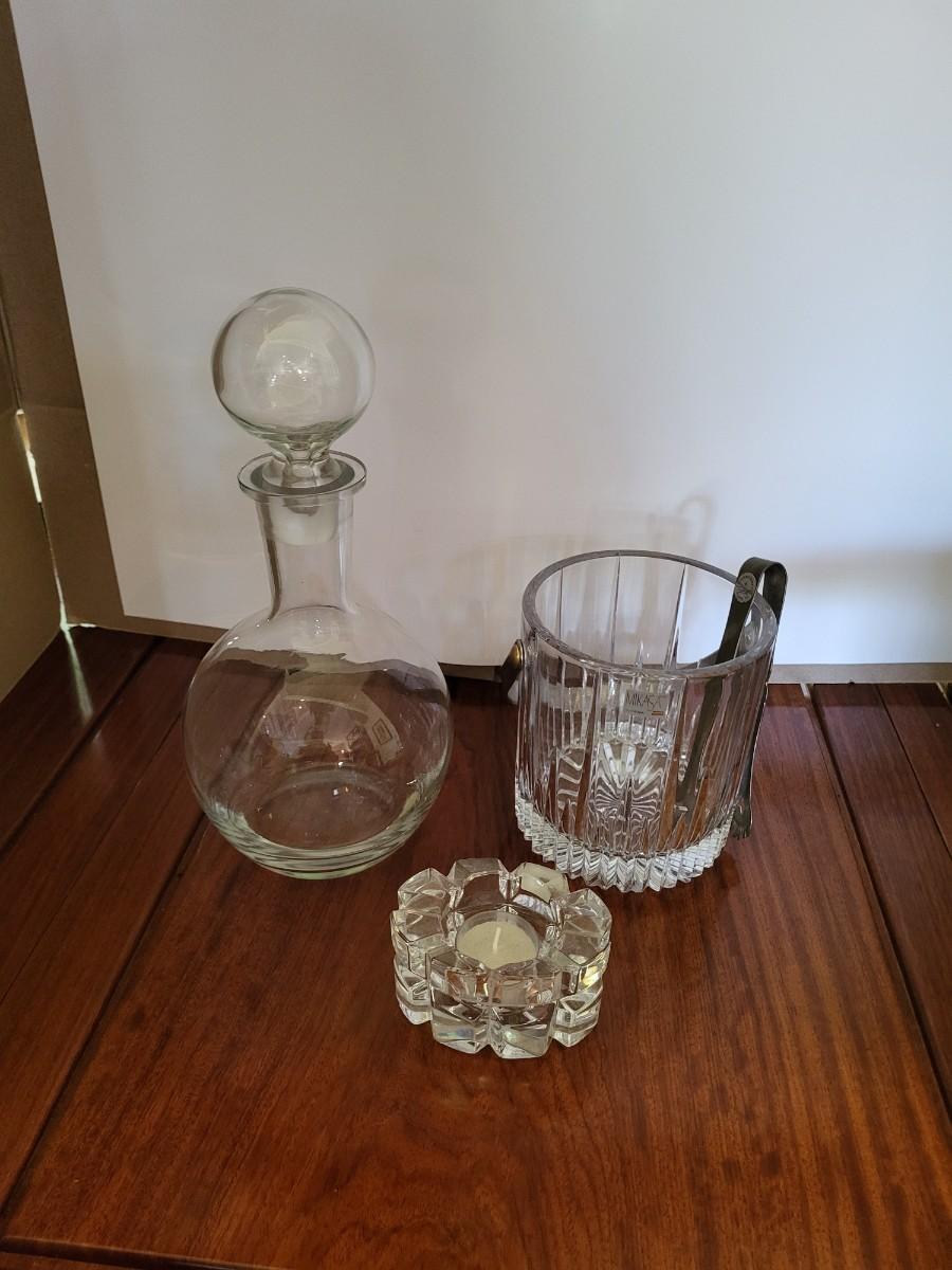 GLASS DECANTER, ICE BUCKET AND VOTIVE CANDLE HOLDER