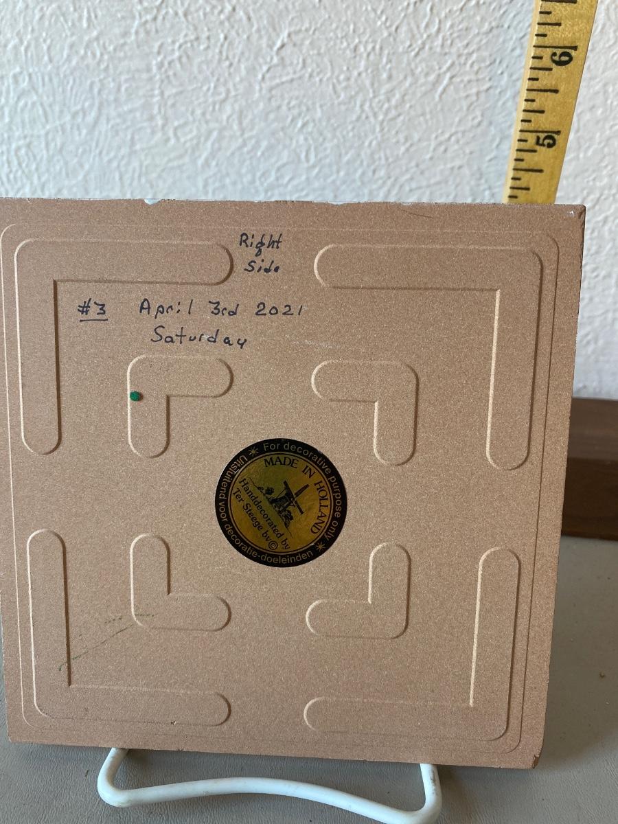 A glass decorative tile with a scene of picking flowers