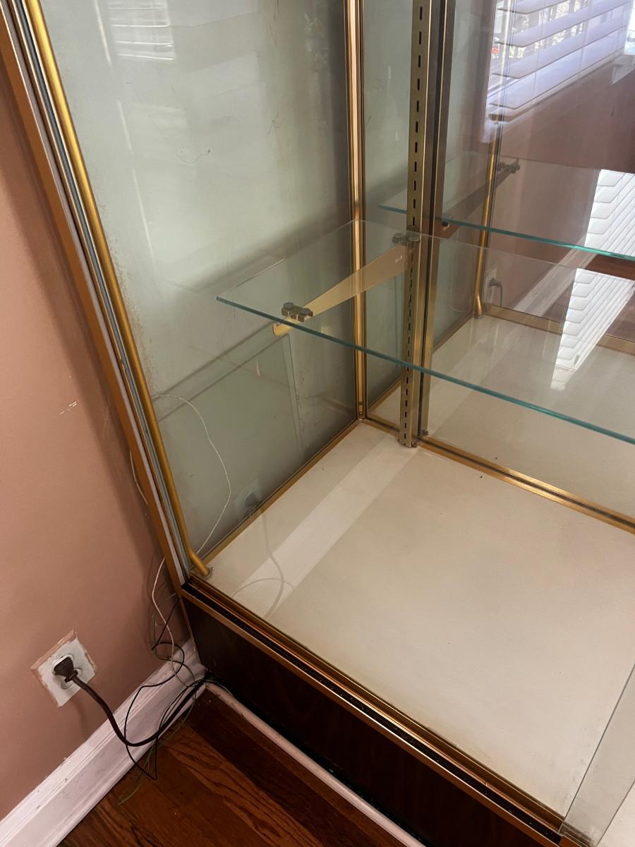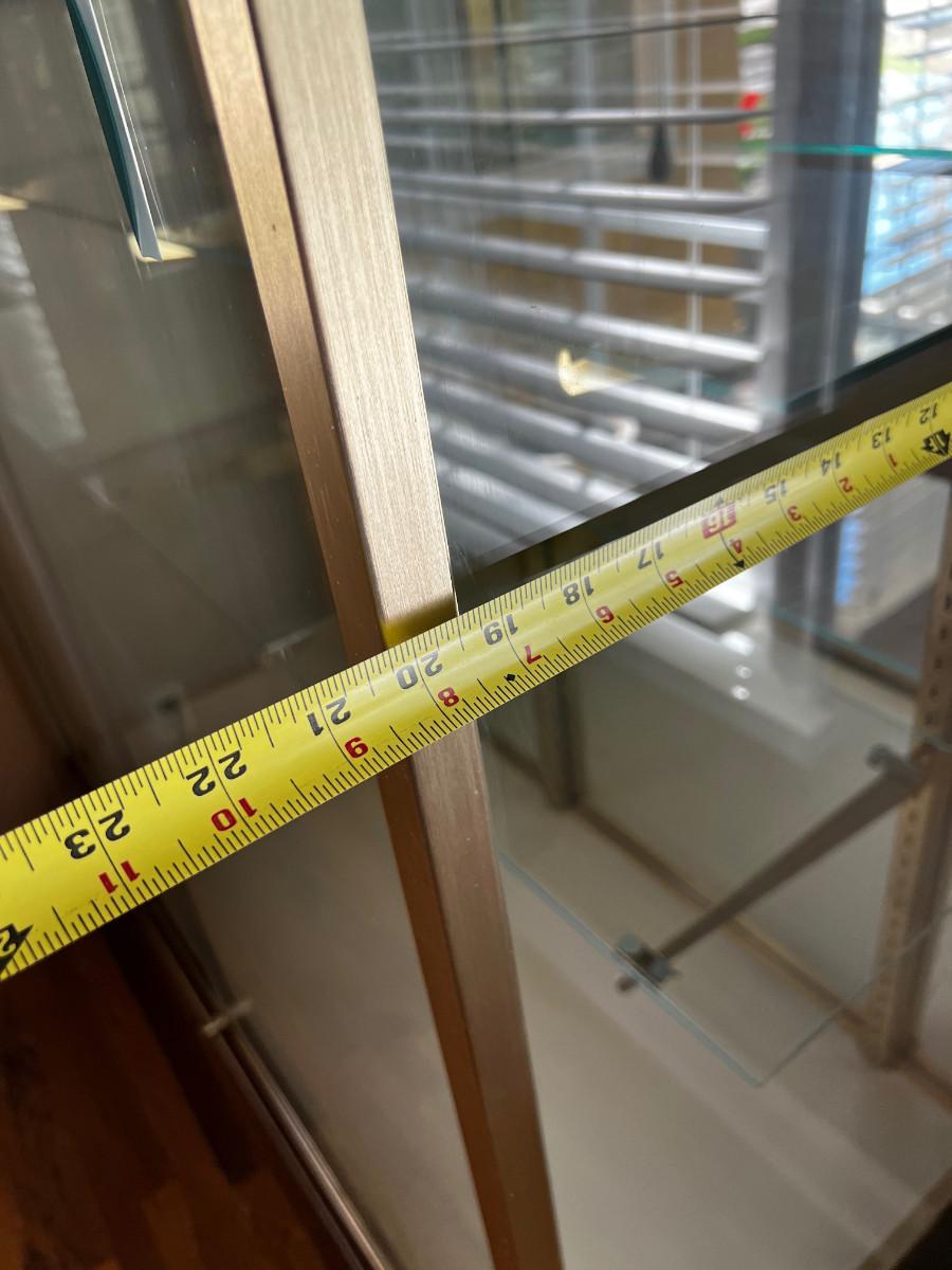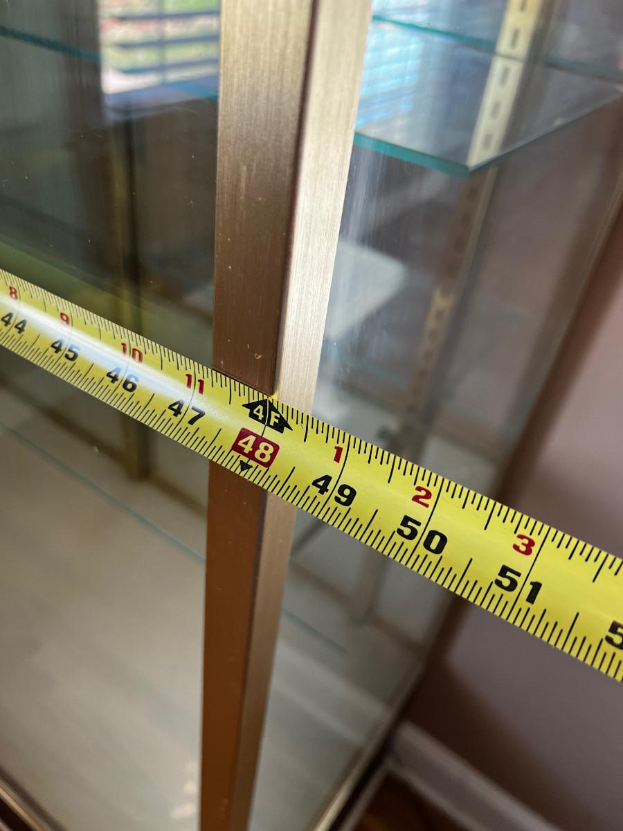 Good condition, has extra shelves. Bring help to load, on the main floor so only needs to go 2 steps. Dimensions 48" X 21" X 85" TALL
