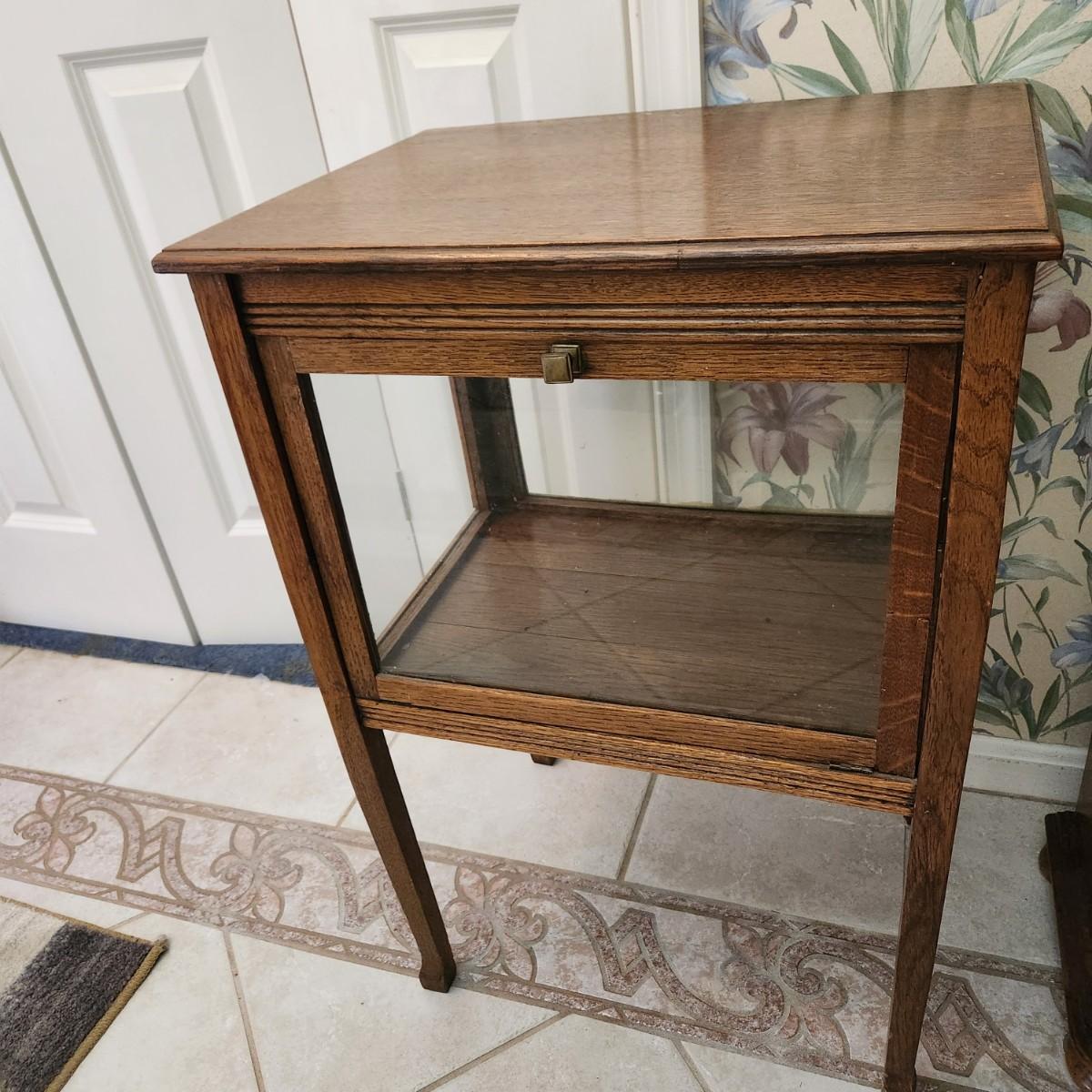 Glass Display Case Table Drop down Door 20x15x29