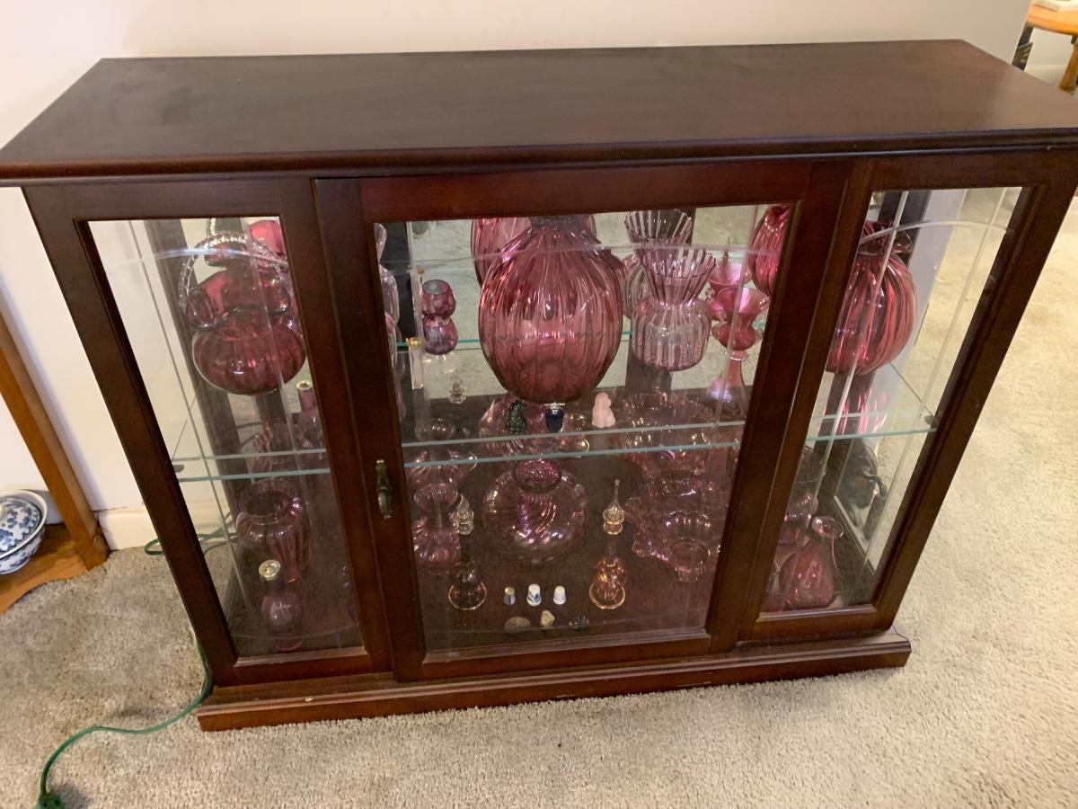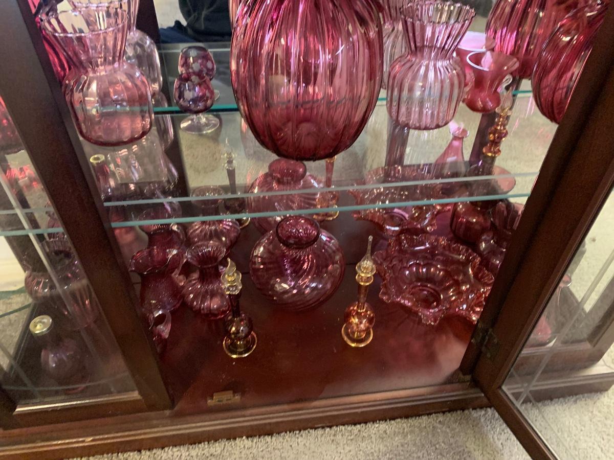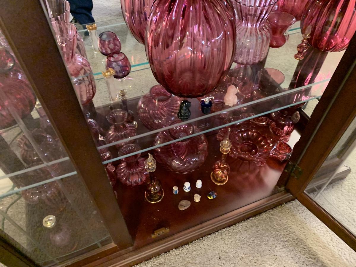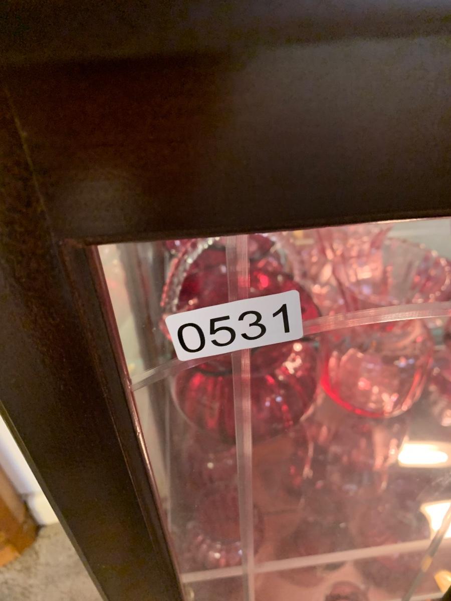 You are bidding on only the glass display case, NOT the glassware shown inside. (The cranberry glass is for sale separately in lot # 533). Buying as is, as found in the estate. See MANY PHOTOS for content, condition, and measurements. Never a Buyers Premium or Credit Card Fee added. Pick-up is the weekend after the auction ends in Arnold, Maryland just off College Parkway near Annapolis/Severna Park.