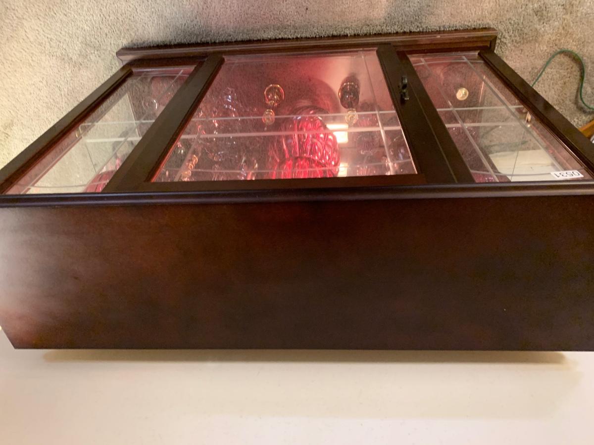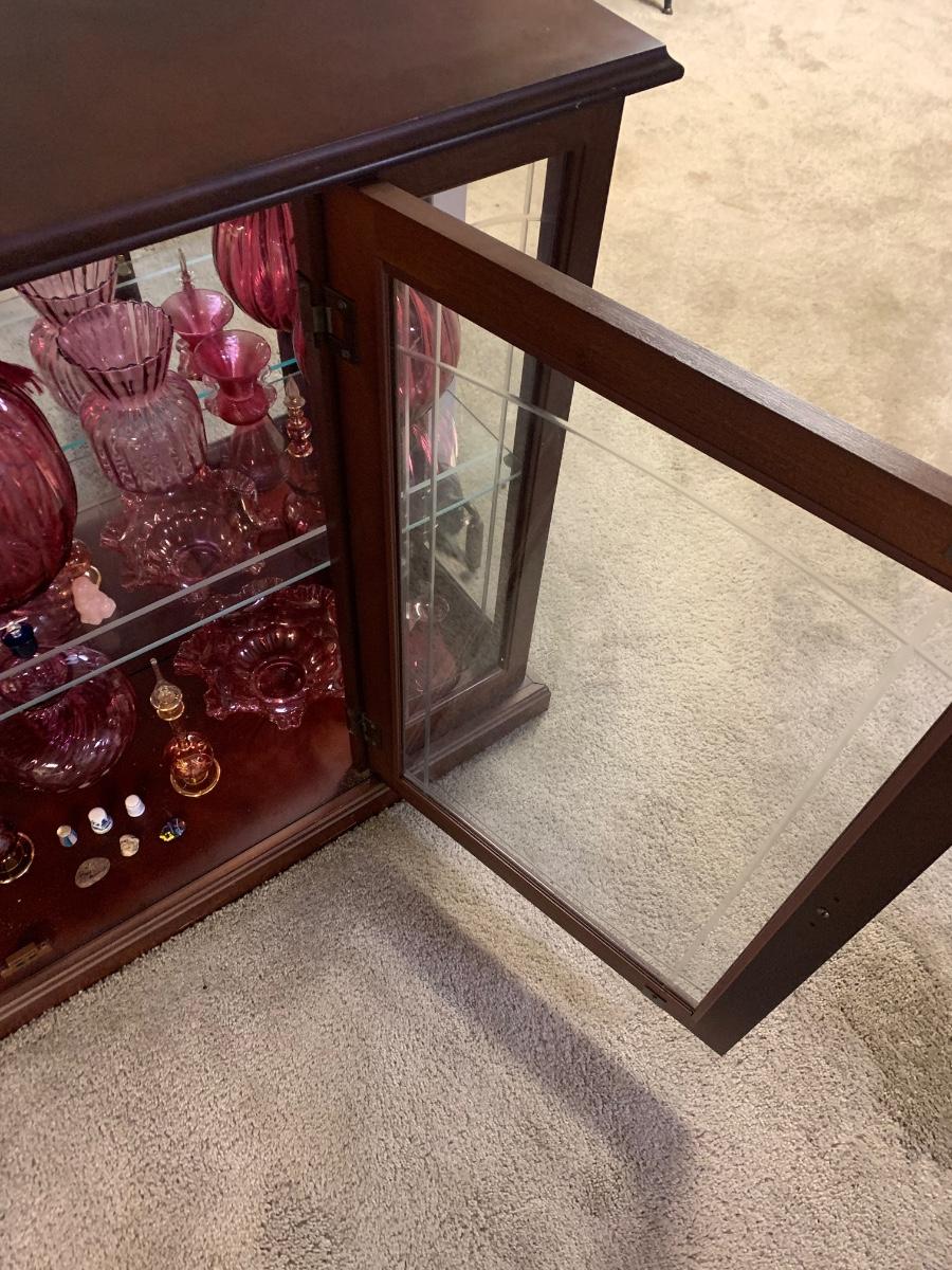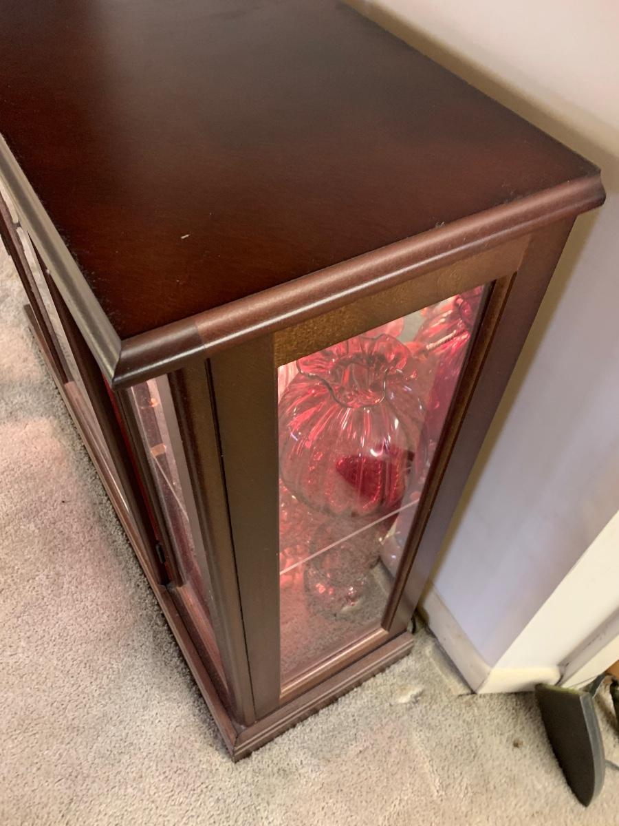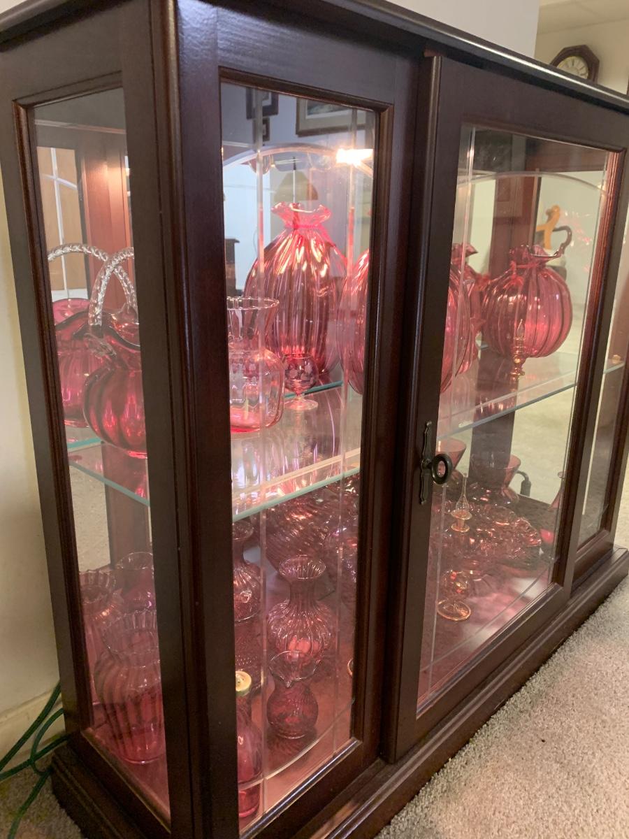 You are bidding on only the glass display case, NOT the glassware shown inside. (The cranberry glass is for sale separately in lot # 533). Buying as is, as found in the estate. See MANY PHOTOS for content, condition, and measurements. Never a Buyers Premium or Credit Card Fee added. Pick-up is the weekend after the auction ends in Arnold, Maryland just off College Parkway near Annapolis/Severna Park.