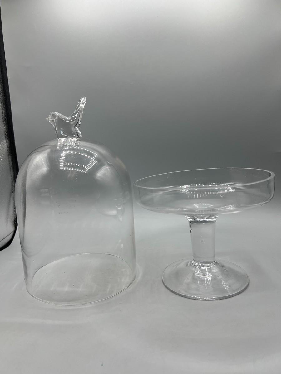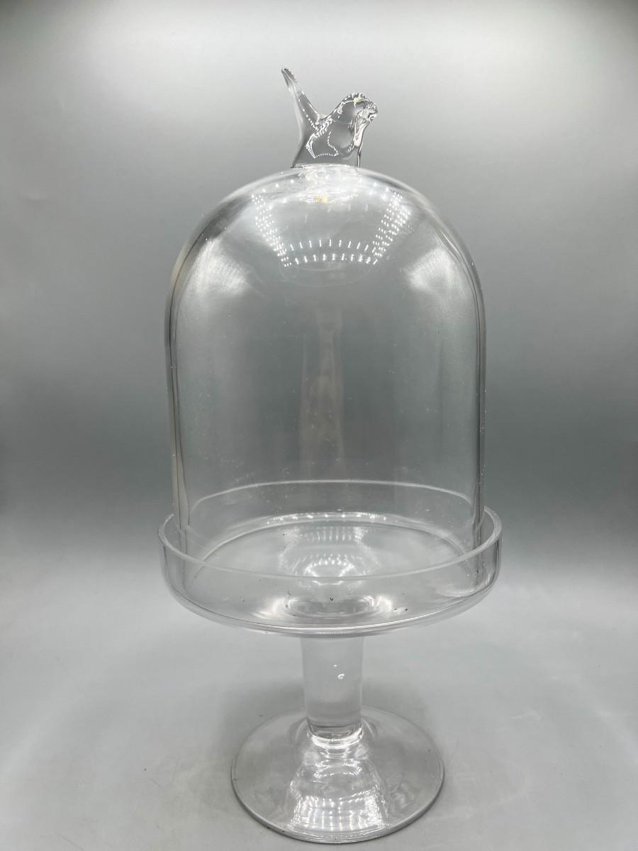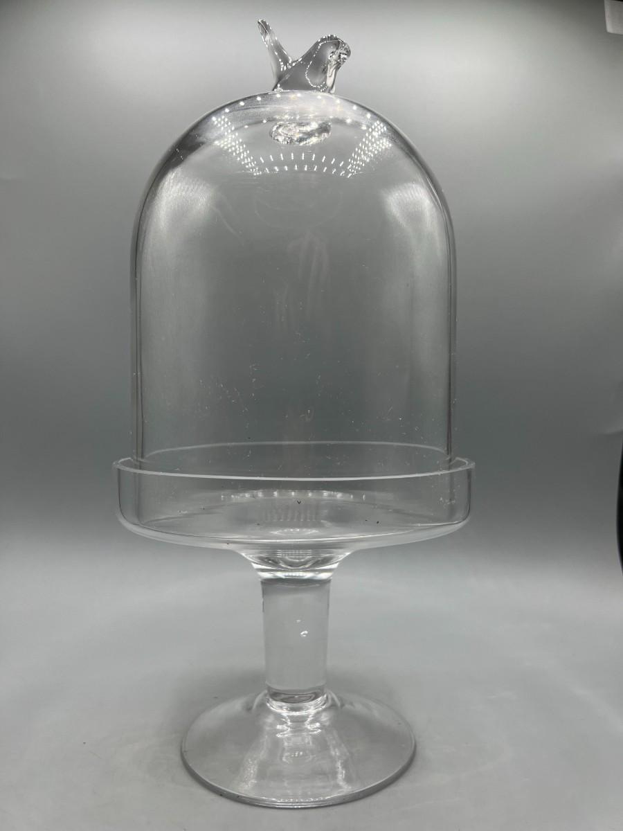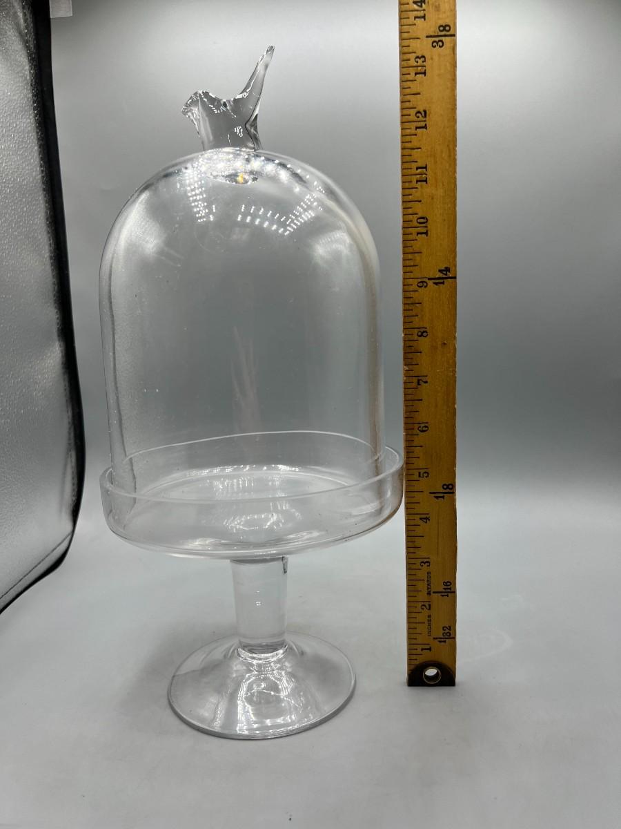 Glass Display Pedestal Stand with Baby Bird Handle Dome Lid