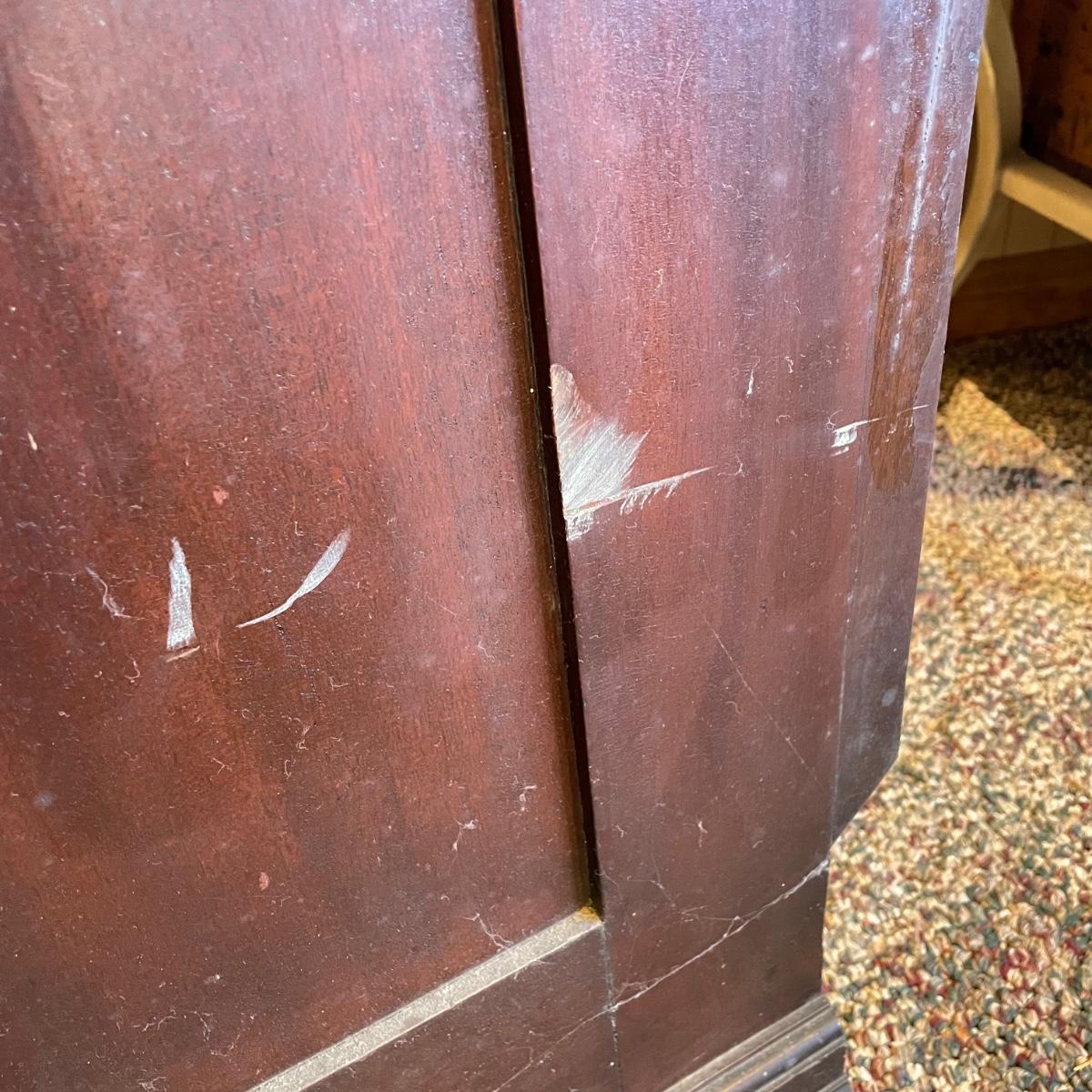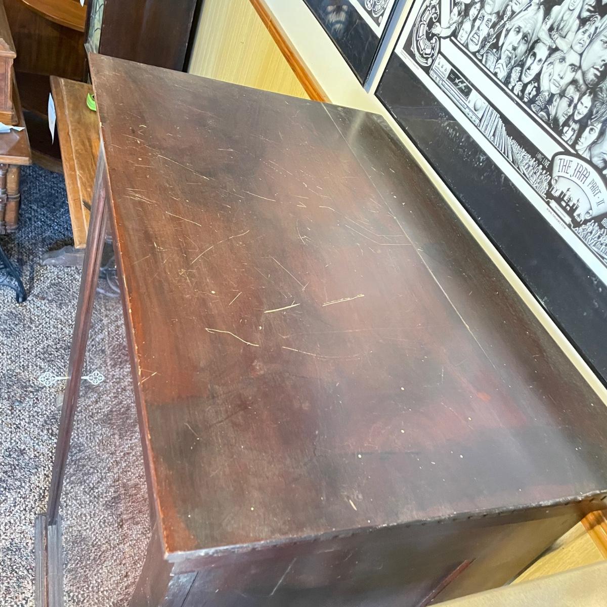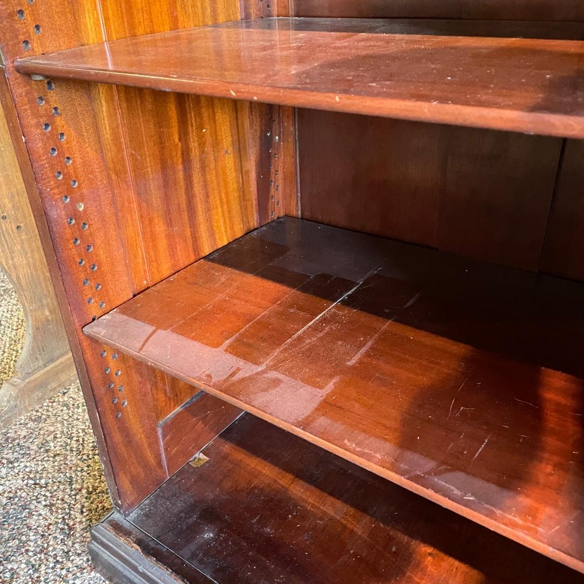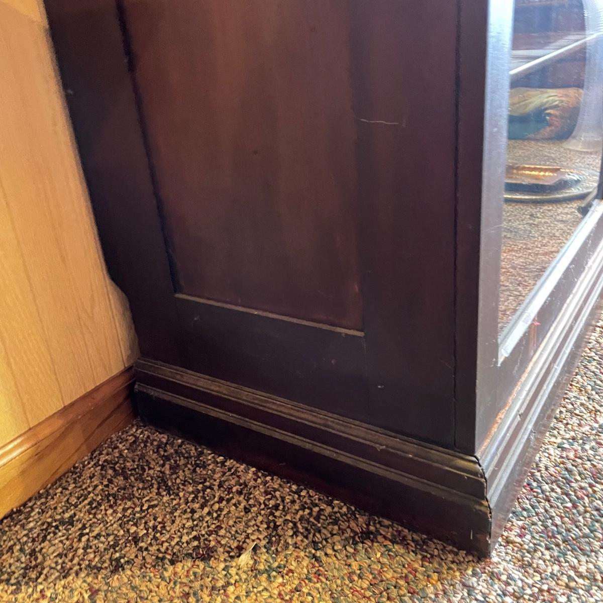 VINTAGE MAHOGANY bookcase with single glass door and key. The key locks the case and appears to be nickel. Three shelves can be repositioned. Bookcase measures approximately 30” x 20” x 54”. Superficial scratches and nicks are found, but piece is in great shape overall. See images. Local pick up only.