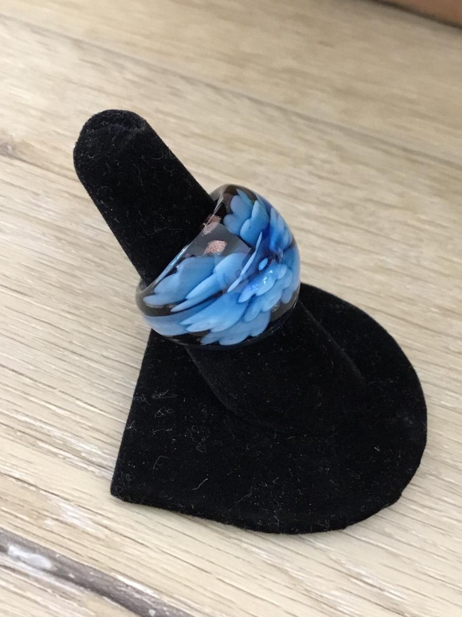 Glass fashion blue flower ring