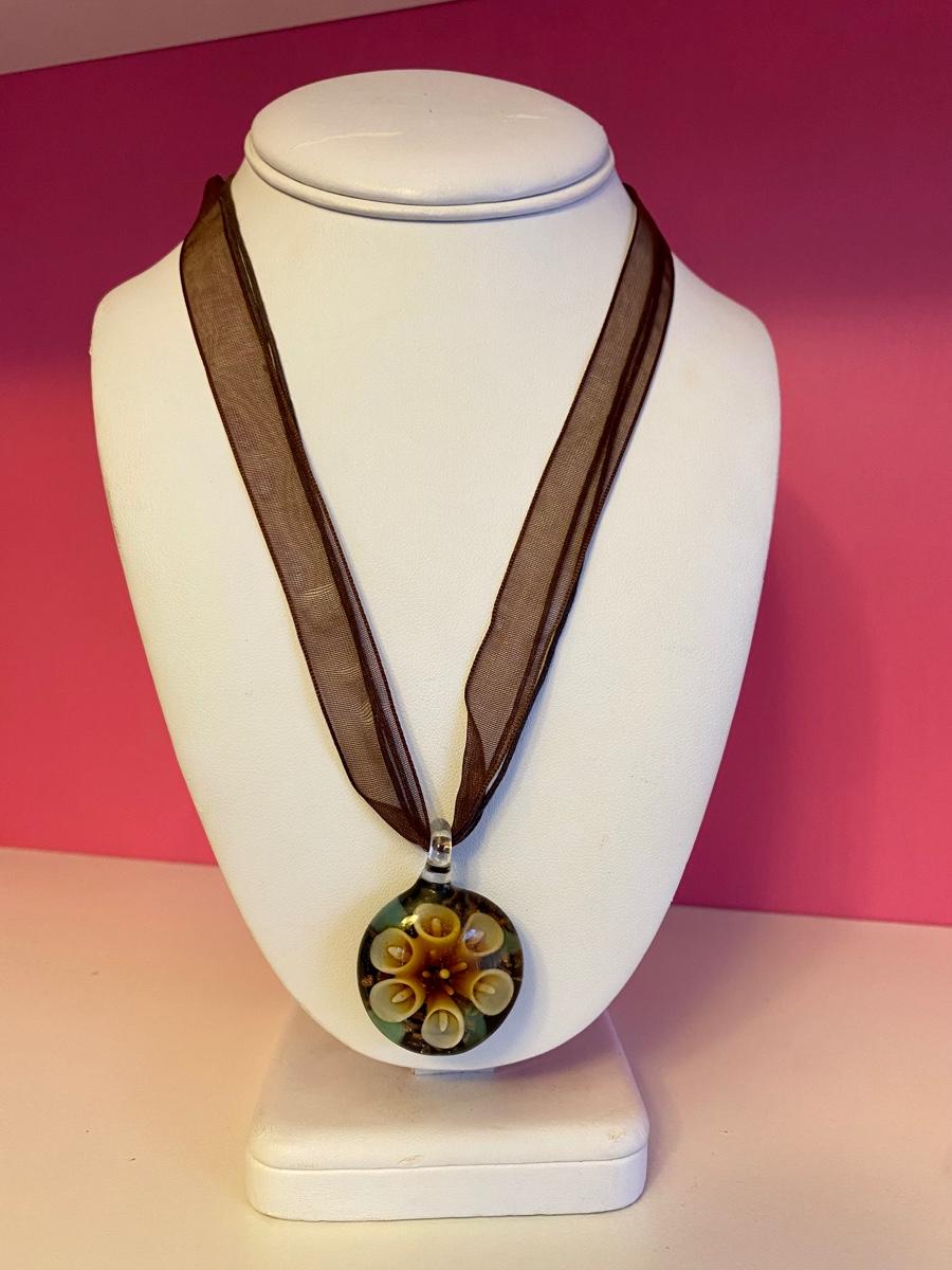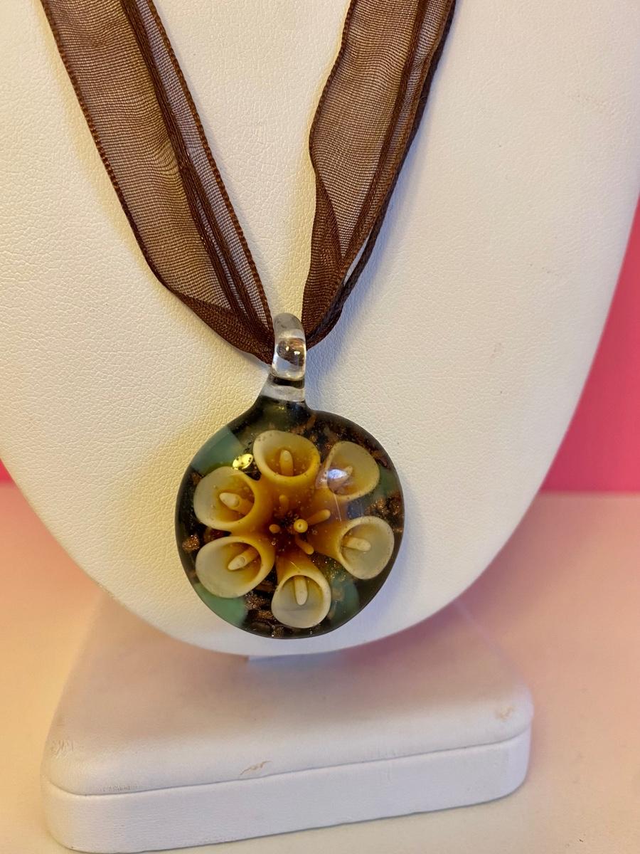 Glass Flower Pendant Necklace