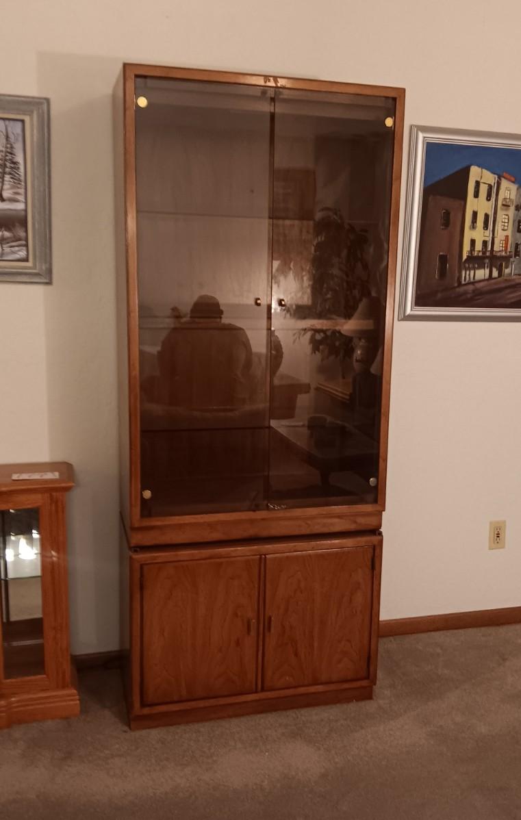 GLASS FRONT DISPLAY CABINET WITH STORAGE ON THE BOTTOM