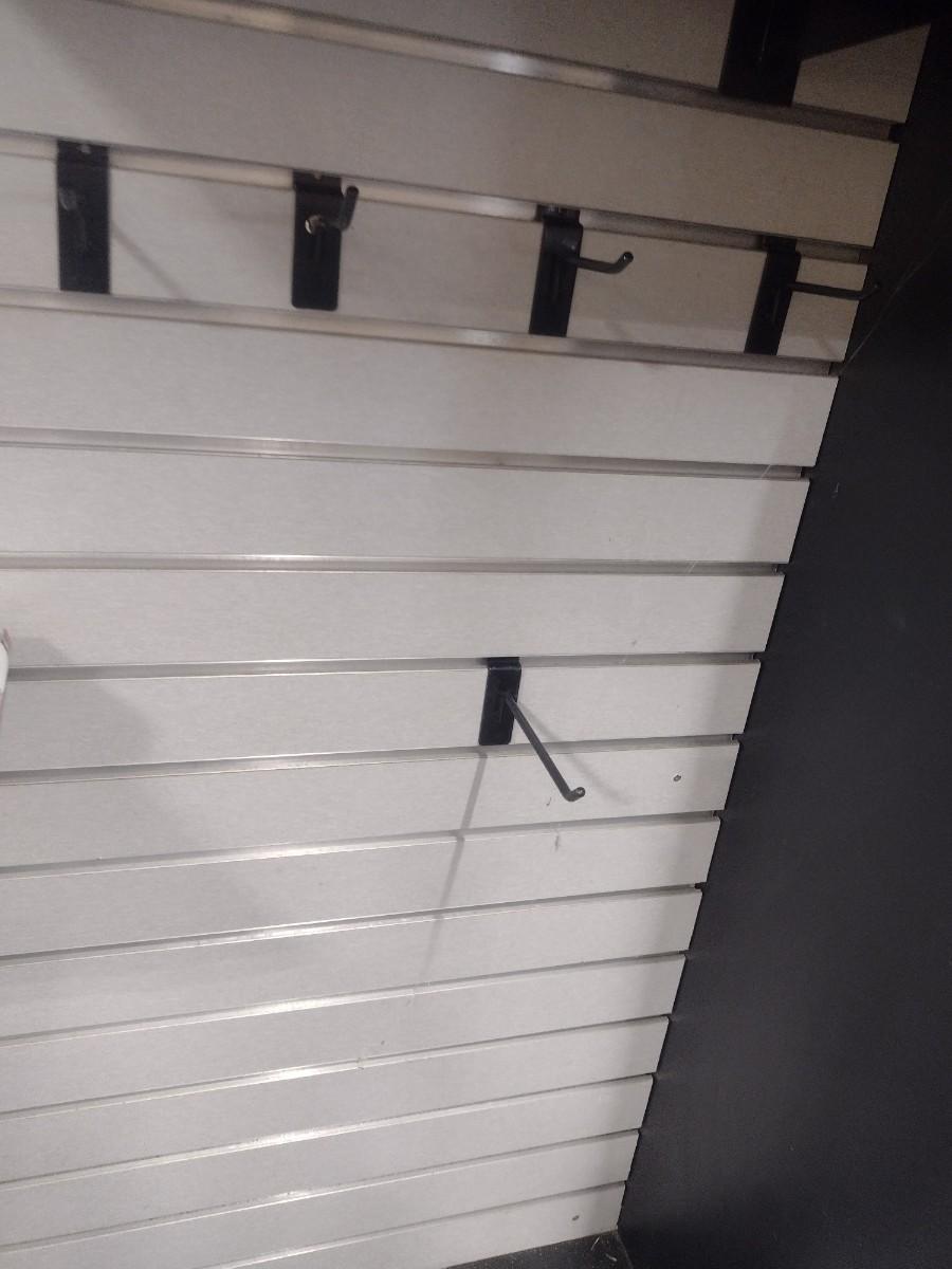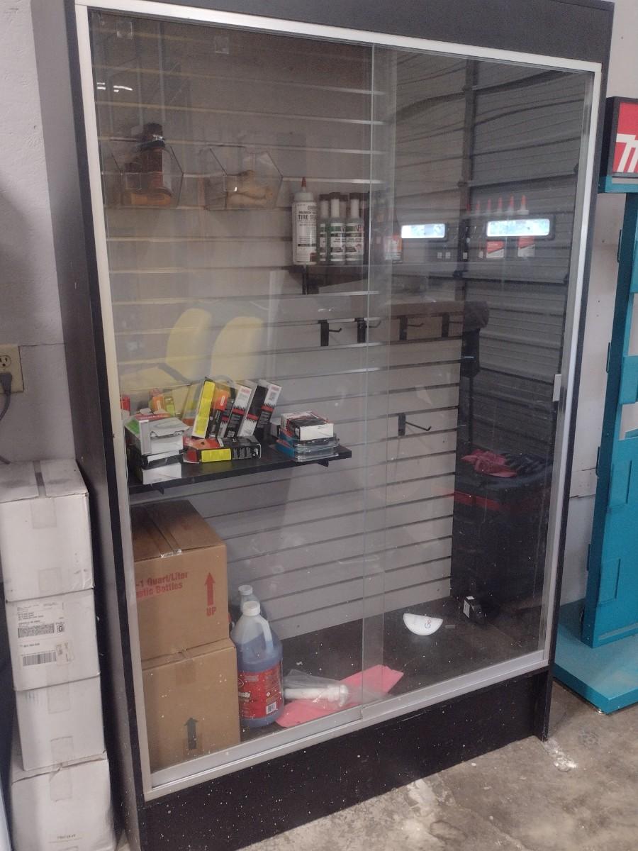 Glass Front Display Case with Slat Wood System for Shelving and Hooks (No Contents)