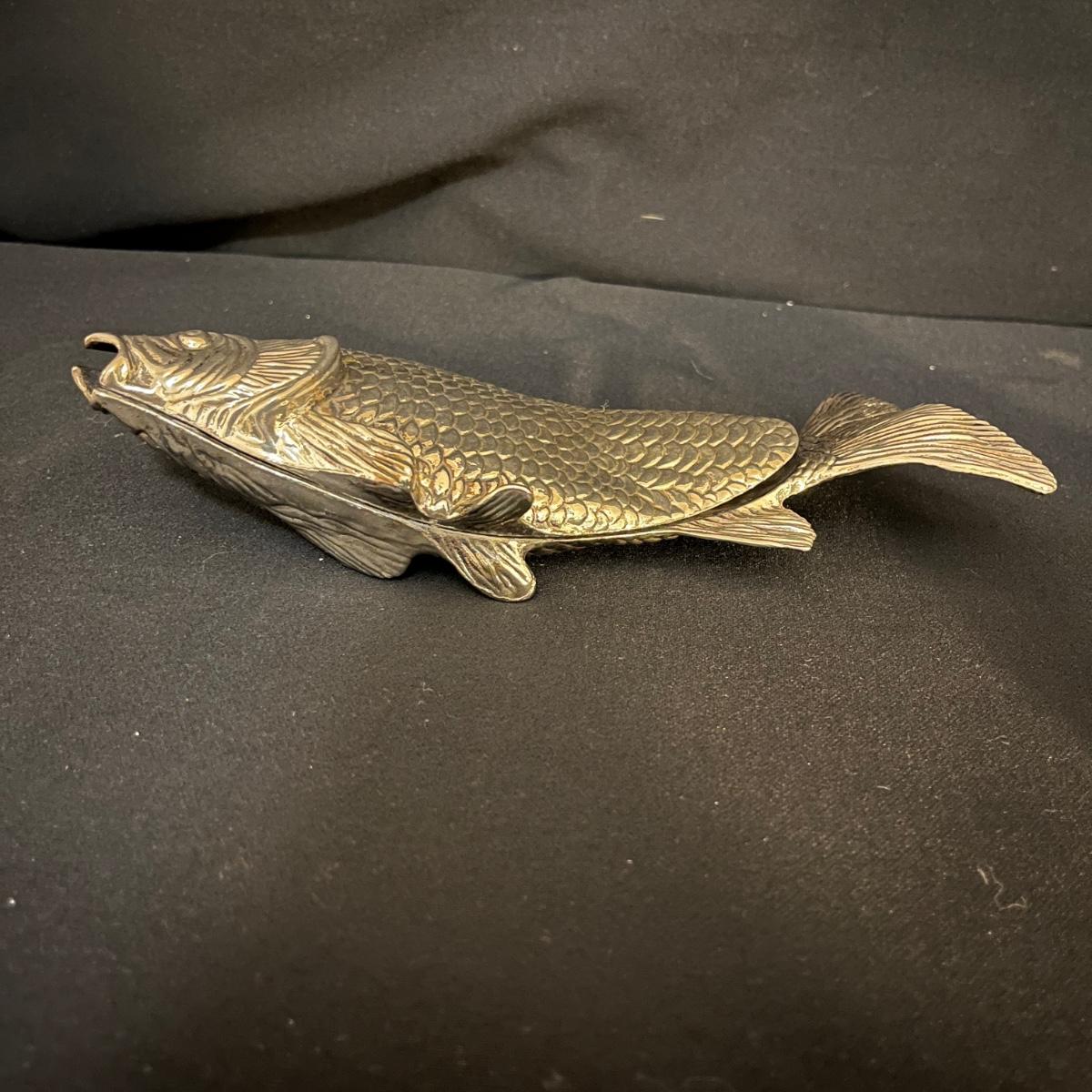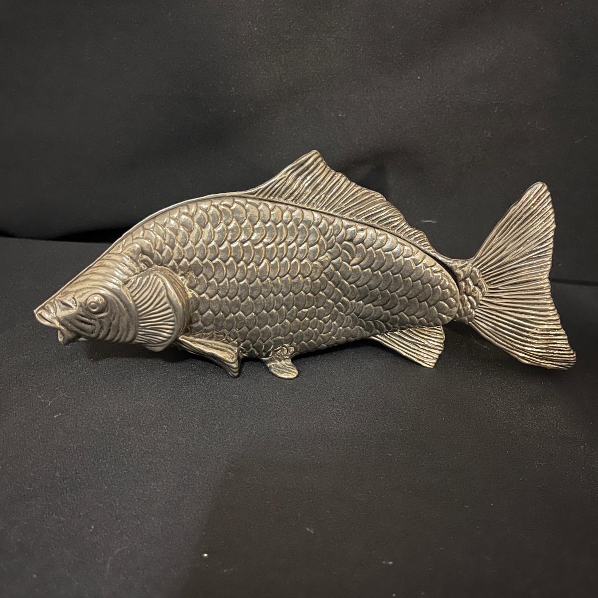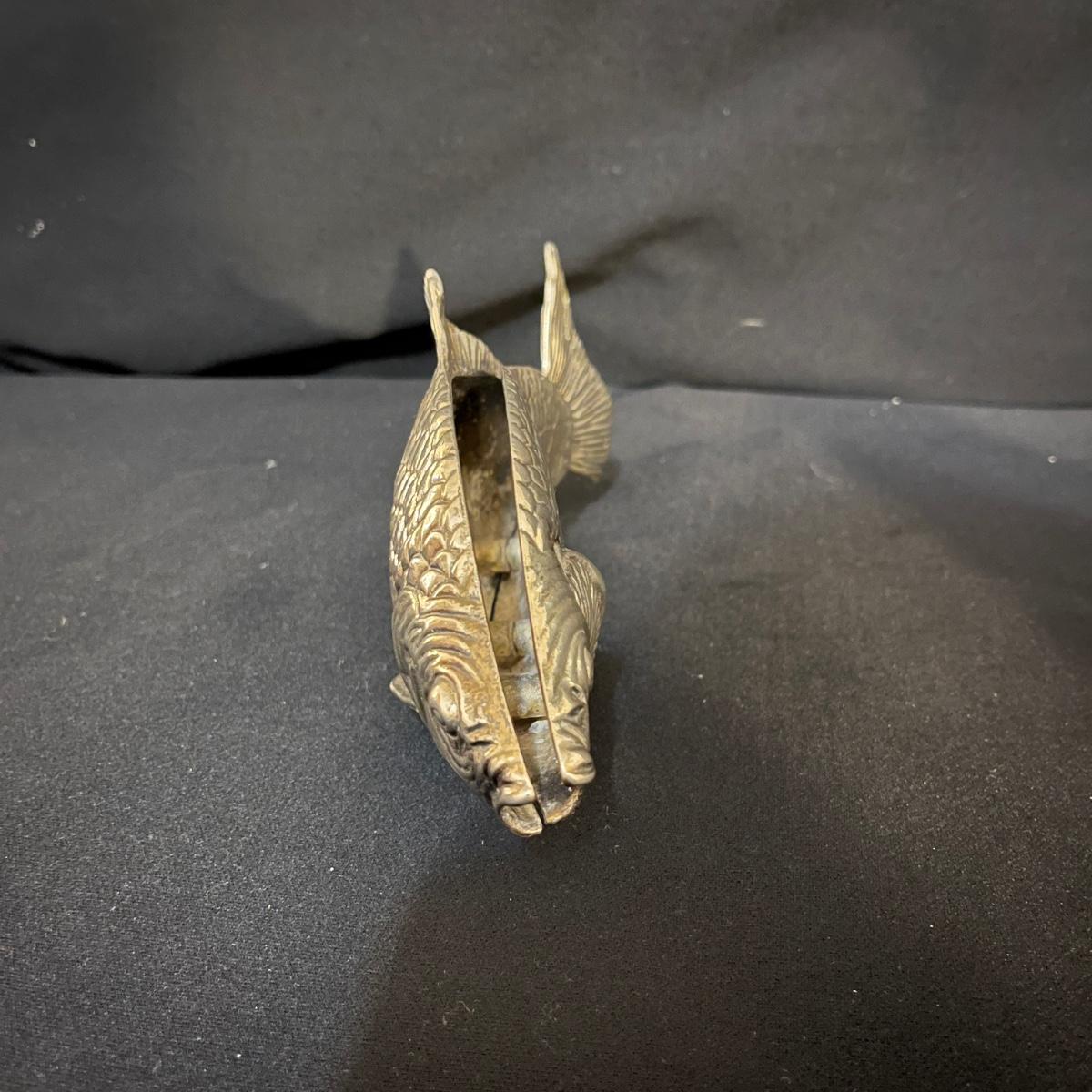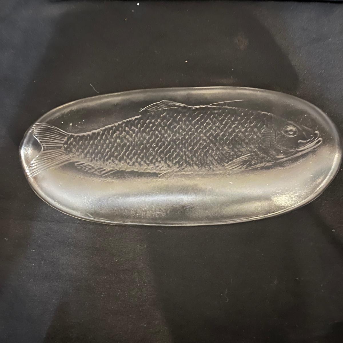 Lot includes matching fruit bowl and plate, leaf shaped plate, large fruit bowl, oblong fish adorned plate and a metal fish shaped letter holder. Largest bowl measures 11”D x 5”H.