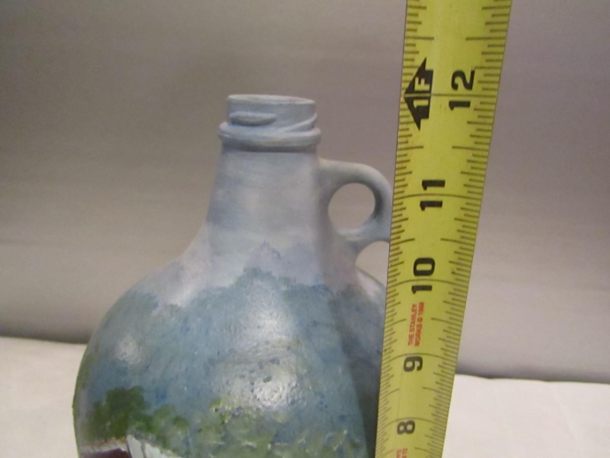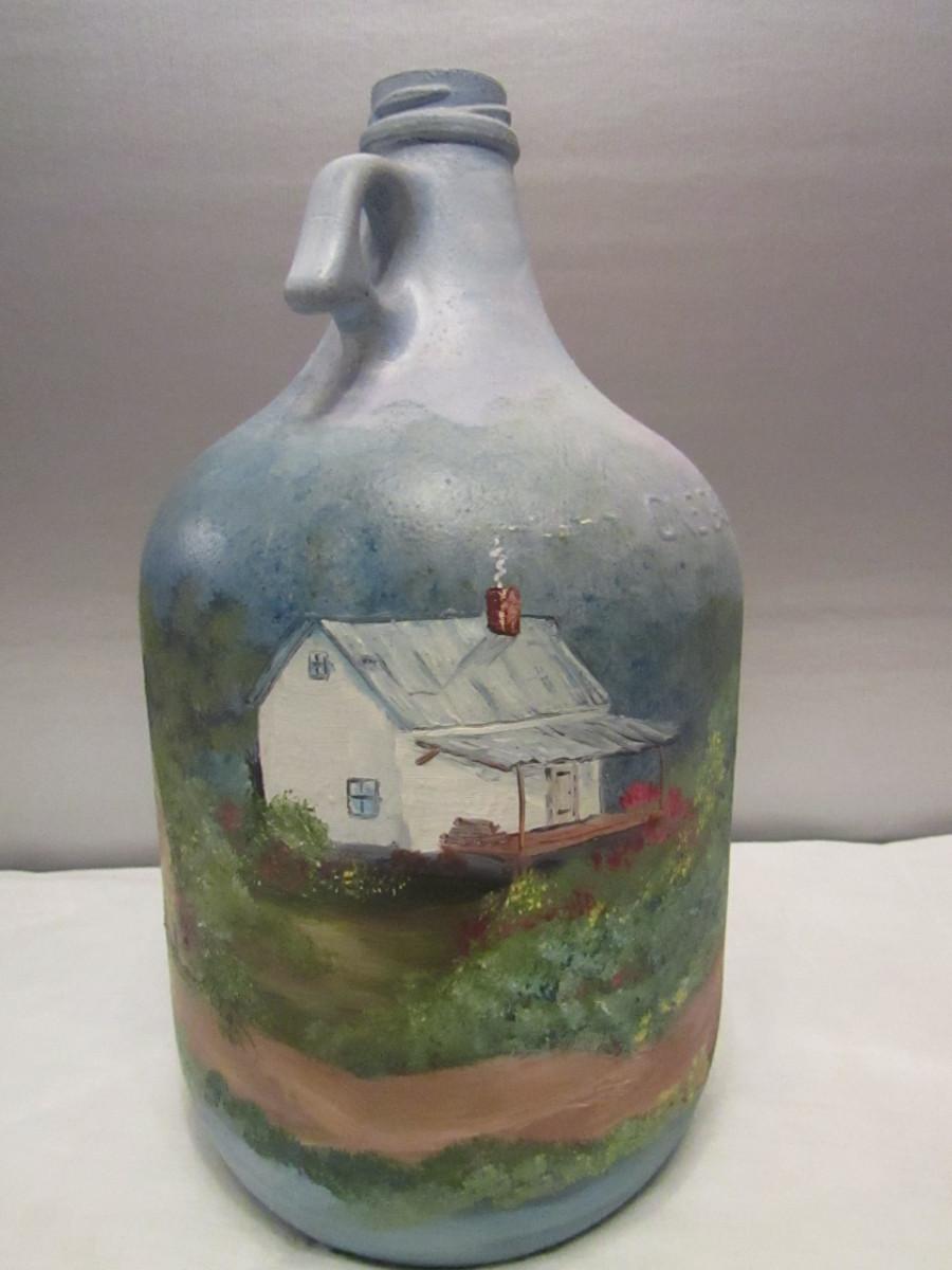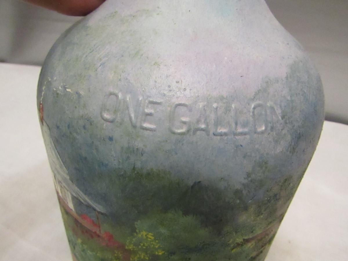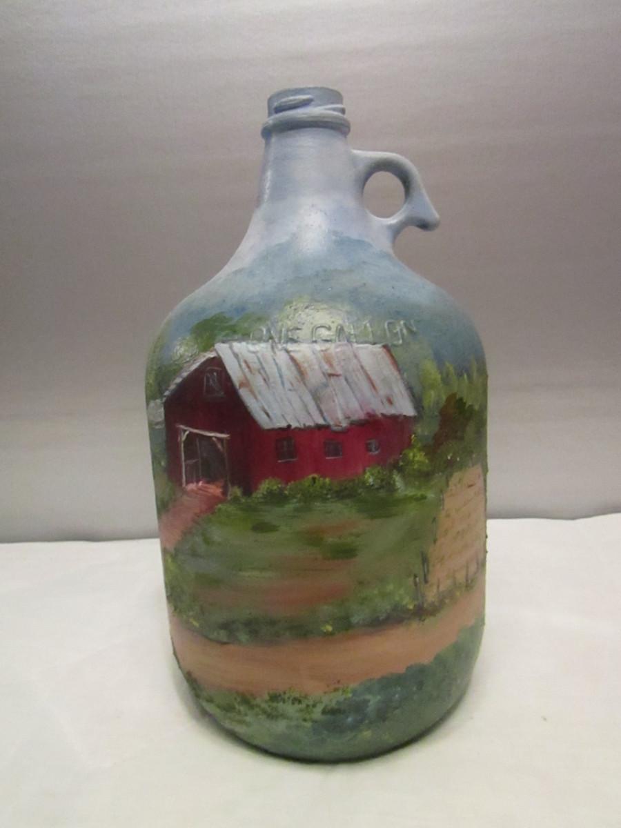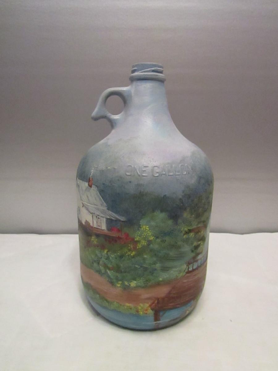 Glass Gallon Jug with Hand Painted Farm House Scene