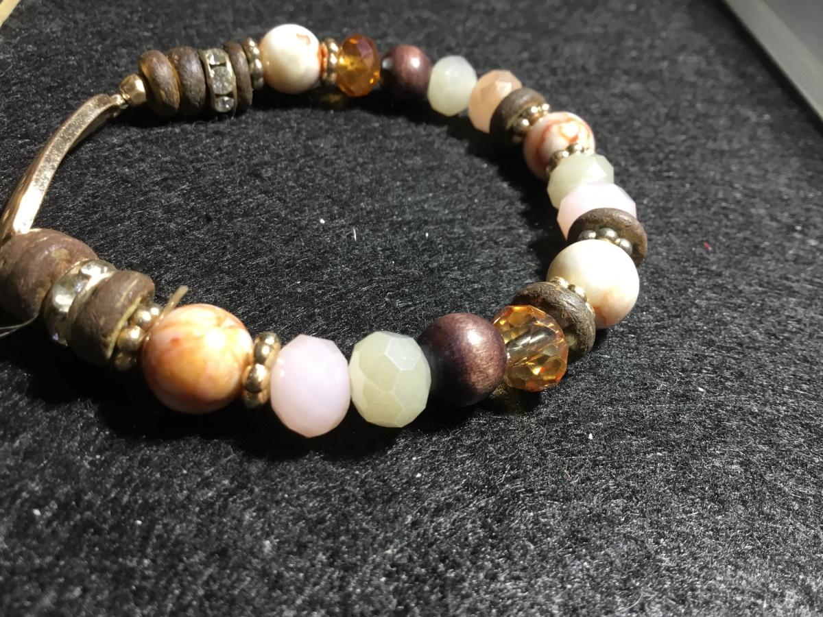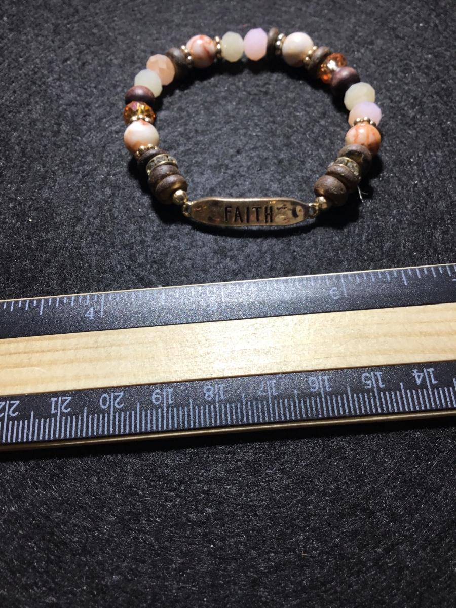 Glass gemstone type beaded stretchy faith bracelet