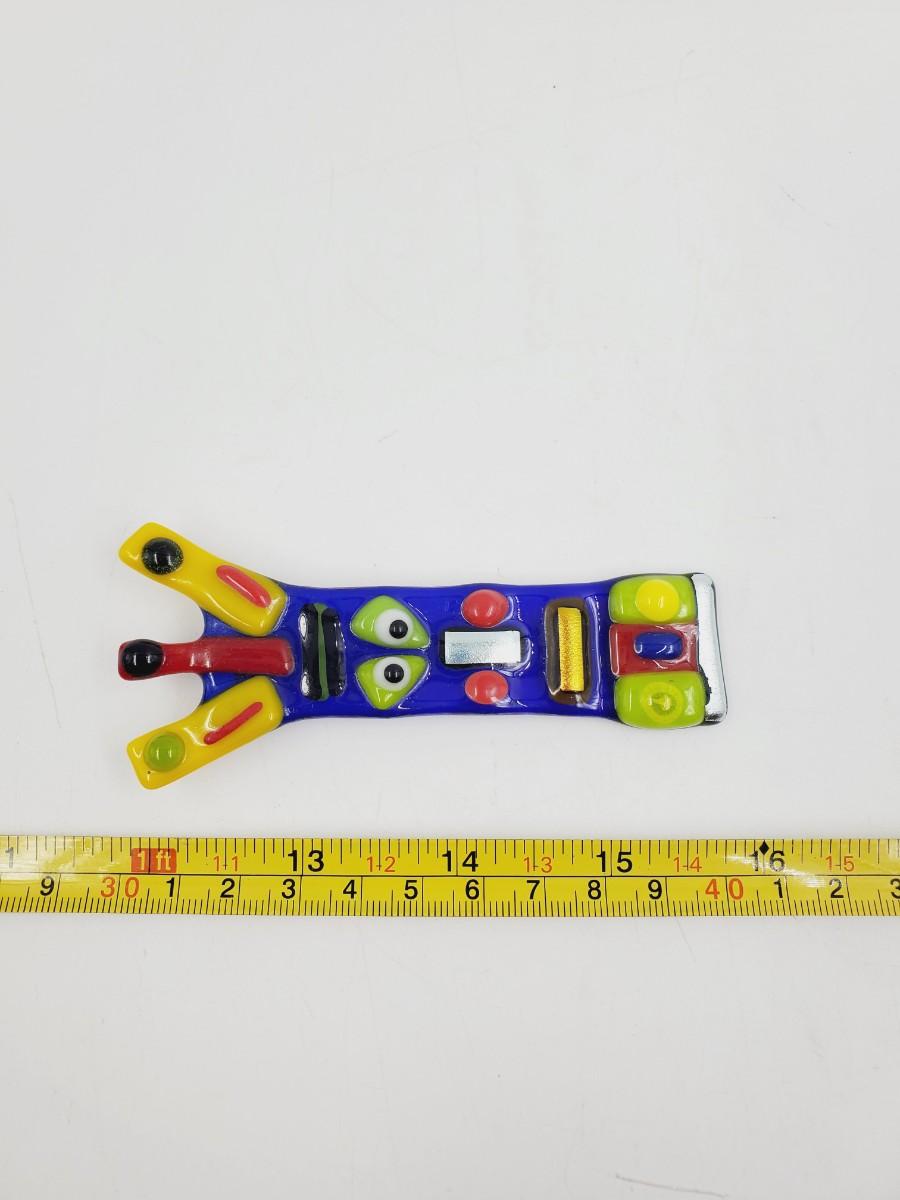 Eclectic glass pin, very colorful and in good condition.