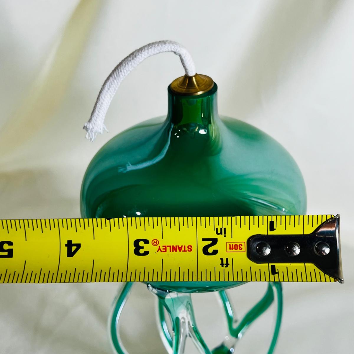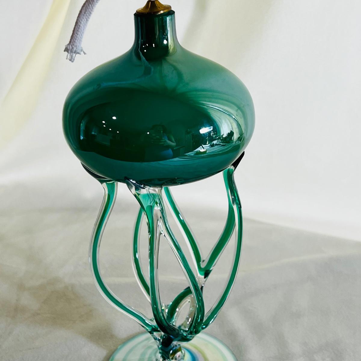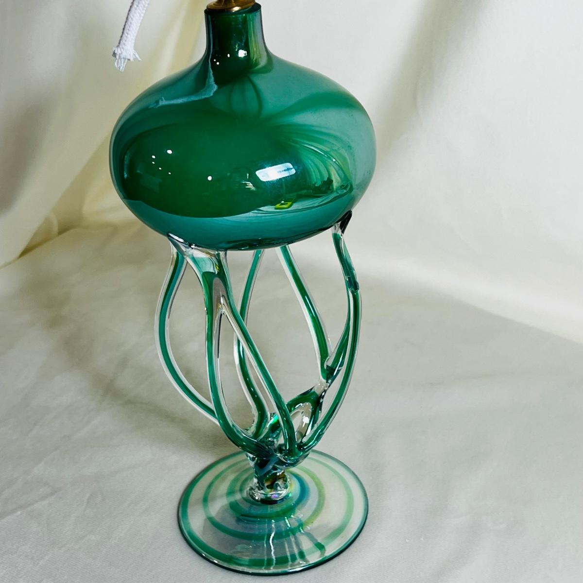 Jozefina Krosno Green Iridescent Oil Lamp Art Glass Jellyfish Sculpture Vintage