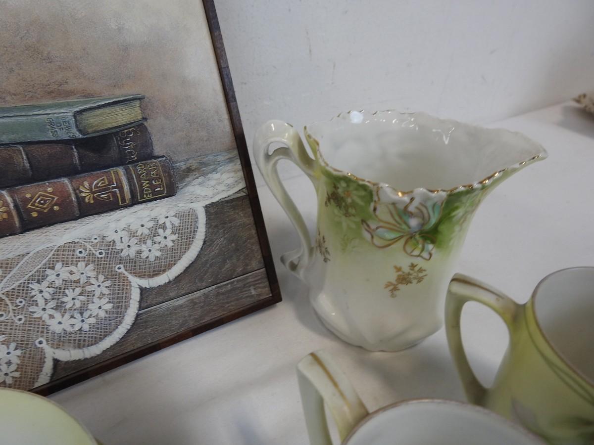 Glass Green Flower Tea Set, Pitcher, Plates, Cups, Creamer Cup,Decor