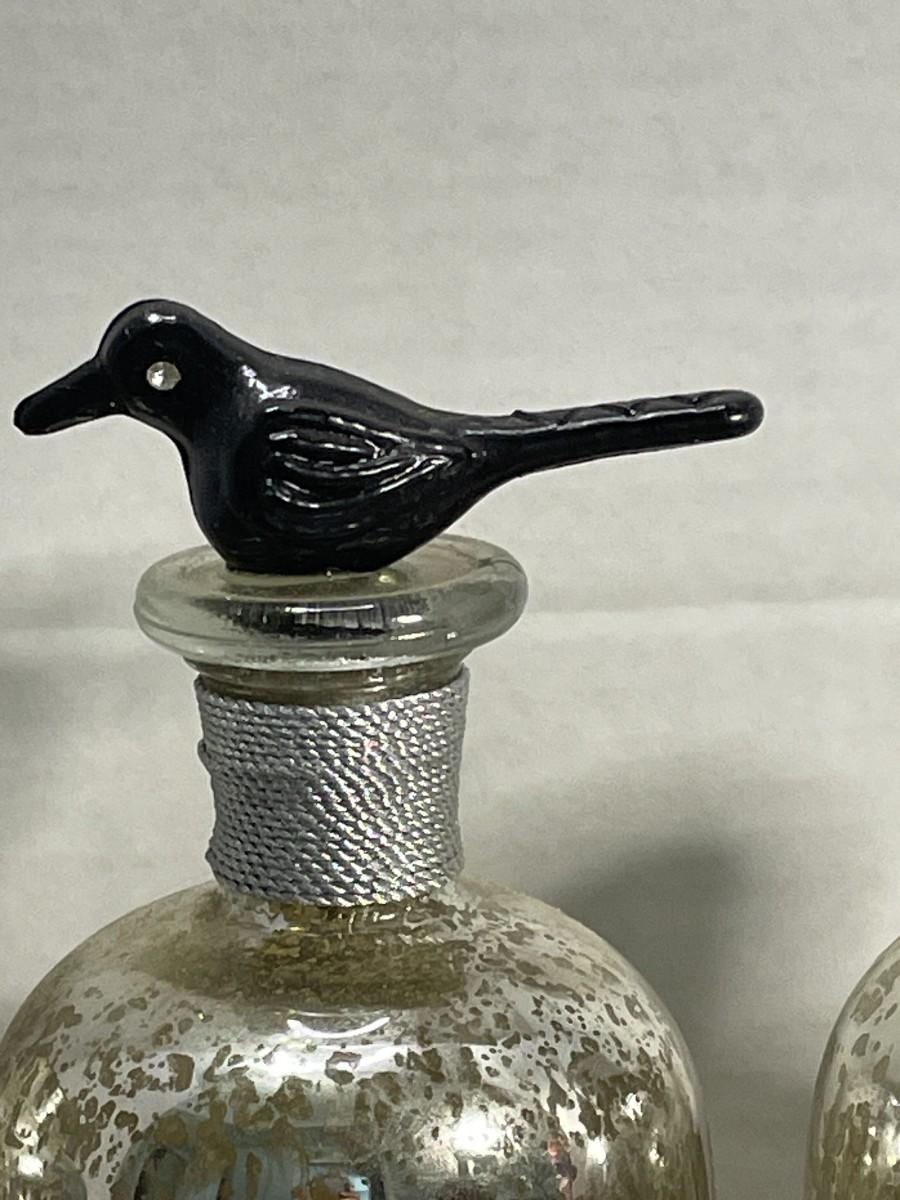 Two containers are missing their stoppers.